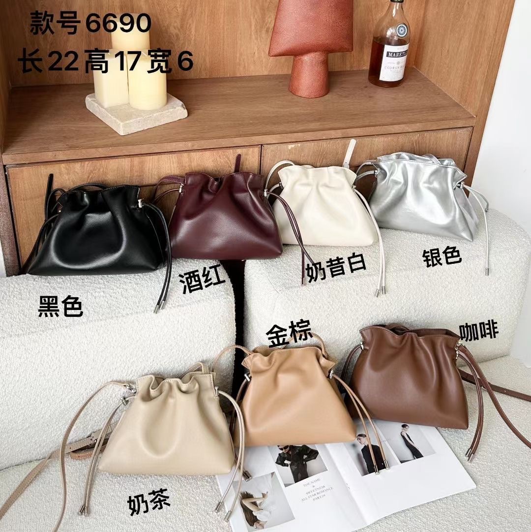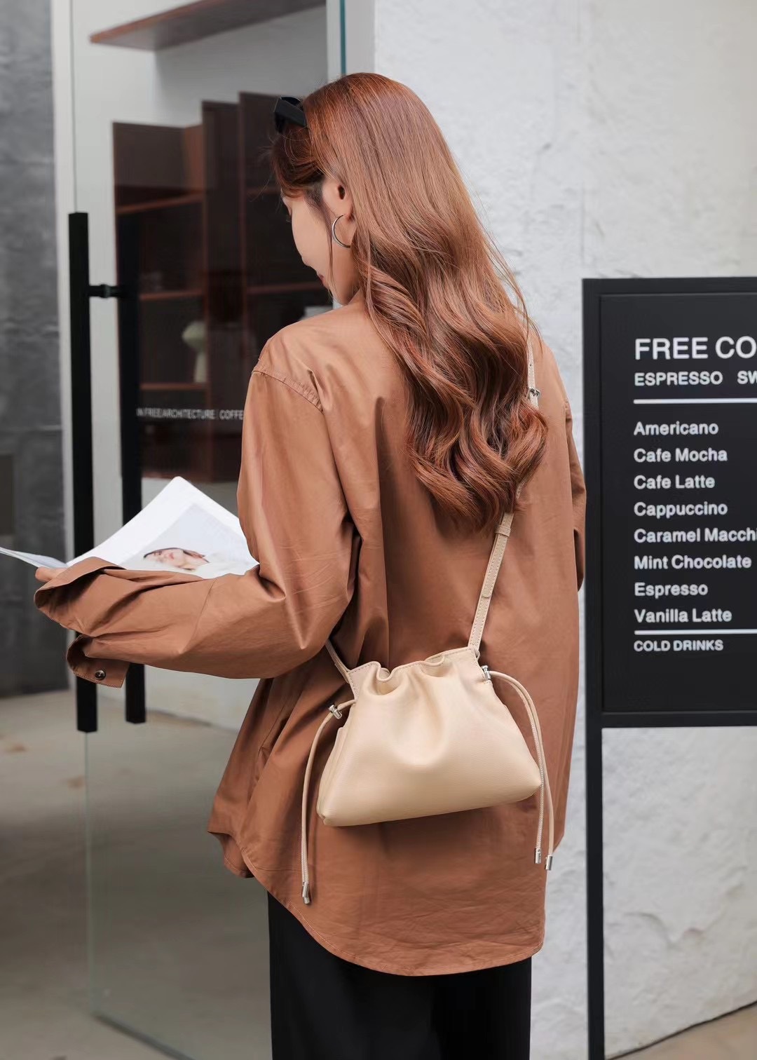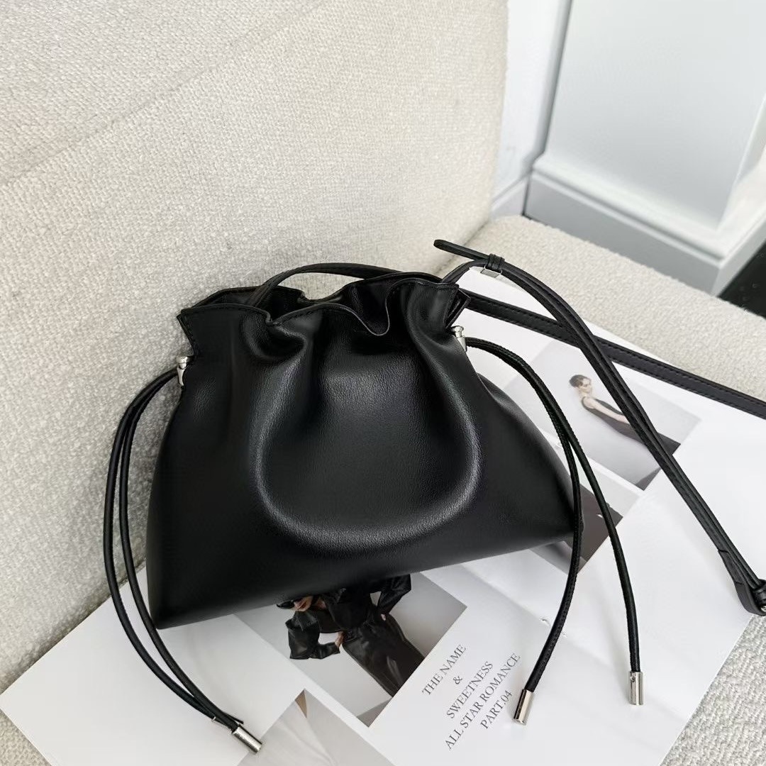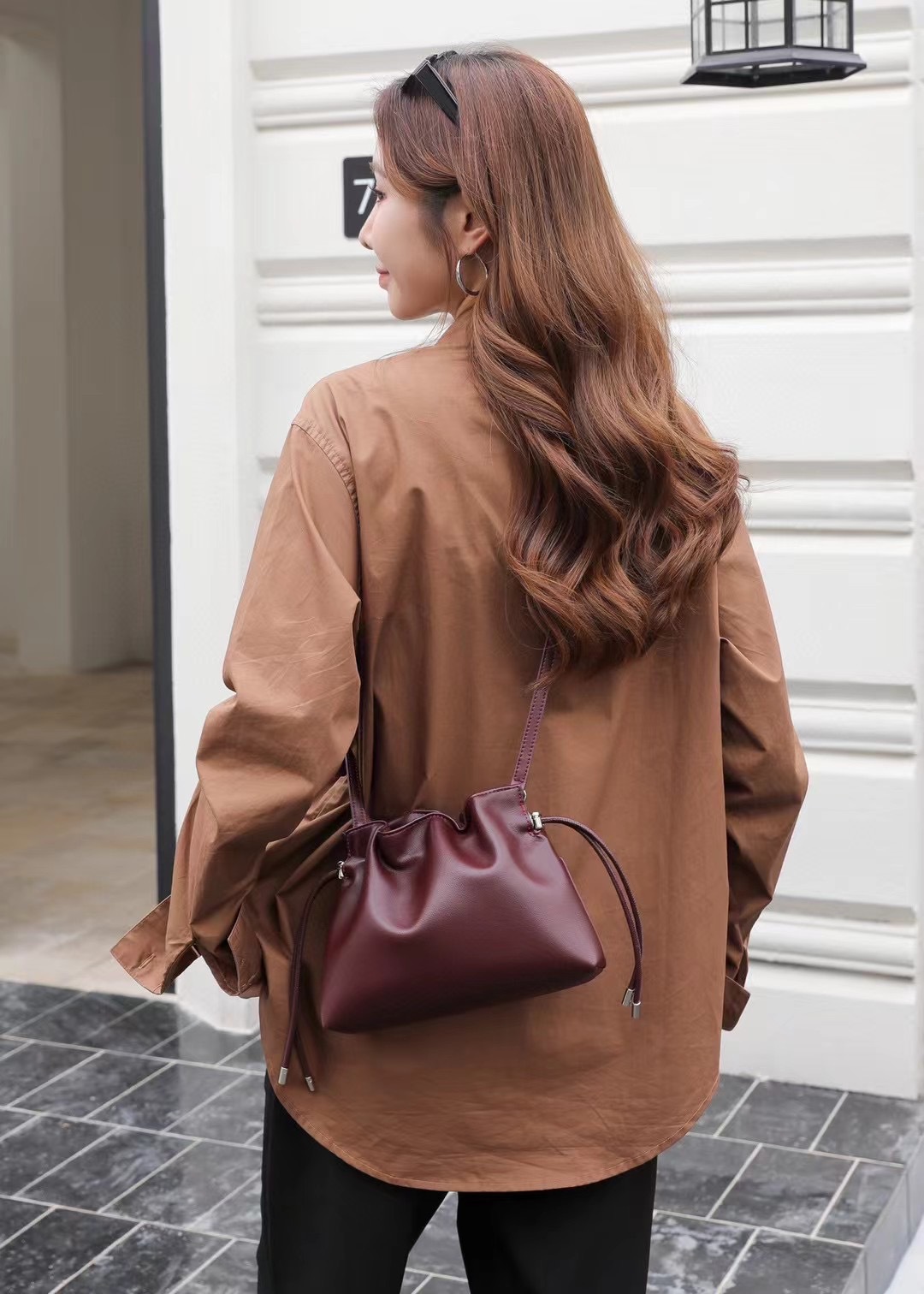정품 가죽 여성용 가방 핸드백 2024 가을과 겨울 새로운 드로우 스트링 작은 Fu 가방 가죽 주름진 올 매치 숄더 크로스 바디 백스토어 가기