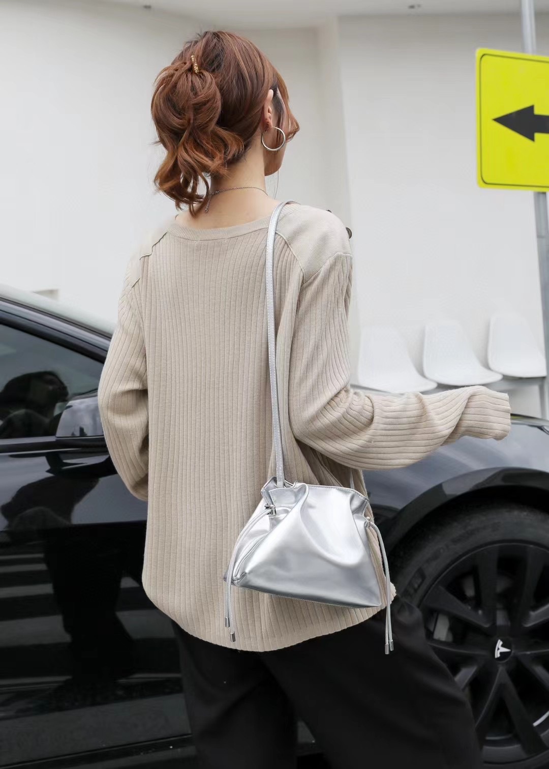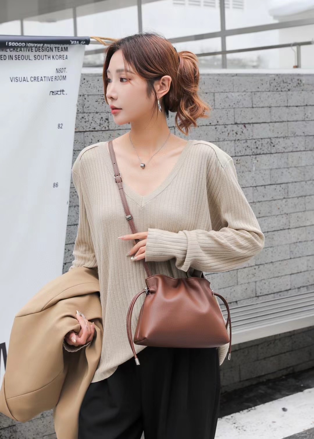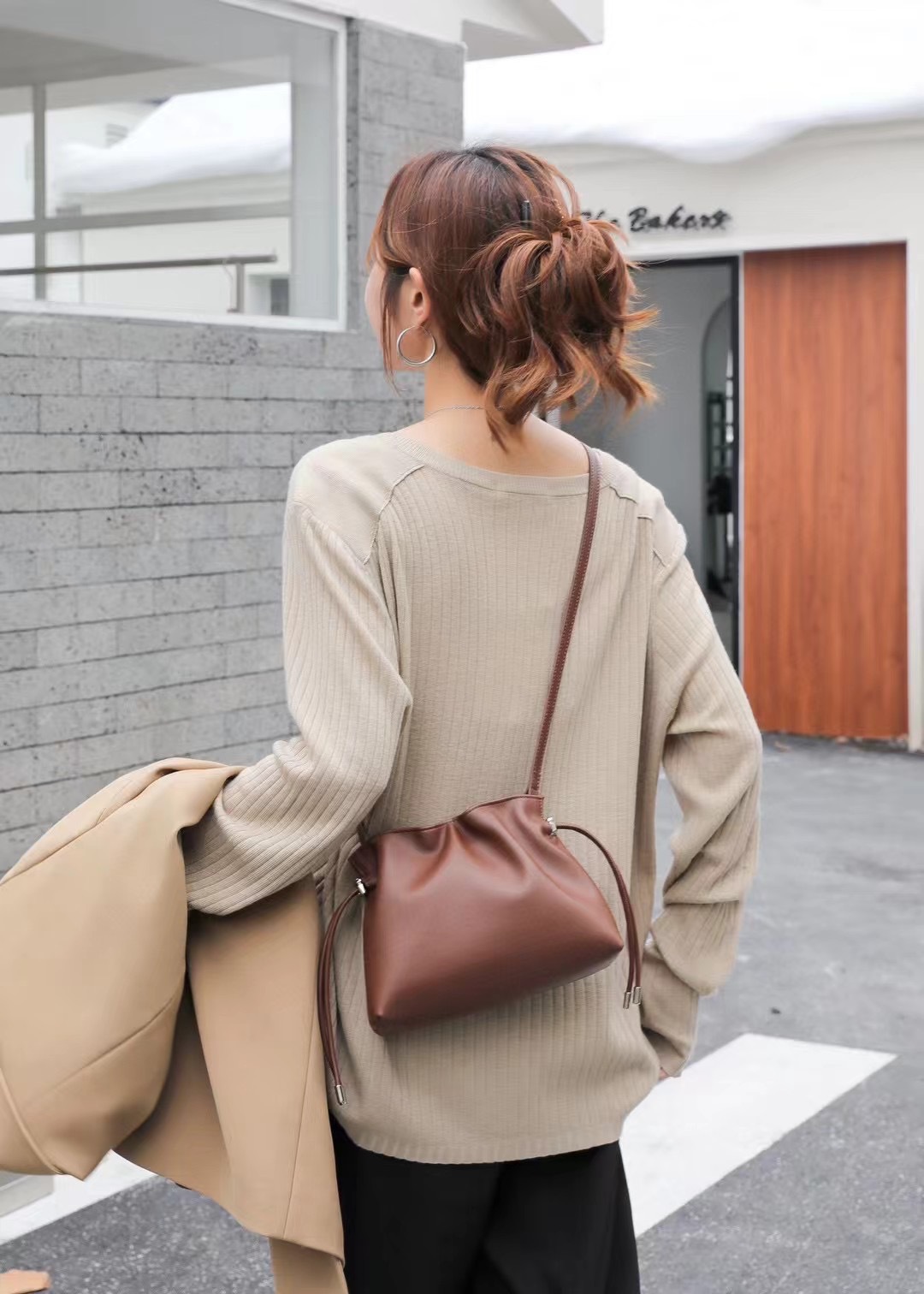 정품 가죽 여성용 가방 핸드백 2024 가을과 겨울 새로운 드로우 스트링 작은 Fu 가방 가죽 주름진 올 매치 숄더 크로스 바디 백스토어 가기