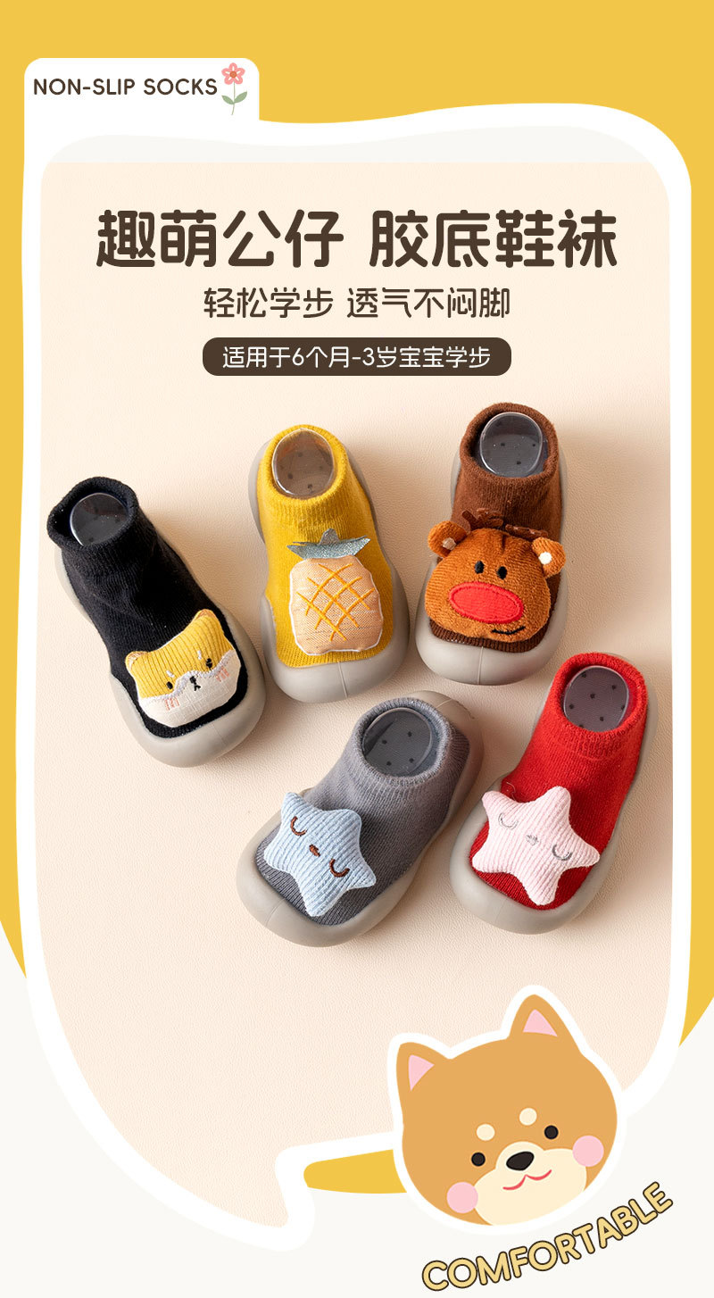 2025 새로운 인형 양말 신발 봄과 가을 아기 바닥 신발 실내 미끄럼 방지 아기 유아 부드러운 밑창 도매스토어 가기