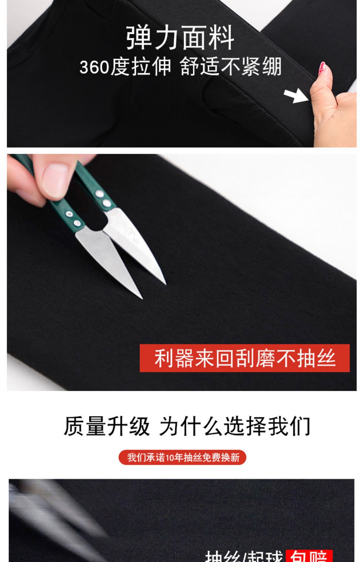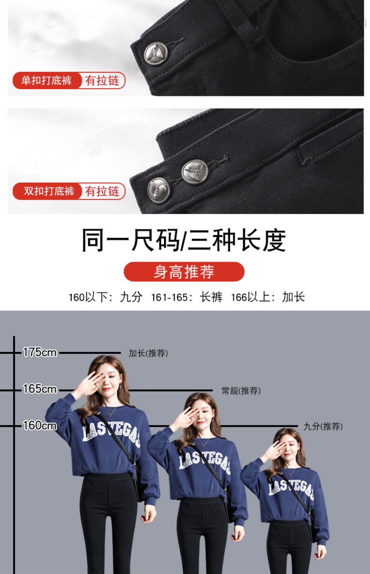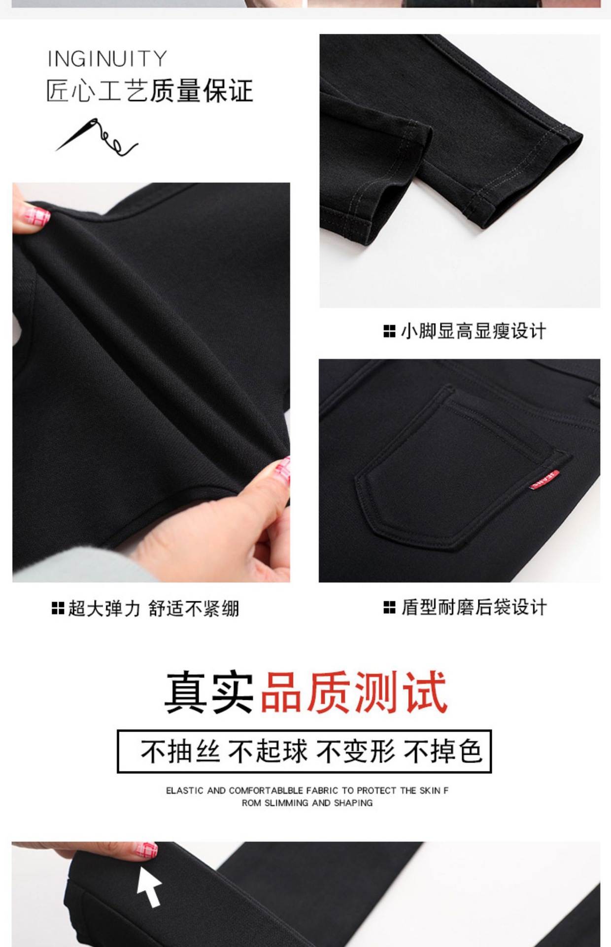 • 블랙 버튼리스 신축성 있는 허리 9포인트 - 얇은 스타일