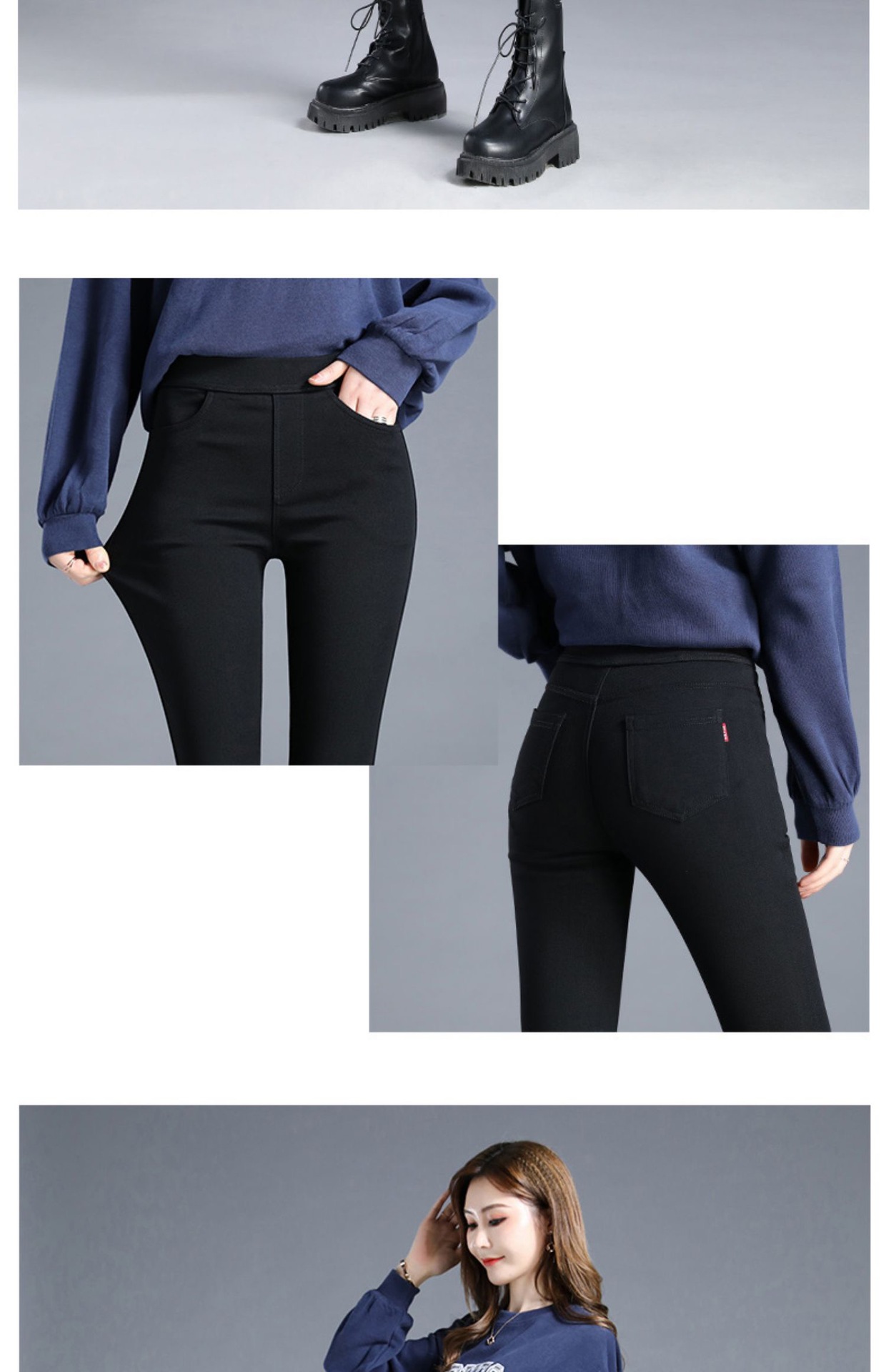 • 두꺼운 벨벳 스타일의 단추가 없는 바지