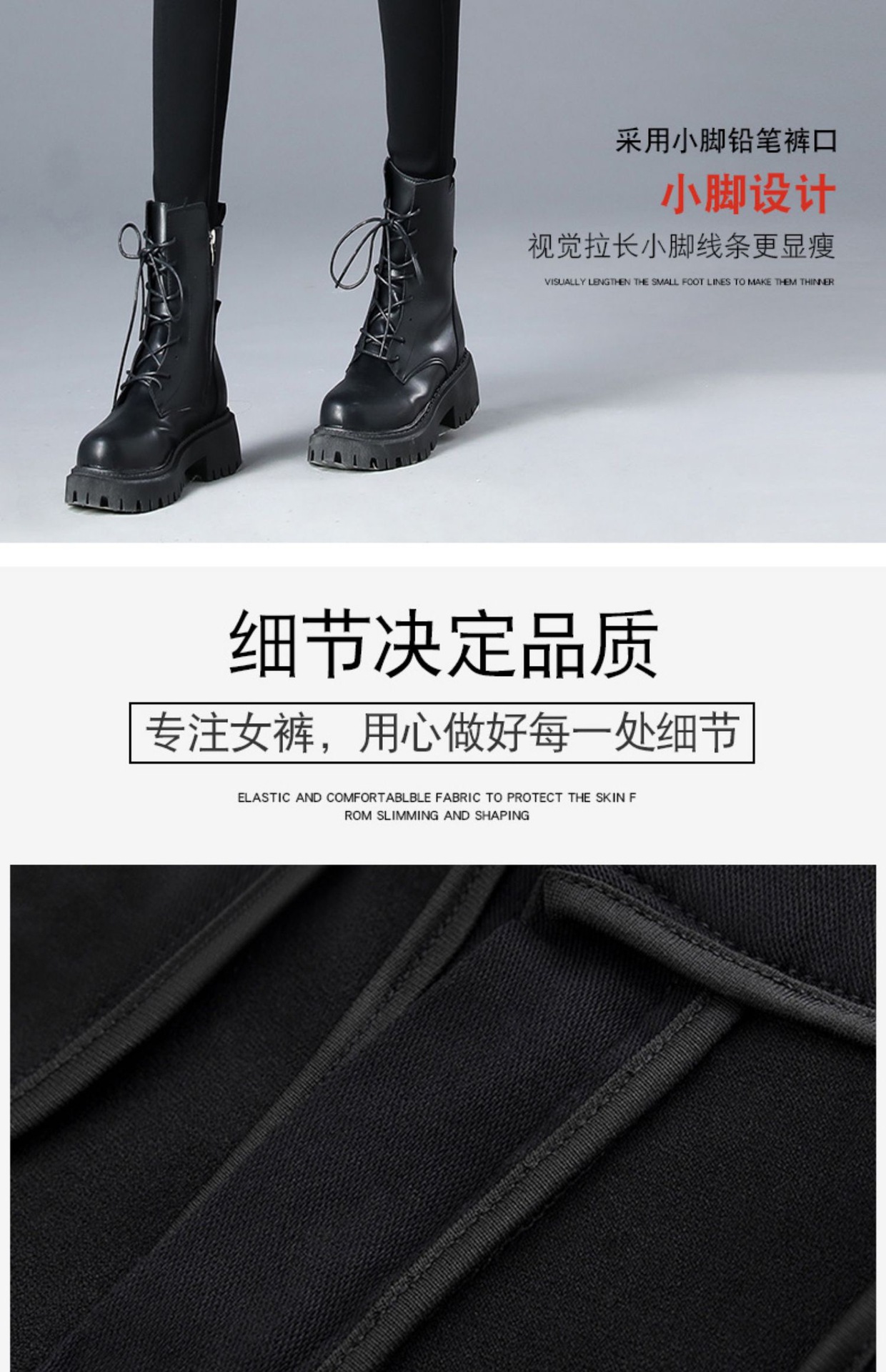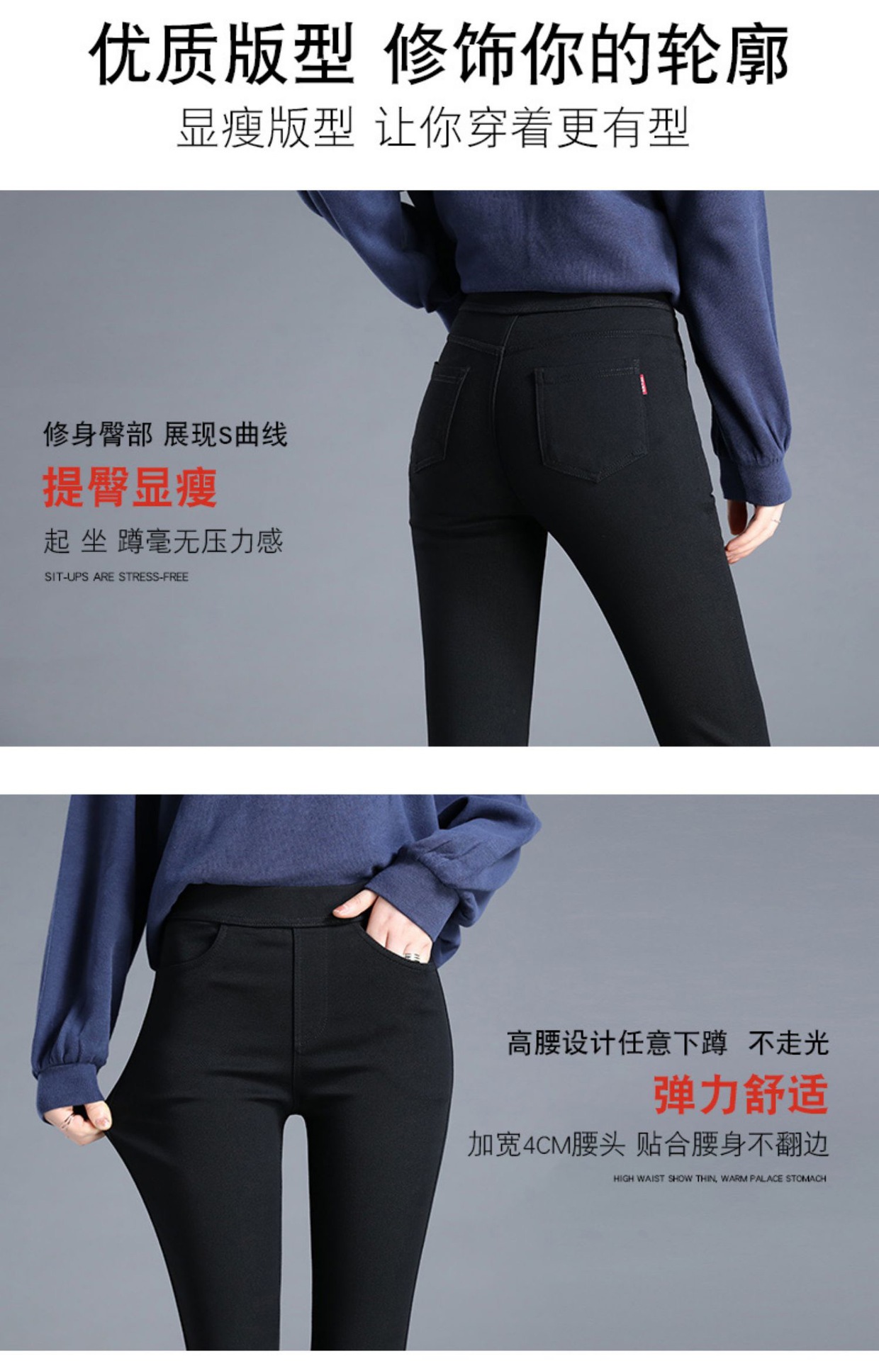 • 확장된 검정색 버튼리스 신축성 있는 허리 - 얇은 스타일