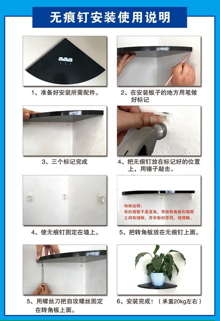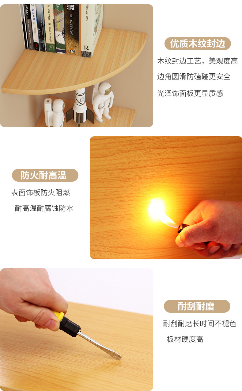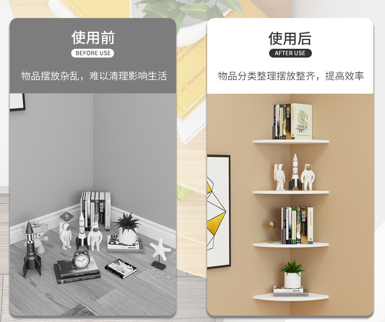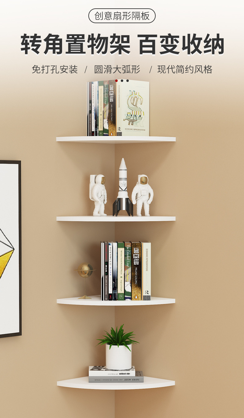 벽 코너 수납 선반, 코너 벽걸이형 주방/침실 수납장, 벽면 코너 삼각형 선반, 무타공 목재 선반