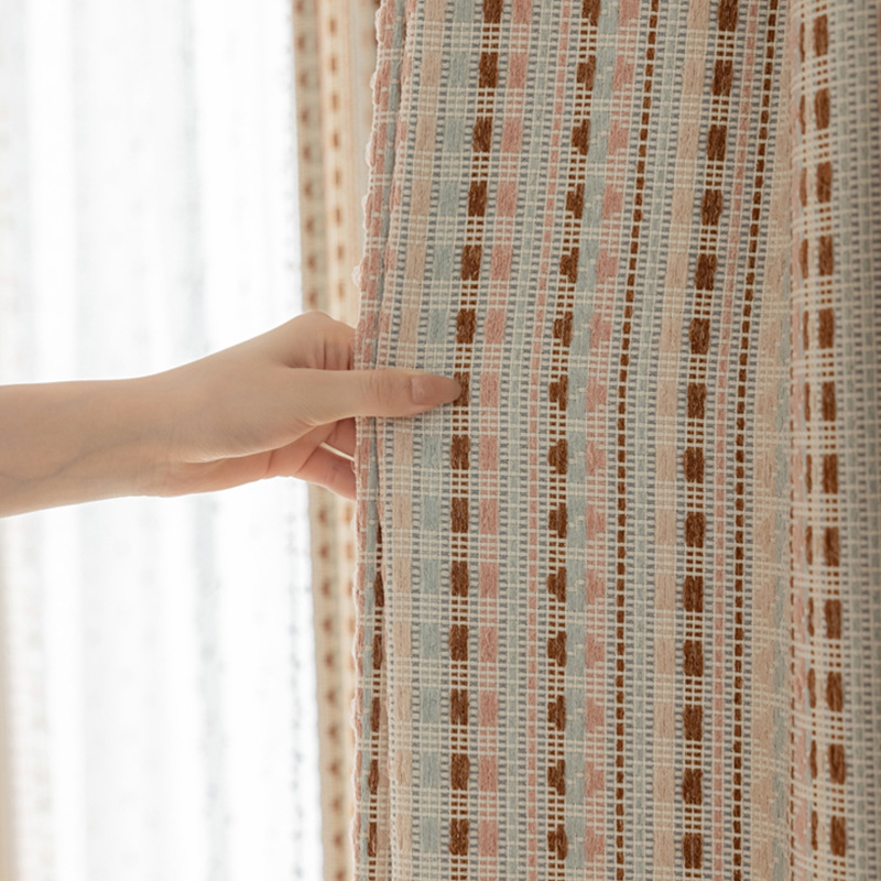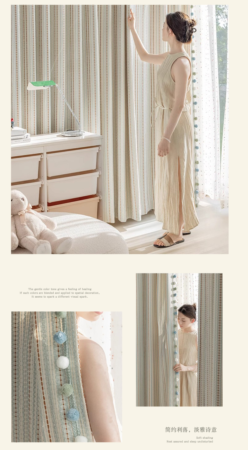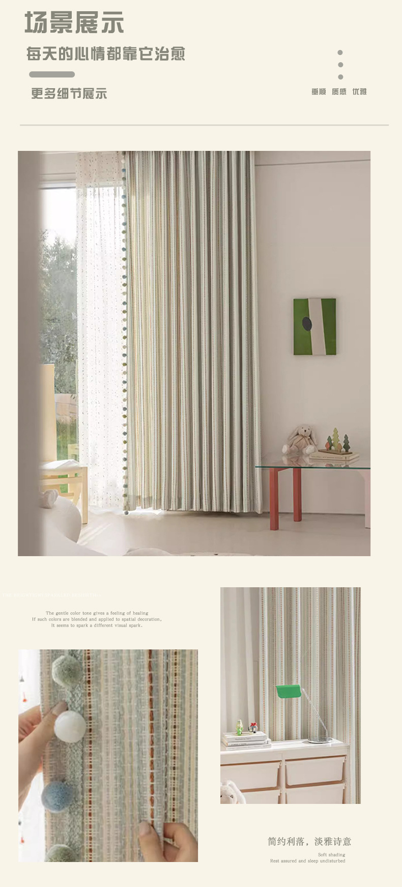 25년 신상 페어 아일 도파민 스트라이프 프렌치 남양풍 빈티지 질감의 침실 및 어린이방 커튼