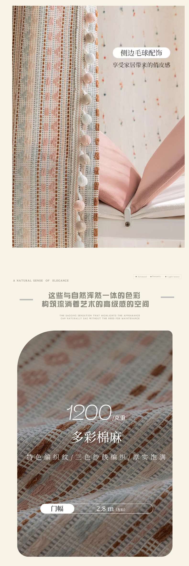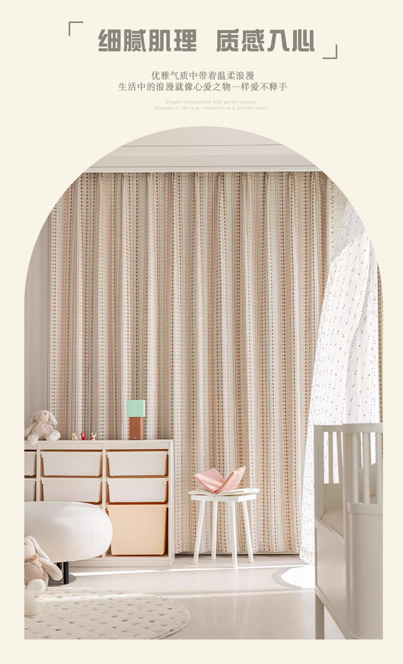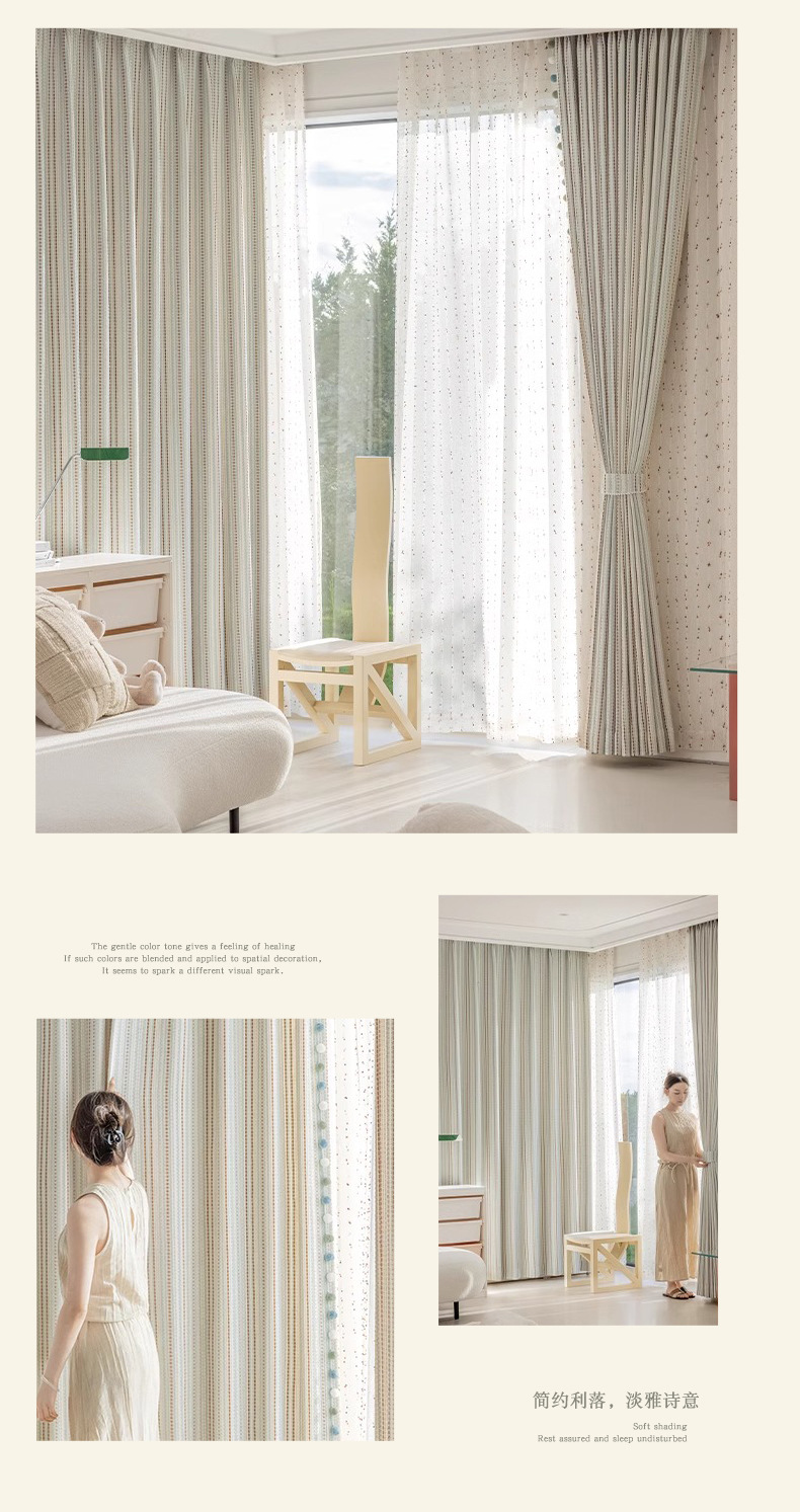 25년 신상 페어 아일 도파민 스트라이프 프렌치 남양풍 빈티지 질감의 침실 및 어린이방 커튼