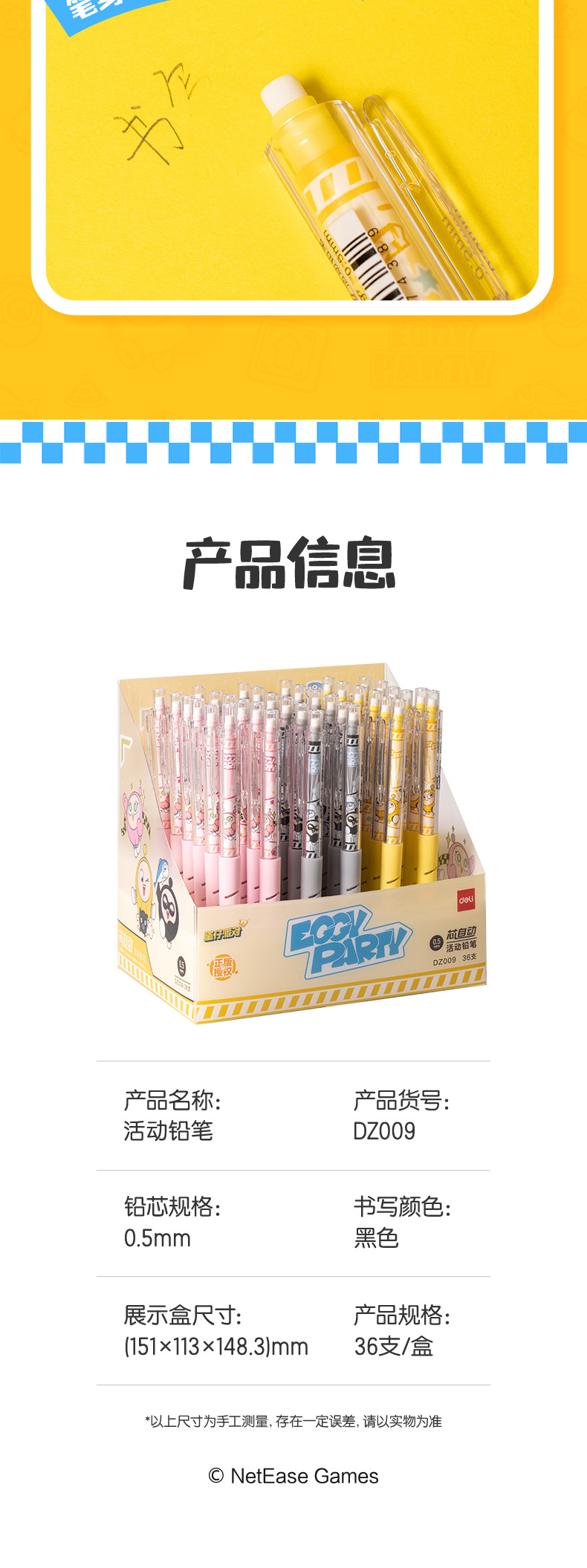델리 DZ009 달걀 파티 자동 핵심 활동 연필 0.5/0.7 학생 새로운 언론 시험 연필