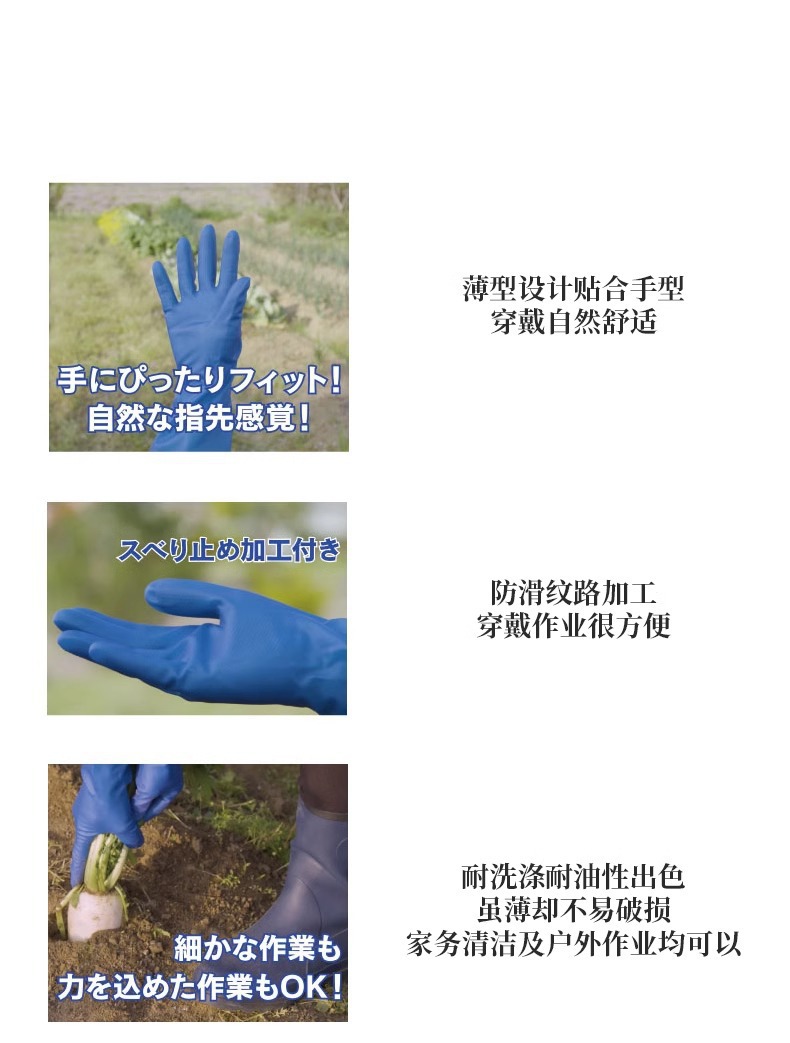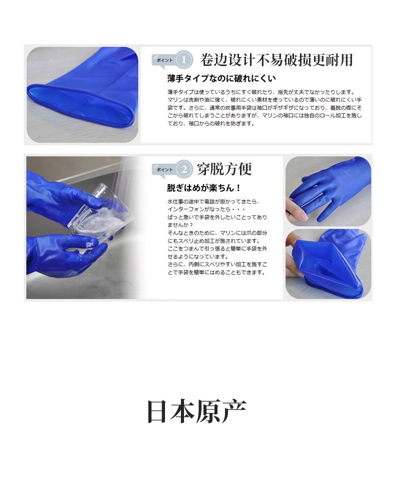 일본 수입 가정용 세탁 식기 세척 식품 고무 장갑 방수 초박형 내마모성 핸드스틱 장식 장갑