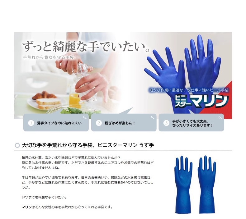 일본 수입 가정용 세탁 식기 세척 식품 고무 장갑 방수 초박형 내마모성 핸드스틱 장식 장갑스토어 가기