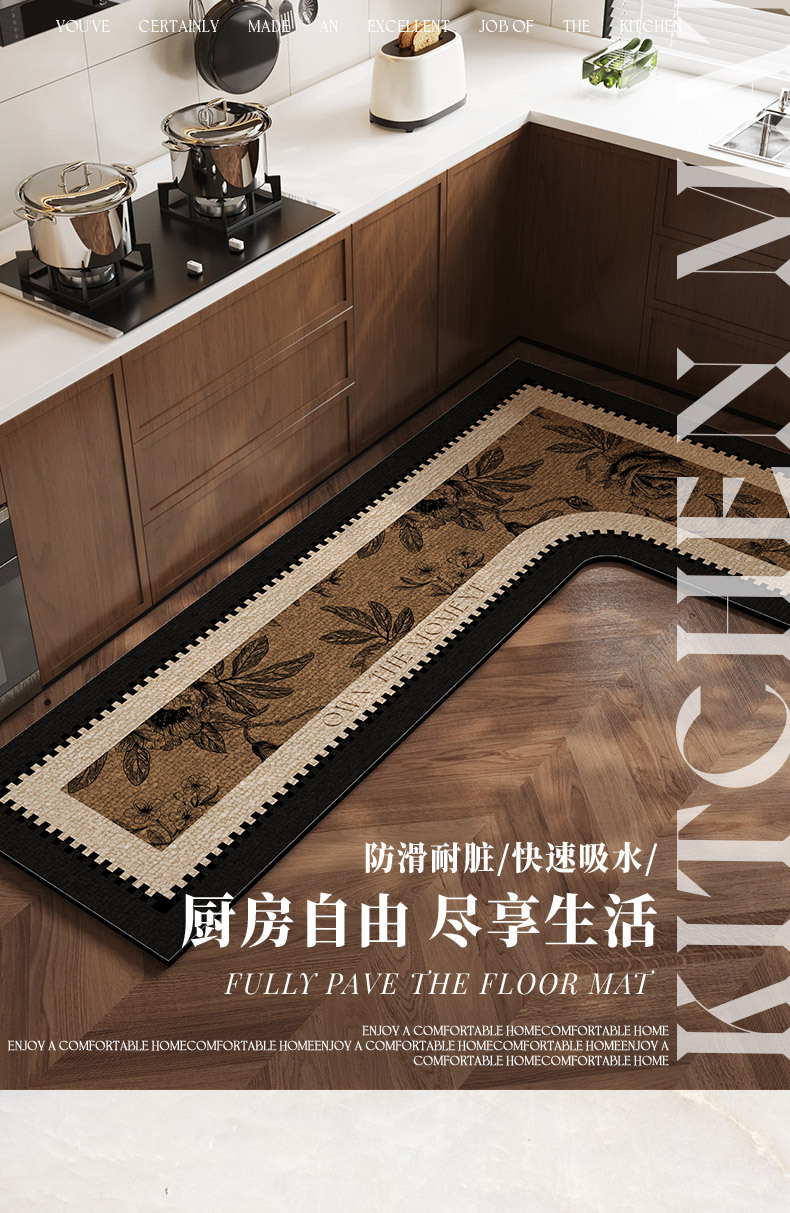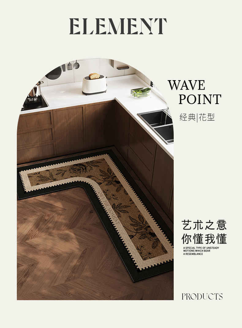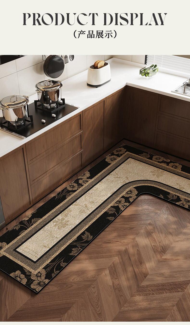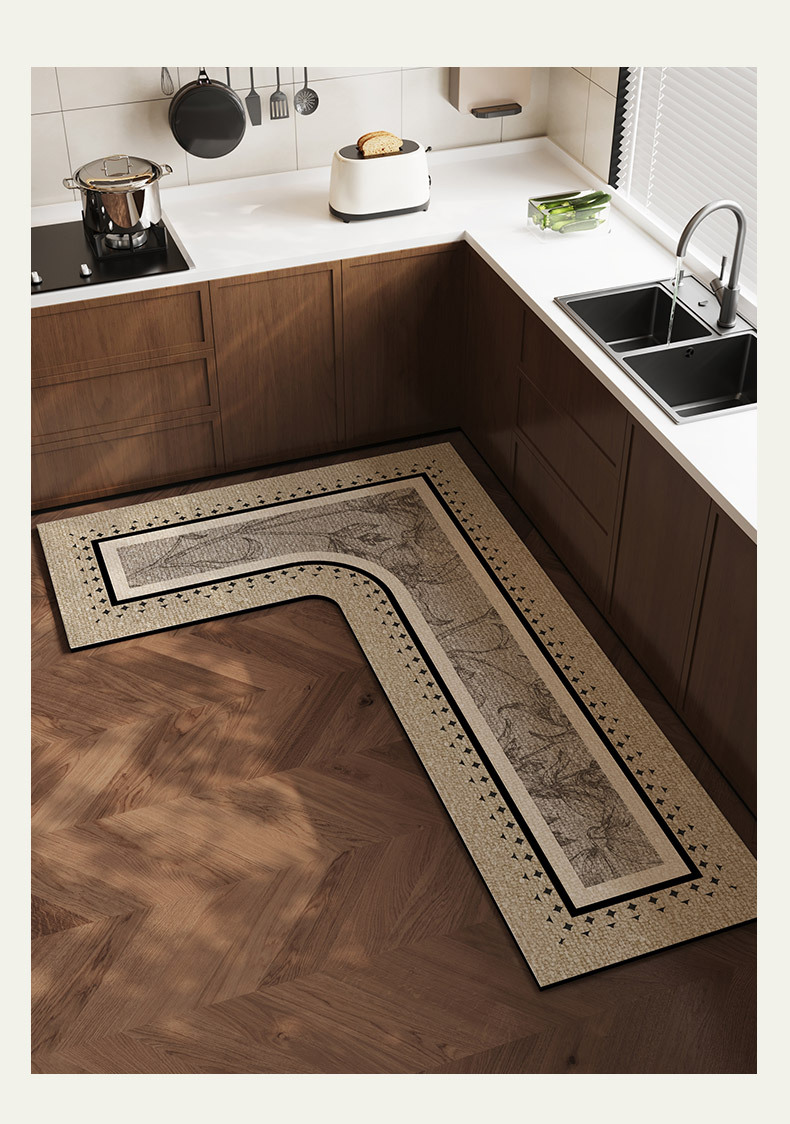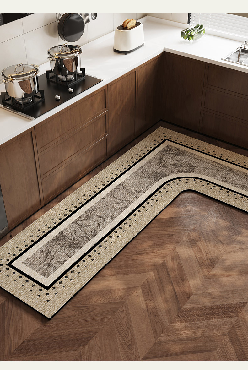 중간 고대 스타일의 주방 바닥 매트 전체 L 자형 흡수성 오일 흡수성 미끄럼 방지 카펫 오일성 규조류 진흙 발 매트