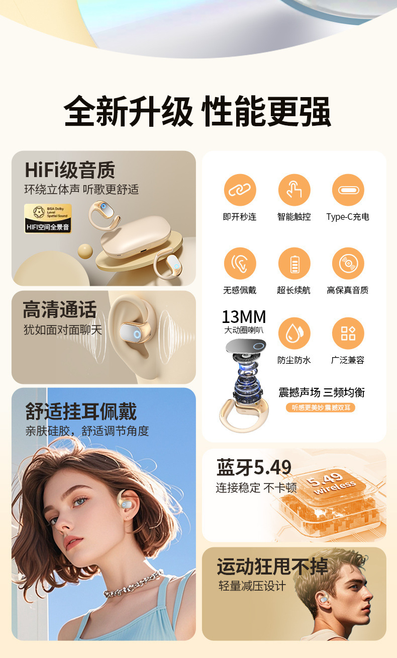 독일 블루투스 이어폰 2024 신형 골전도 무선 소음 감소 귀걸이형 스포츠 러닝 스테레오스토어 가기