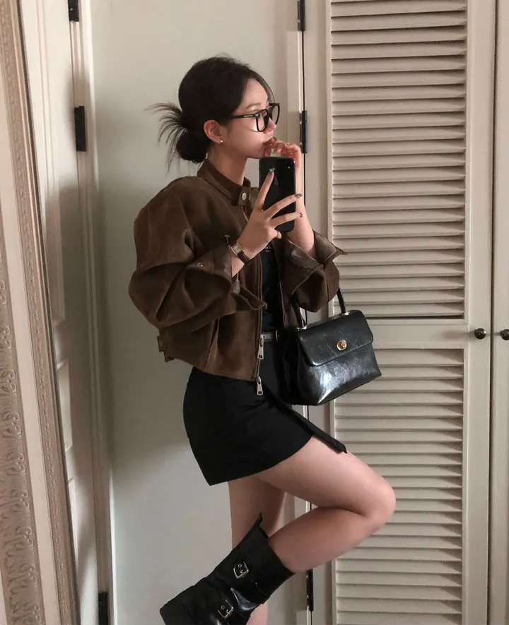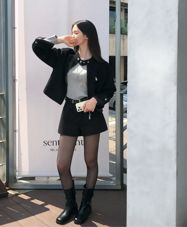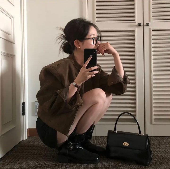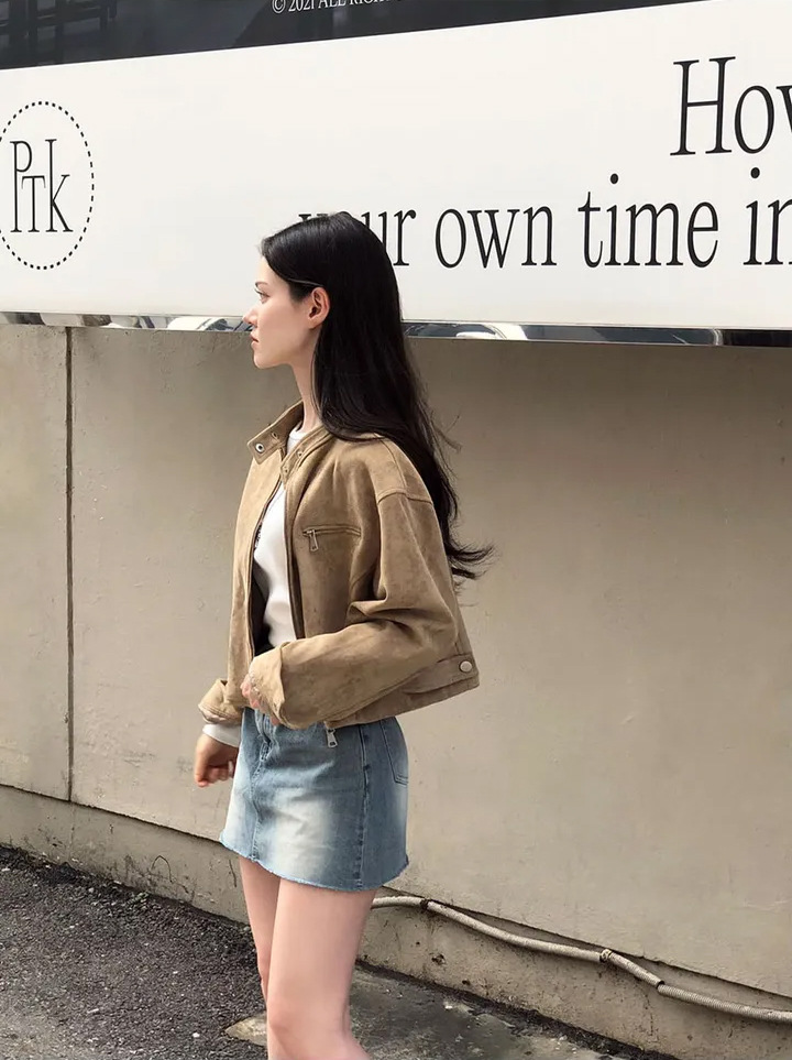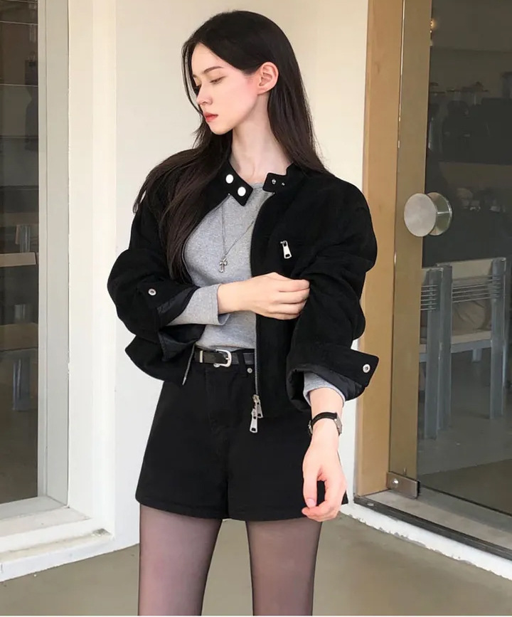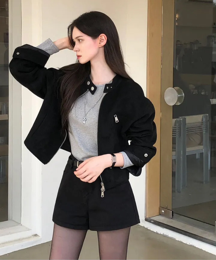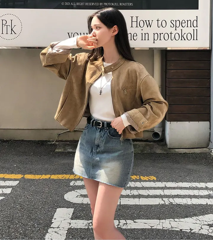 한국 세련된 가을 복고풍 기질 스탠드 업 칼라 지퍼 포켓 루즈하고 다재다능한 여성용 짧은 오토바이 재킷스토어 가기