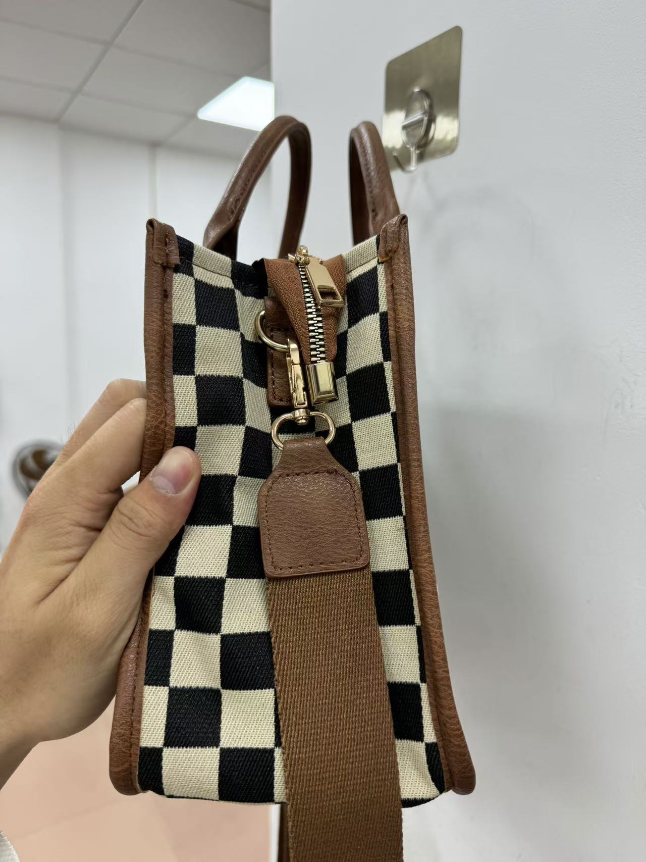 재고 국경 간 여성 체커 보드 숄더 크로스 바디 백 캐주얼 올 매치 핸드백 격자 무늬 가방 여성용 어깨 끈