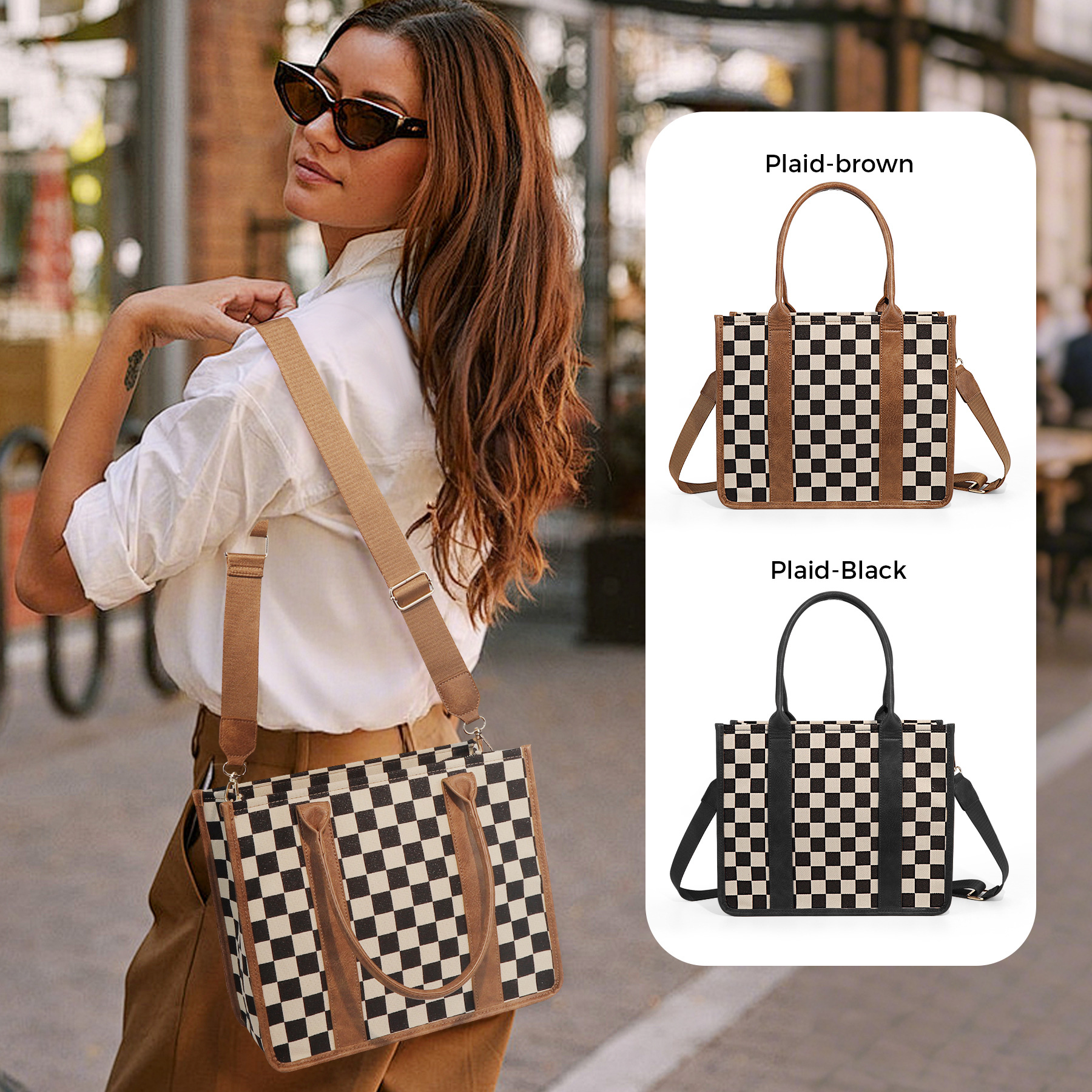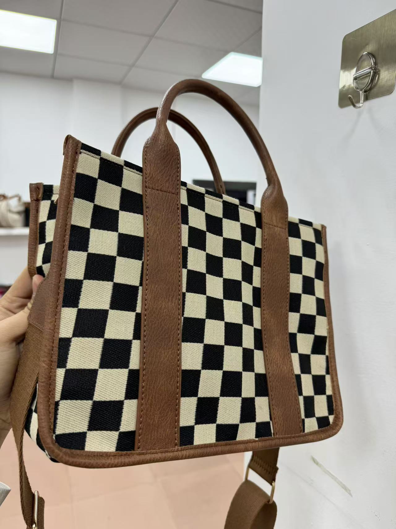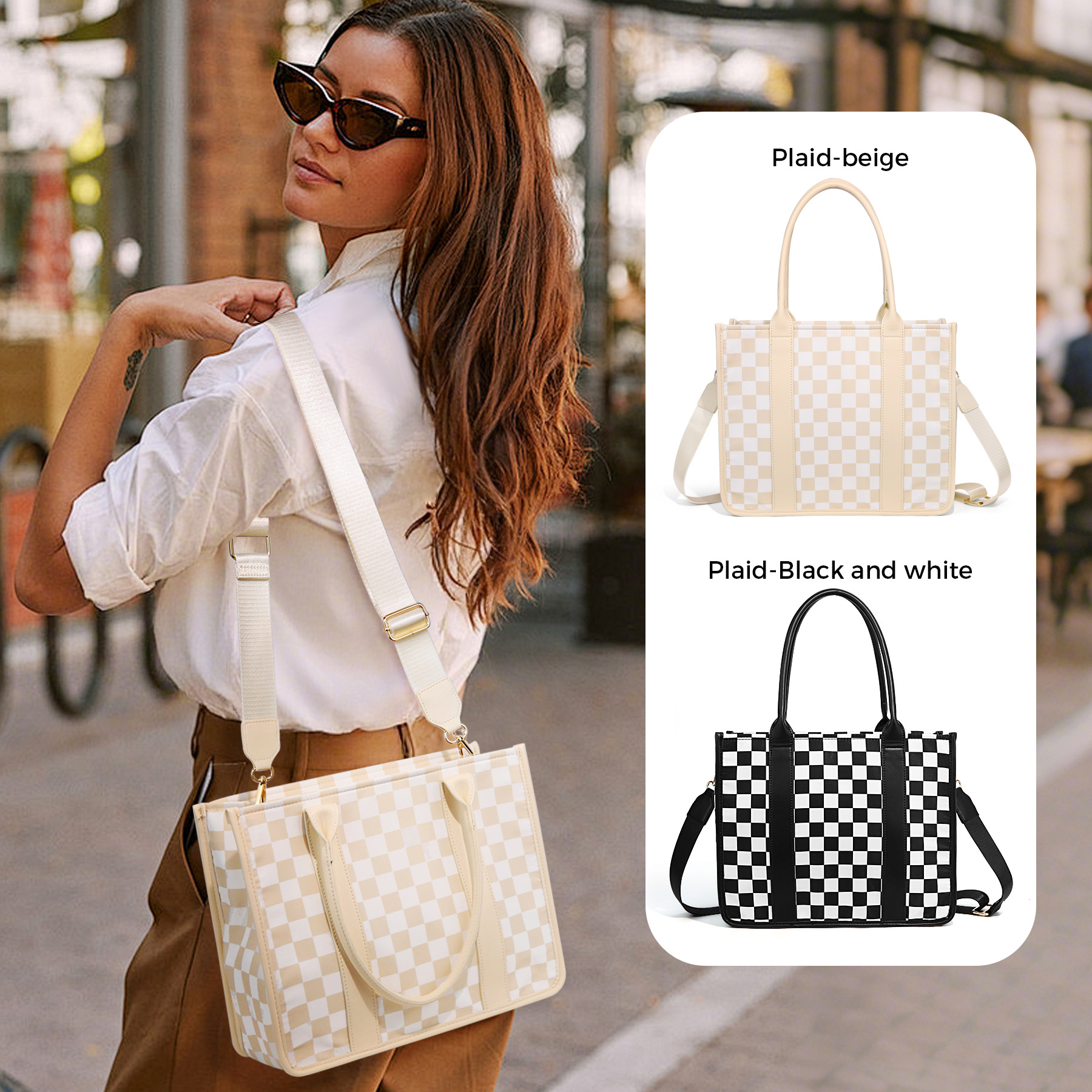 재고 국경 간 여성 체커 보드 숄더 크로스 바디 백 캐주얼 올 매치 핸드백 격자 무늬 가방 여성용 어깨 끈스토어 가기