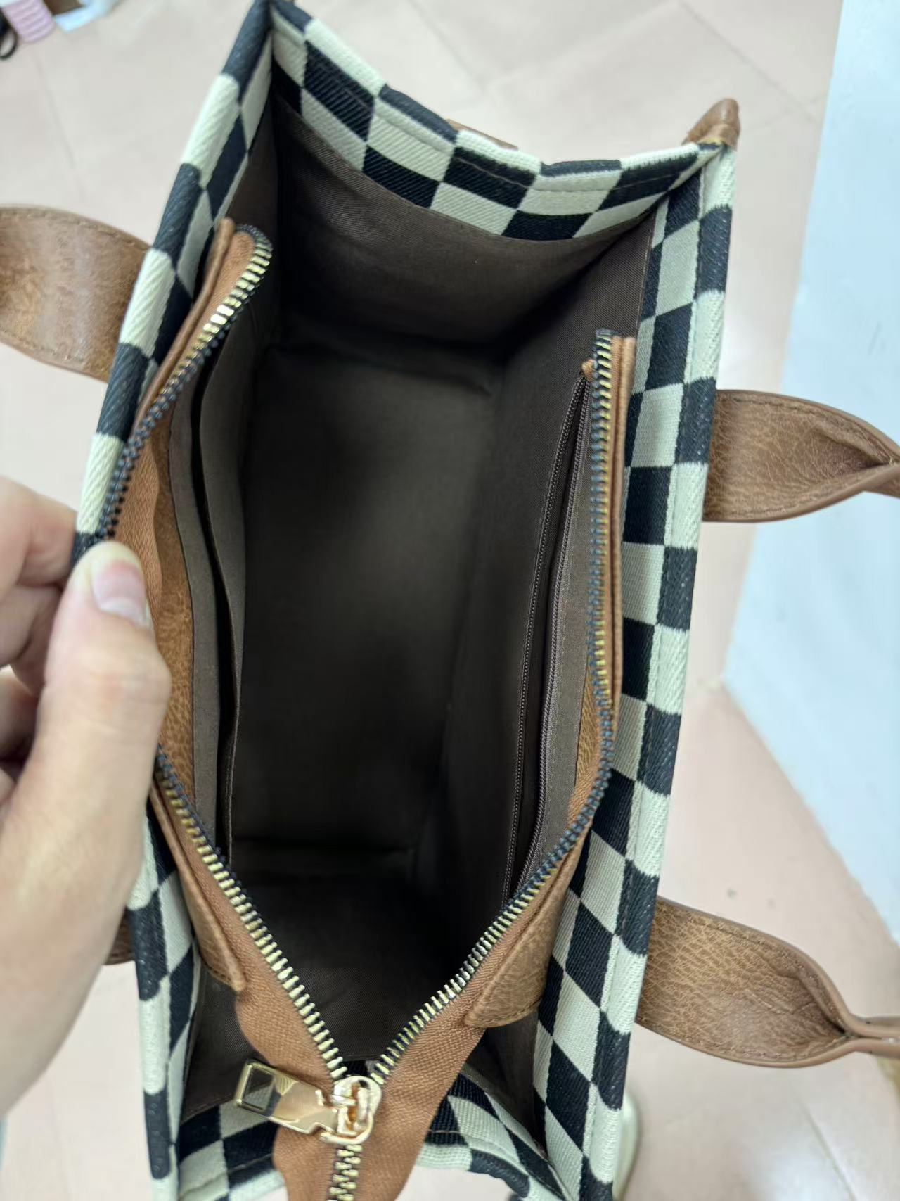 • 더블 지퍼 - 격자 무늬 브라운 (재고 있음)