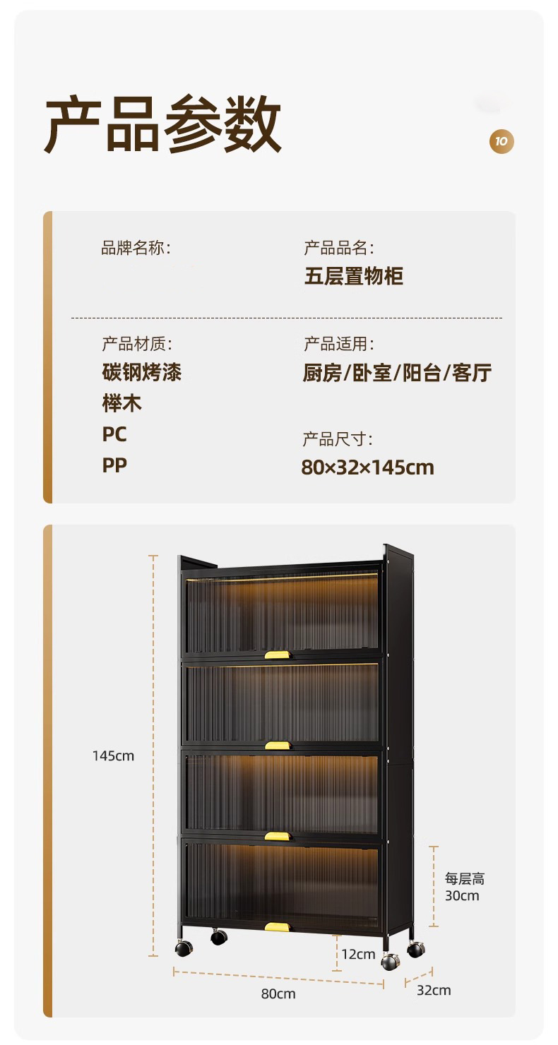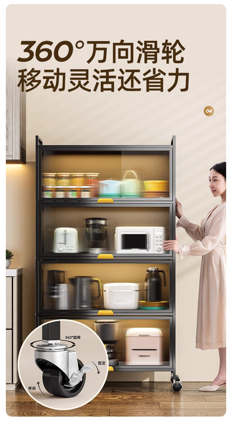 定制新款厨房置物架防尘多层家用收纳柜子多功能厨具橱柜储物柜子