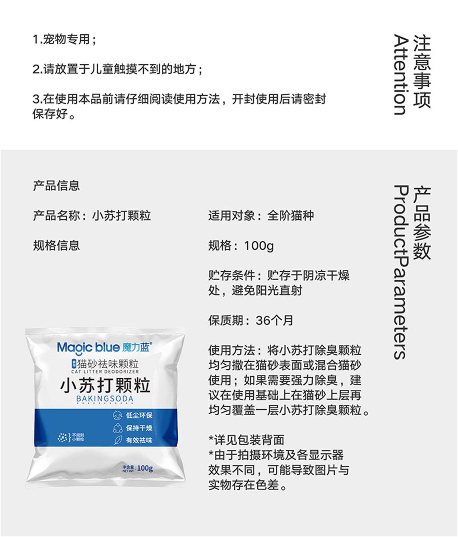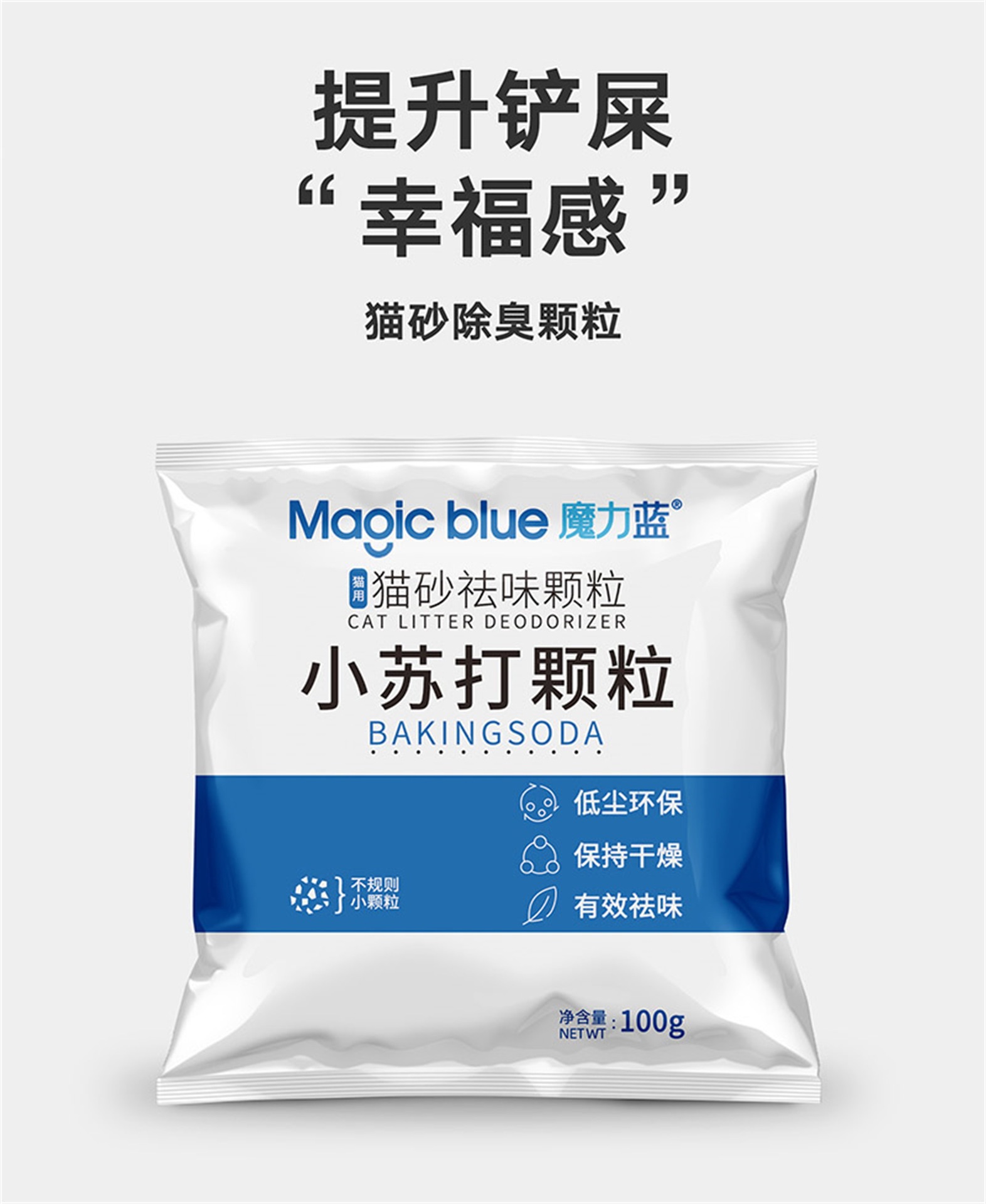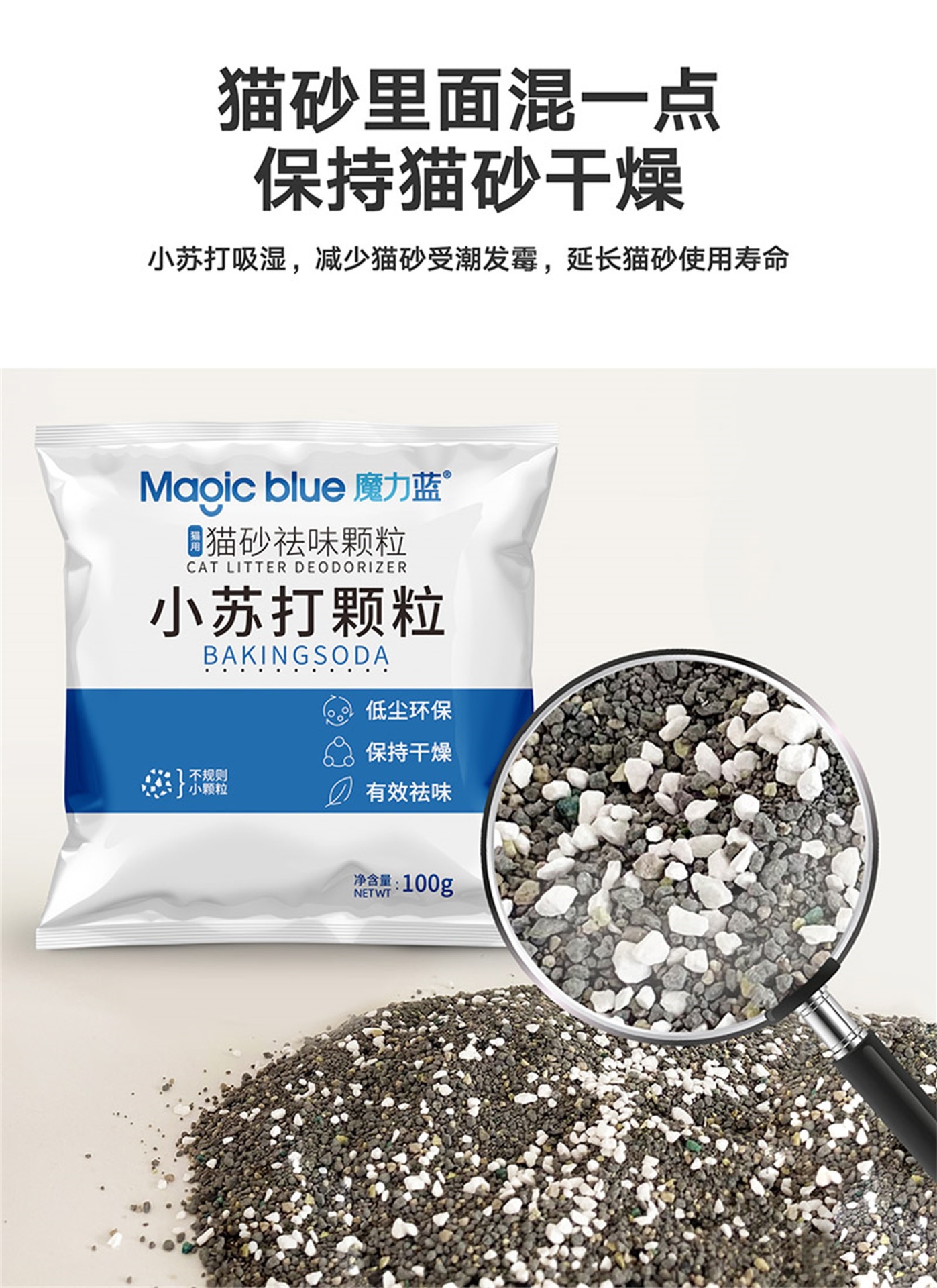 매직 블루 베이킹 소다 과립 고양이 쓰레기 동반자 100g 고양이 쓰레기 탈취 제습 고양이 쓰레기 용품 도매