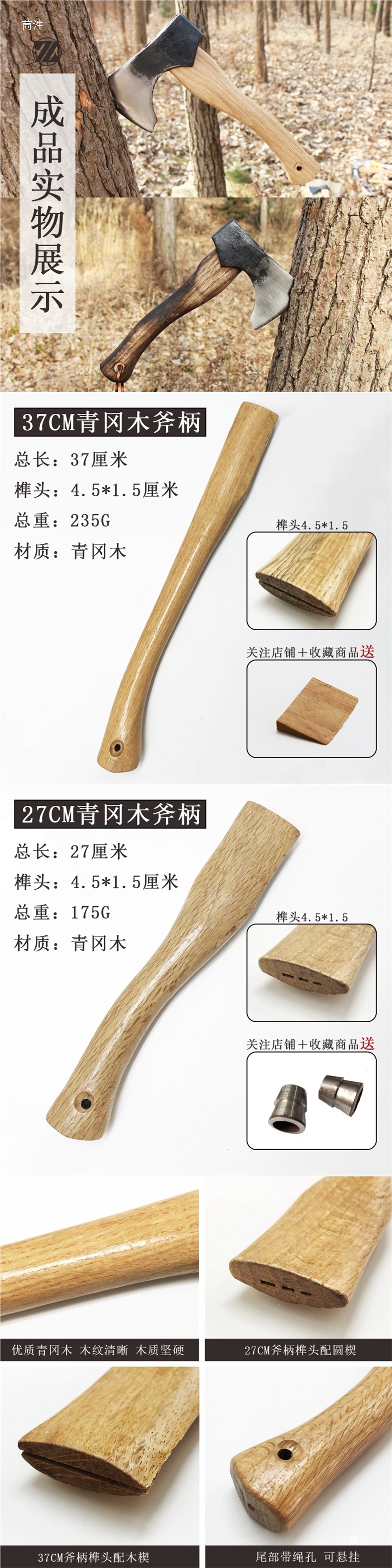 • 37CM 칭강나무 도끼 손잡이(단일 손잡이)