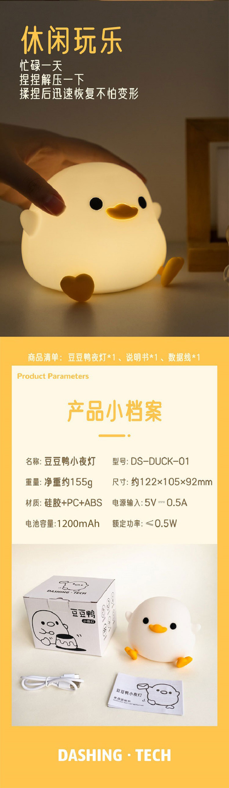 Doudou 오리 실리콘 야간 조명 침실 어린이 잠자는 빛 유도 침대 옆 분위기 빛 잠자는 빛 국경스토어 가기