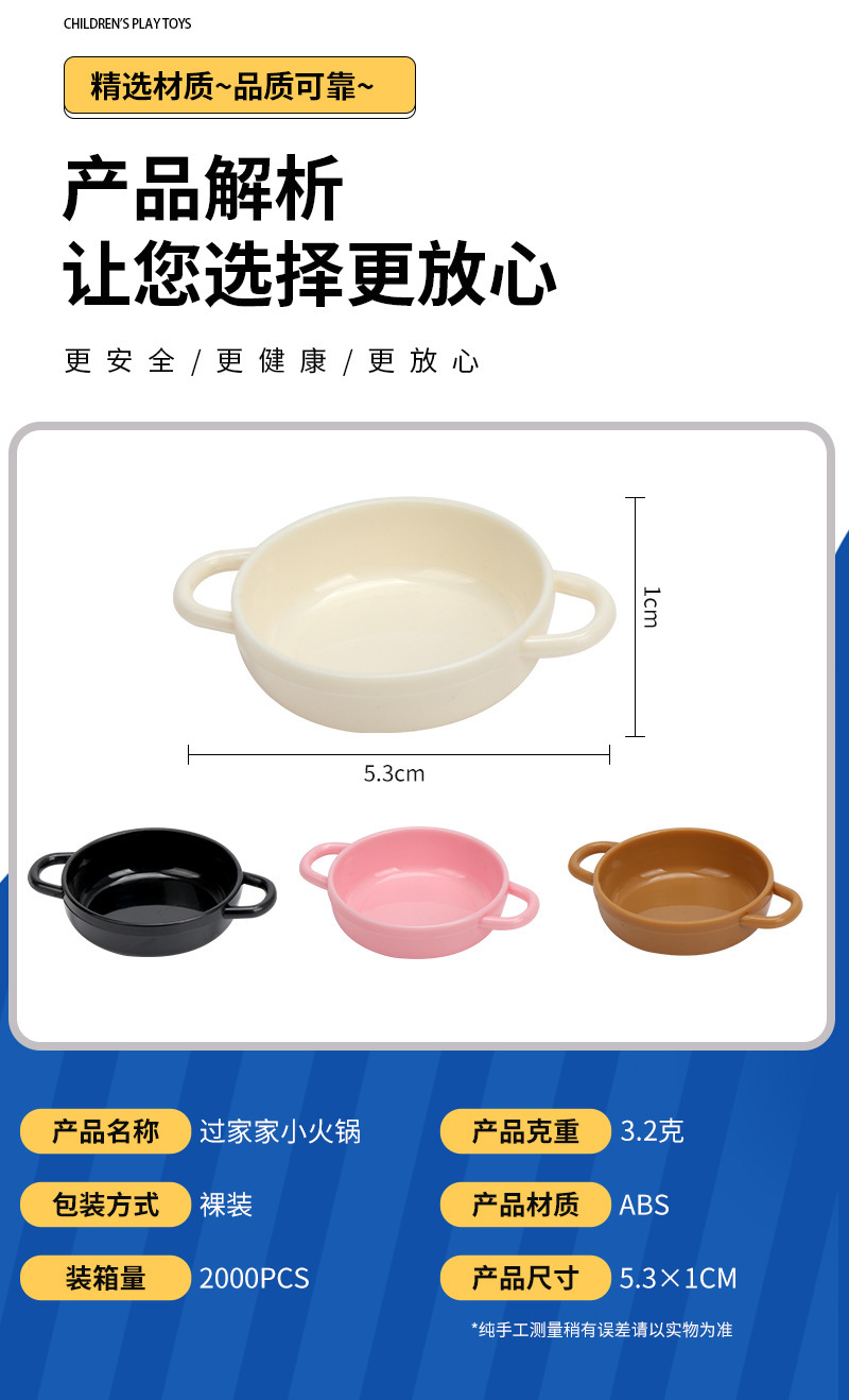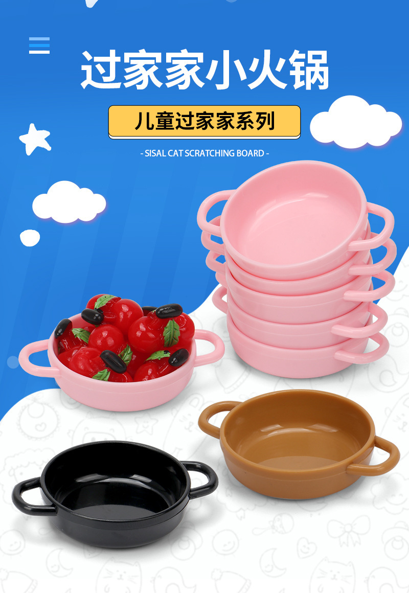 크로스미러 소꿉놀이 미니 전골 냄비 장난감, 미니어처 이중 손잡이 전골 냄비 모형, 미니 음식놀이 주방 장난감