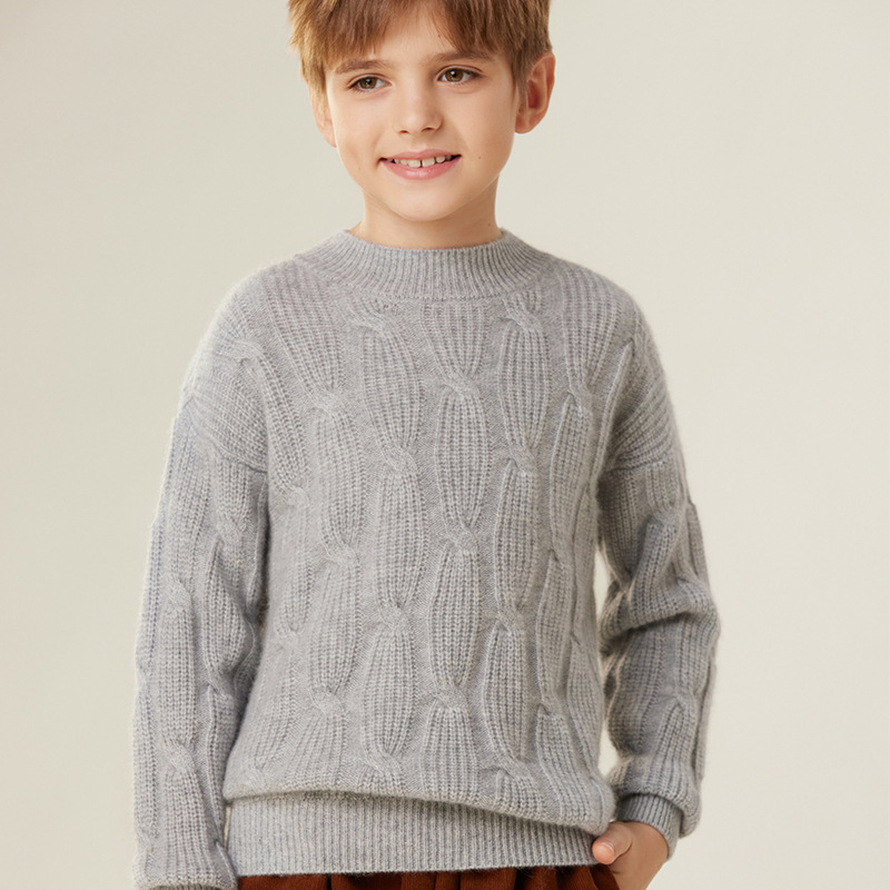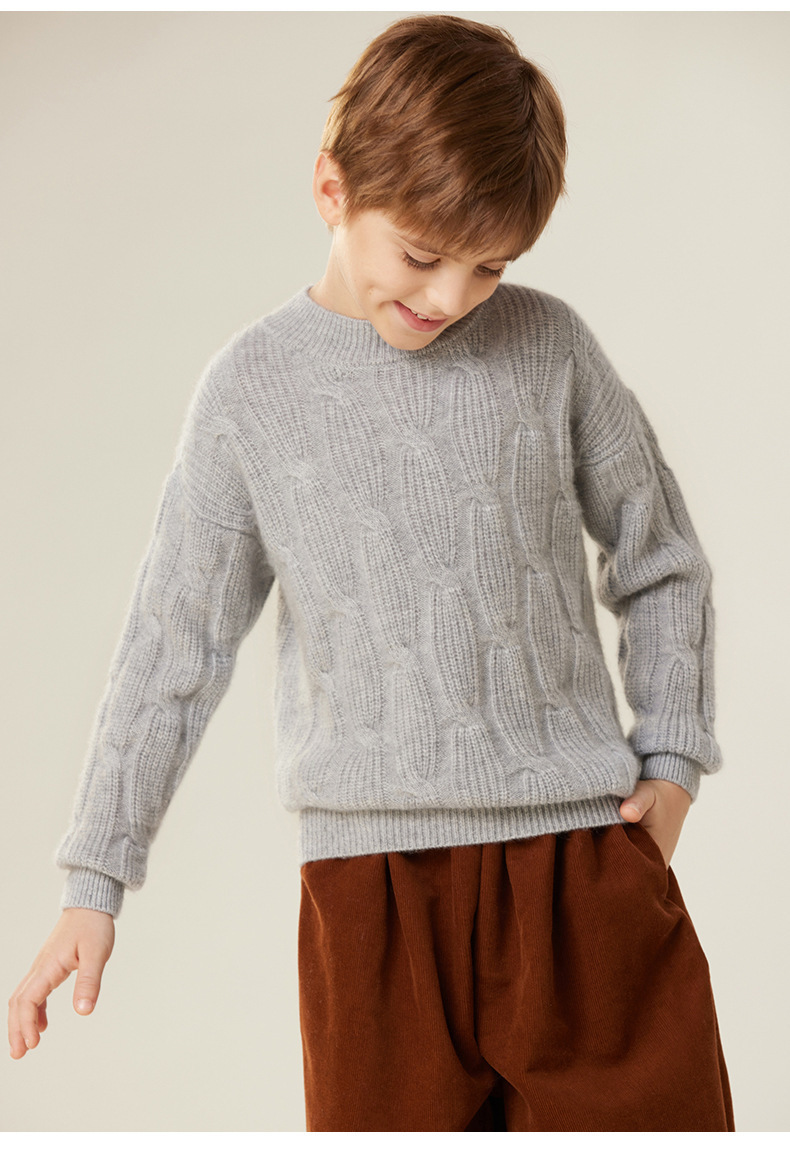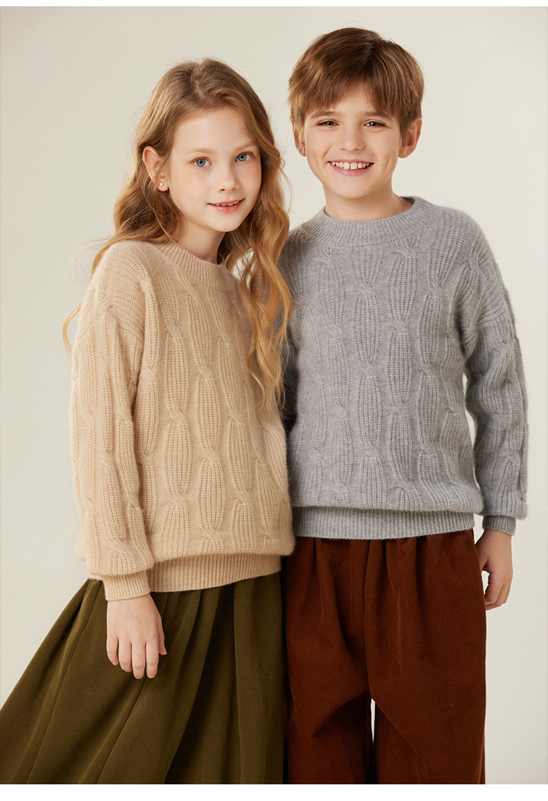 남녀 어린이를위한 7 스티치 두꺼운 산 캐시미어 스웨터 자카드 디자인 크루 넥 풀오버 아기 니트 베이스 스웨터