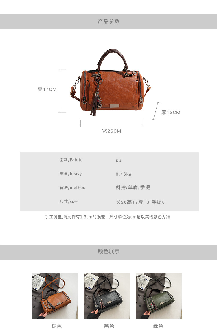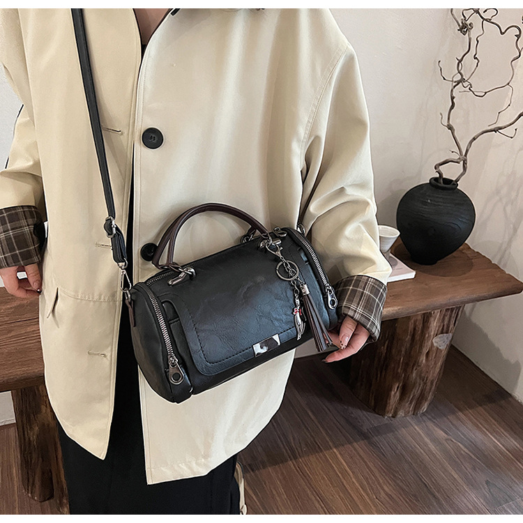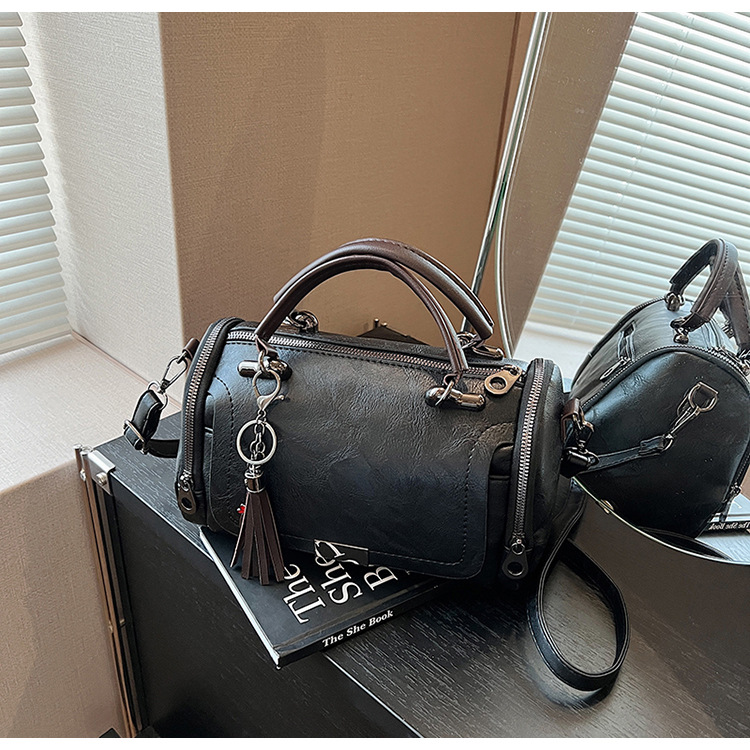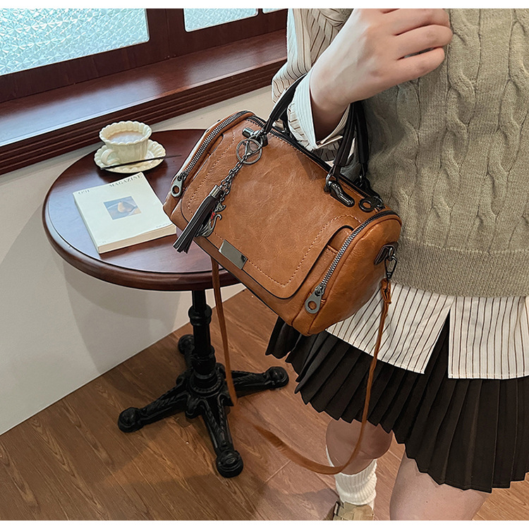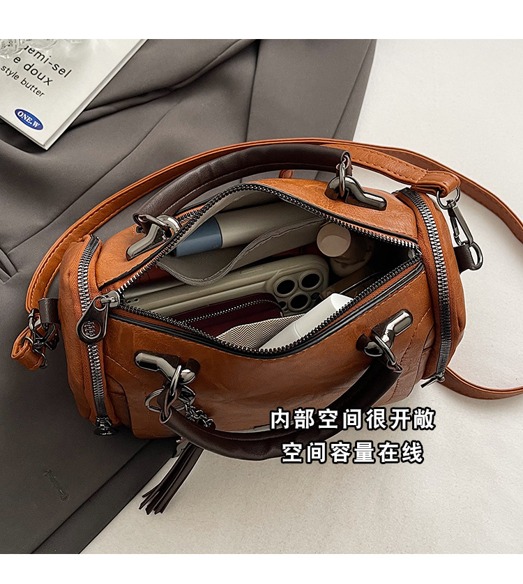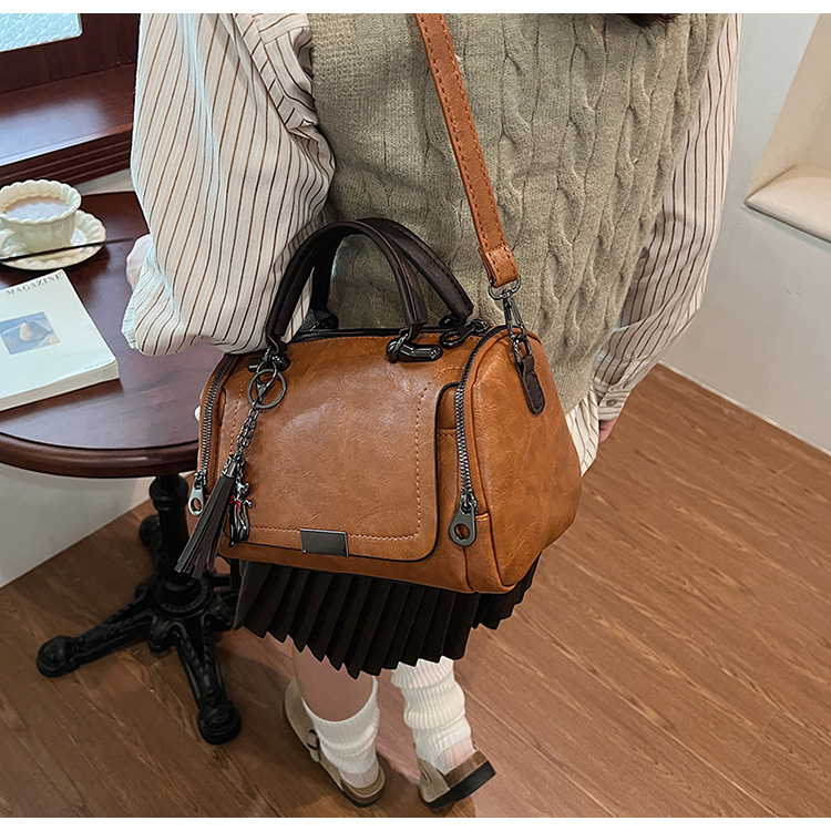 레트로 태슬 하이엔드 보스턴백 2024 가을 겨울 다용도 베개백 크로스보더 스플라이싱 대용량 겨드랑이백스토어 가기