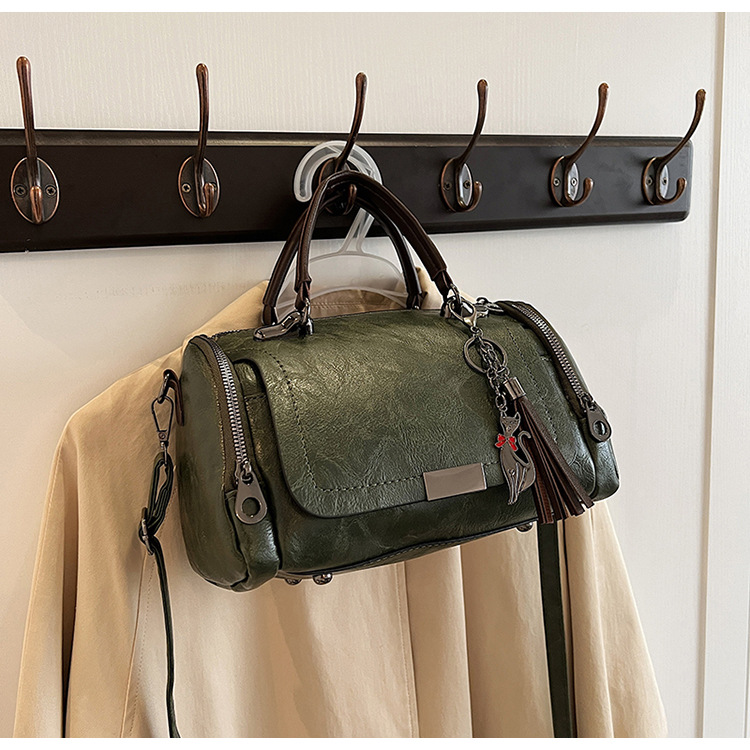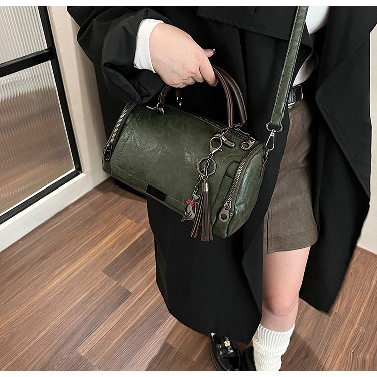 레트로 태슬 하이엔드 보스턴백 2024 가을 겨울 다용도 베개백 크로스보더 스플라이싱 대용량 겨드랑이백