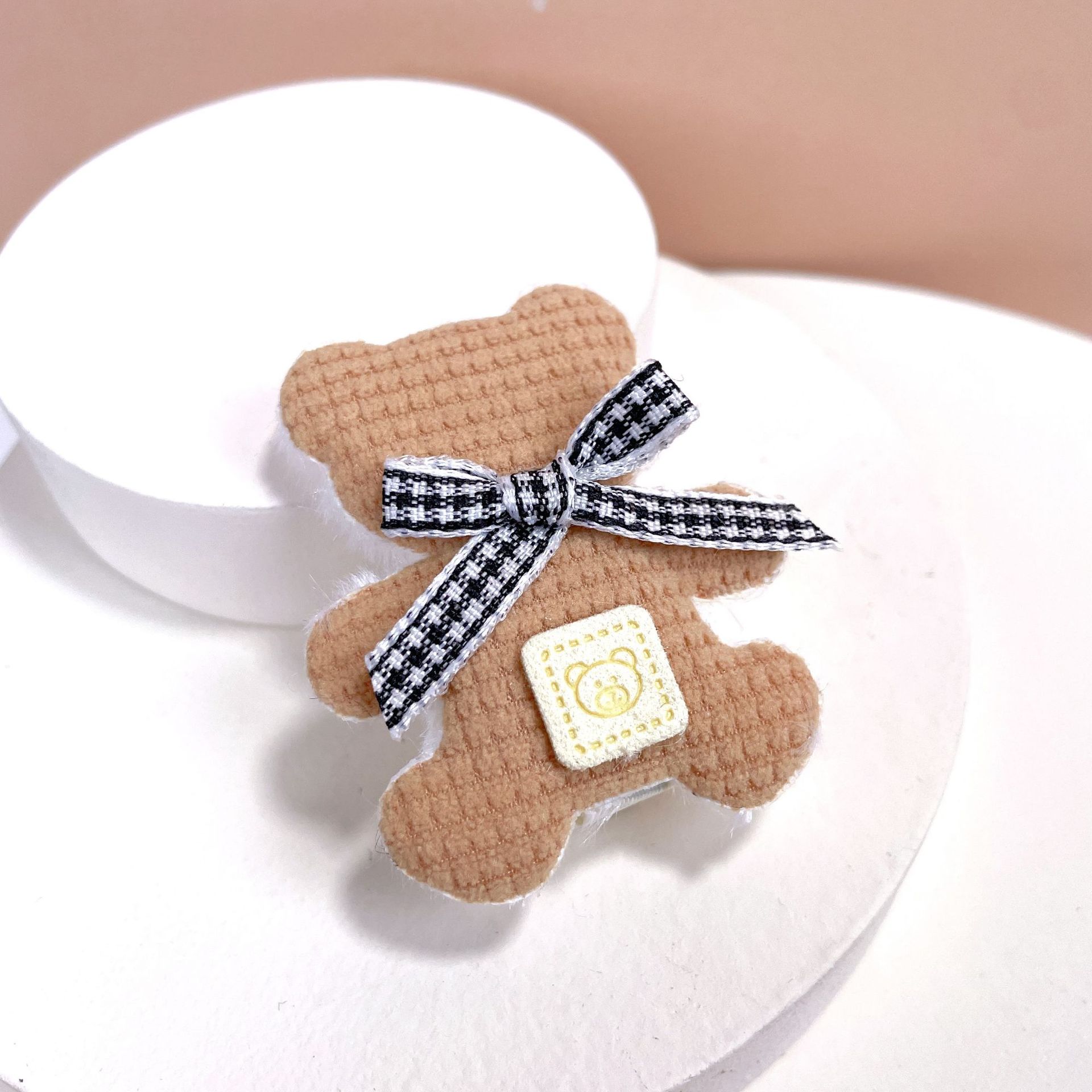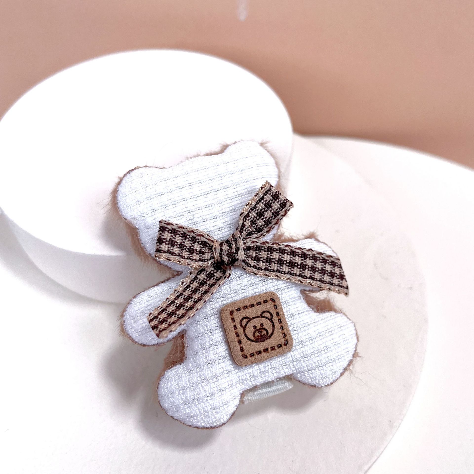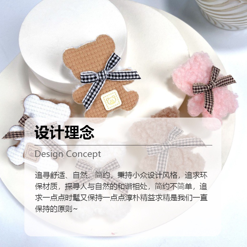 가을과 겨울 새로운 부드러운 귀여운 라이트 베이지 곰 나비 머리핀 사이드 클립 봉제 앞머리 클립 어린이 머리핀