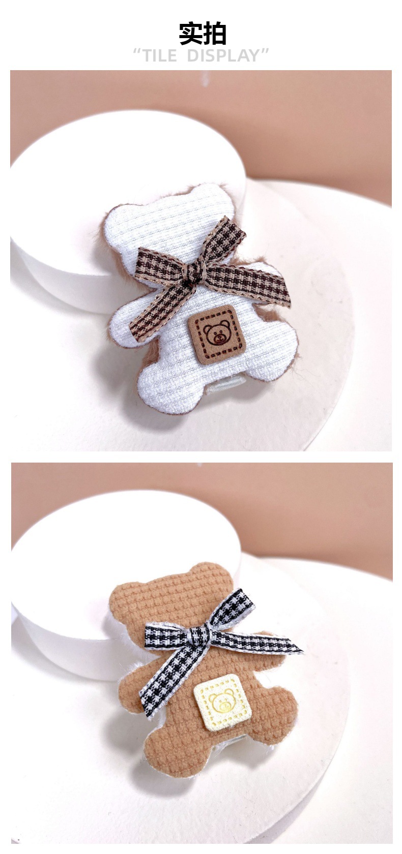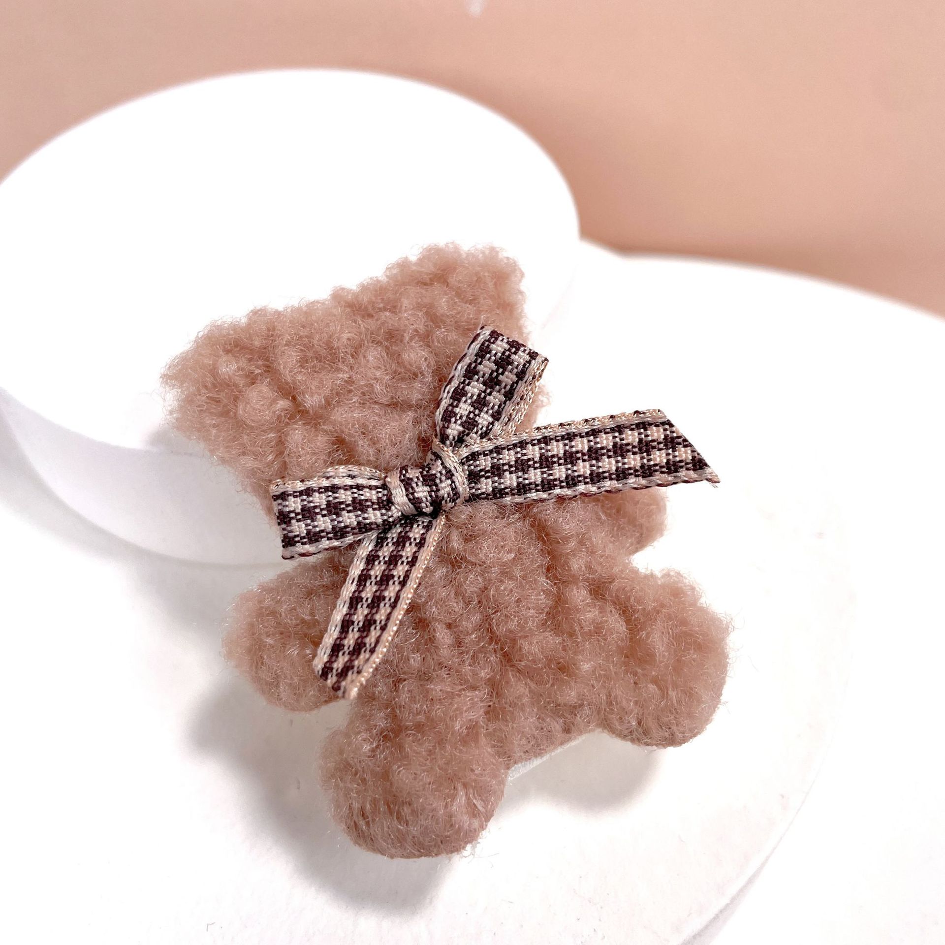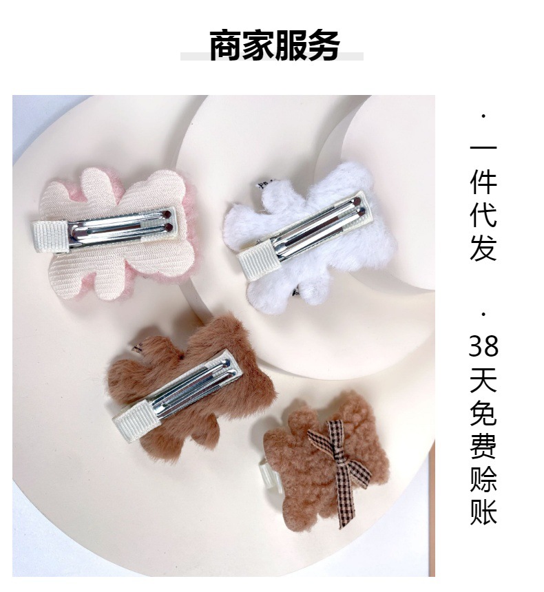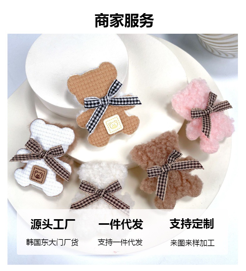 가을과 겨울 새로운 부드러운 귀여운 라이트 베이지 곰 나비 머리핀 사이드 클립 봉제 앞머리 클립 어린이 머리핀스토어 가기