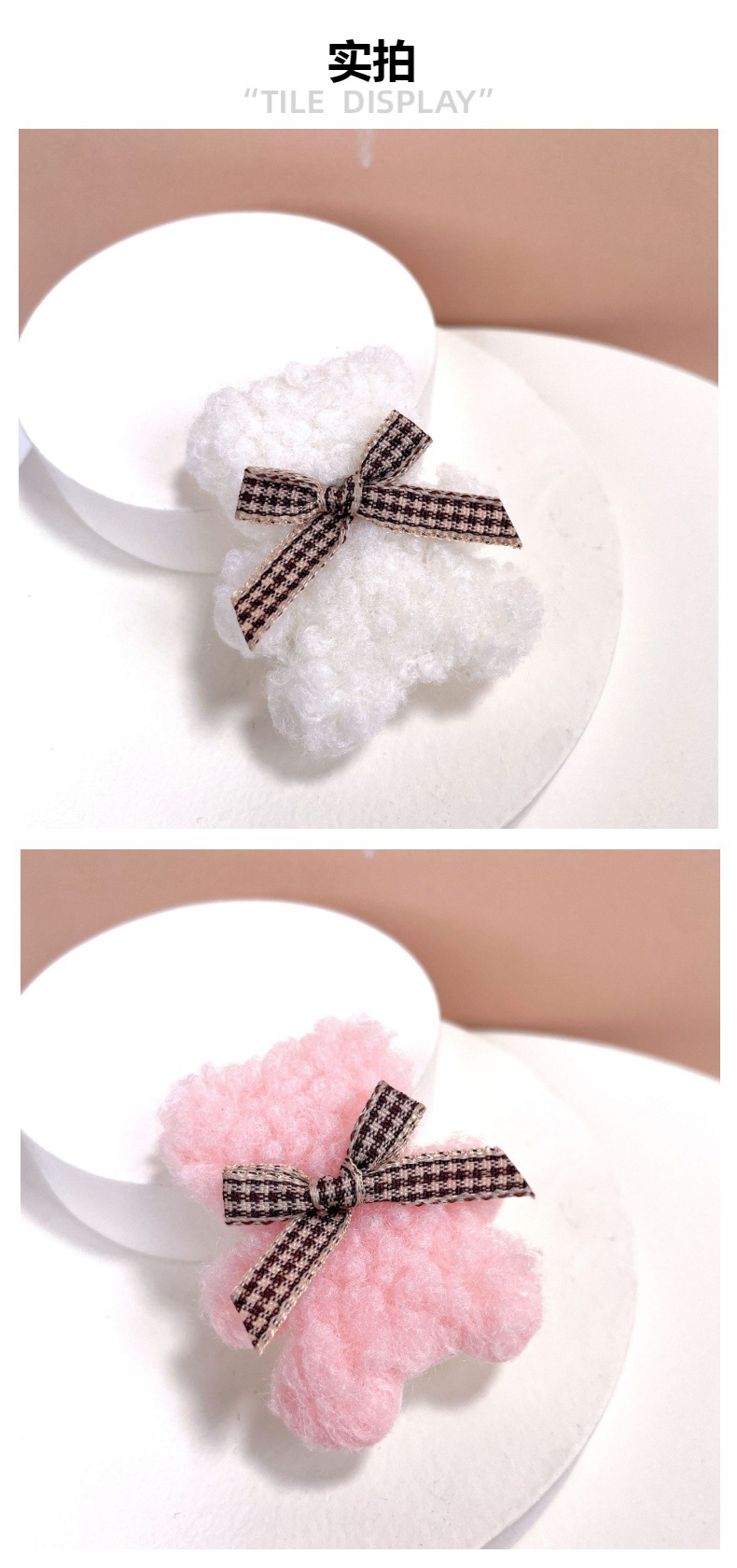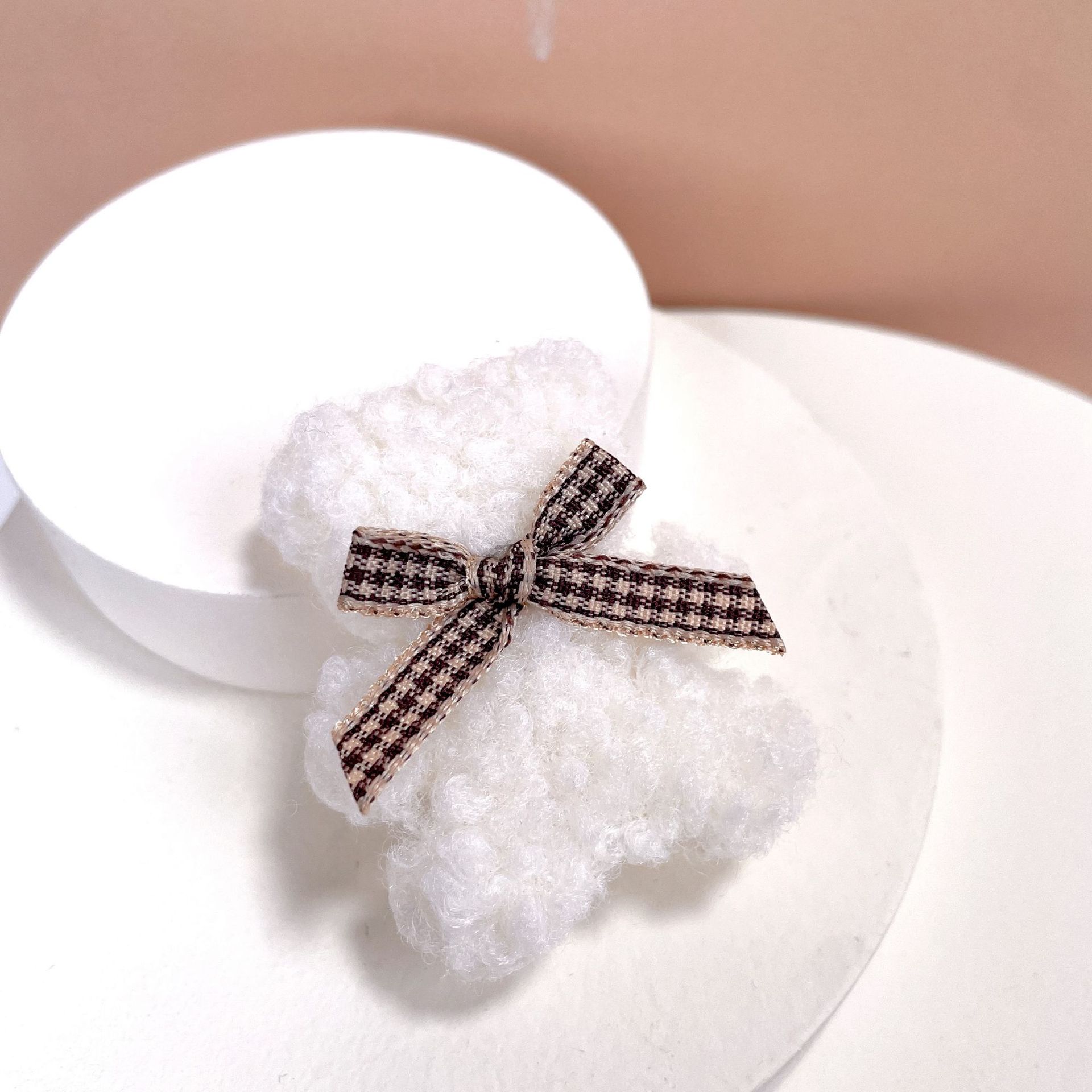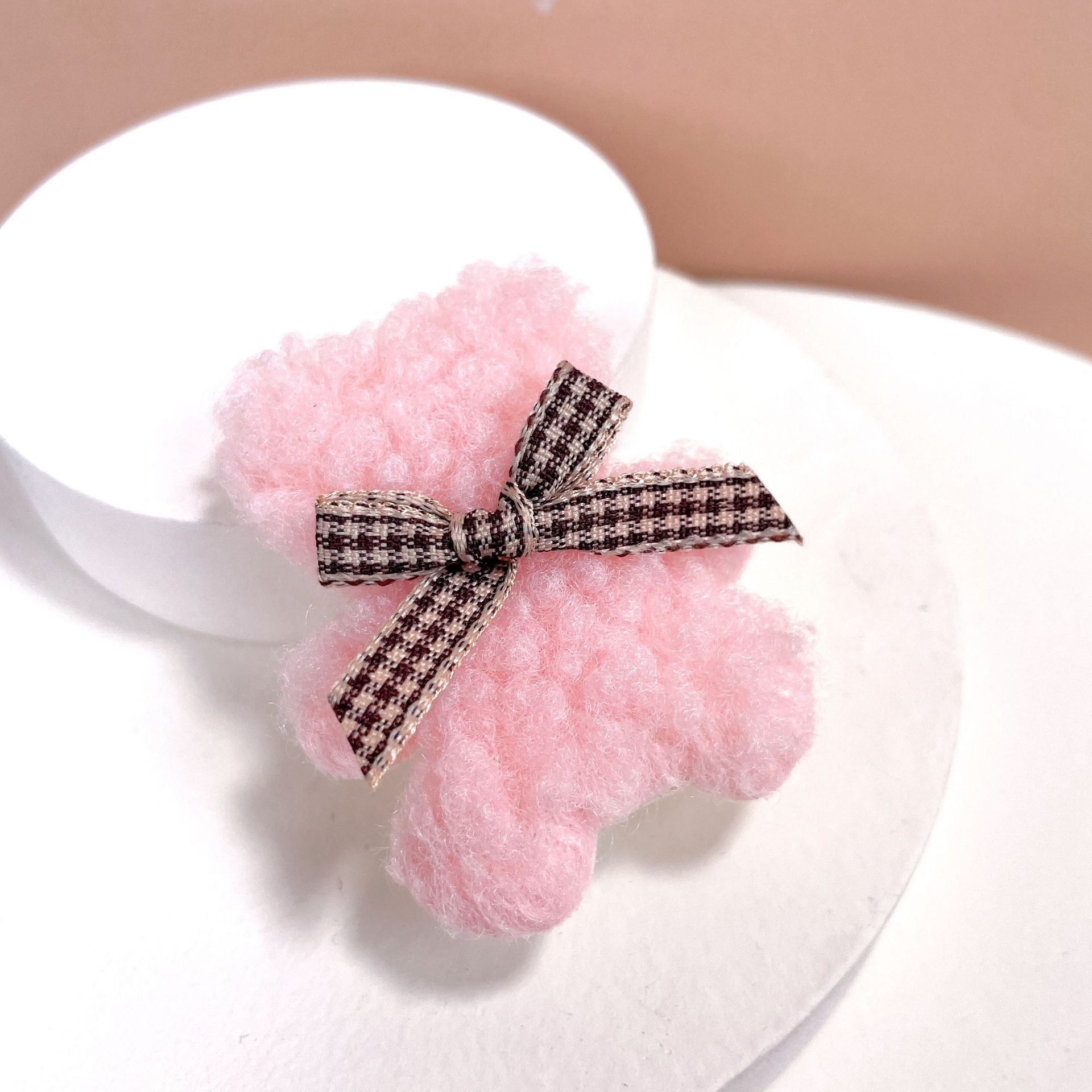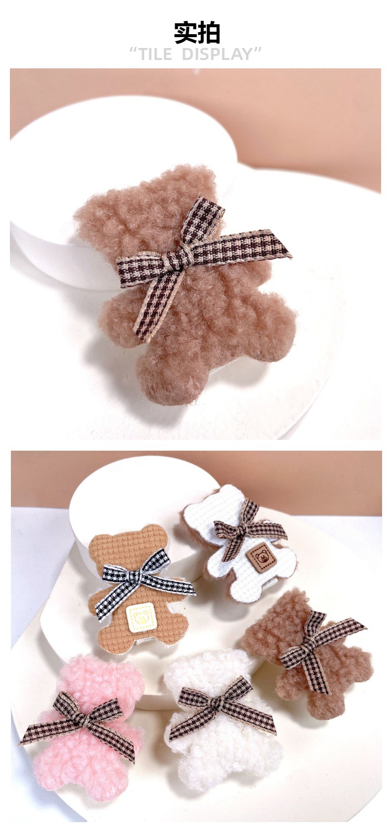 가을과 겨울 새로운 부드러운 귀여운 라이트 베이지 곰 나비 머리핀 사이드 클립 봉제 앞머리 클립 어린이 머리핀스토어 가기