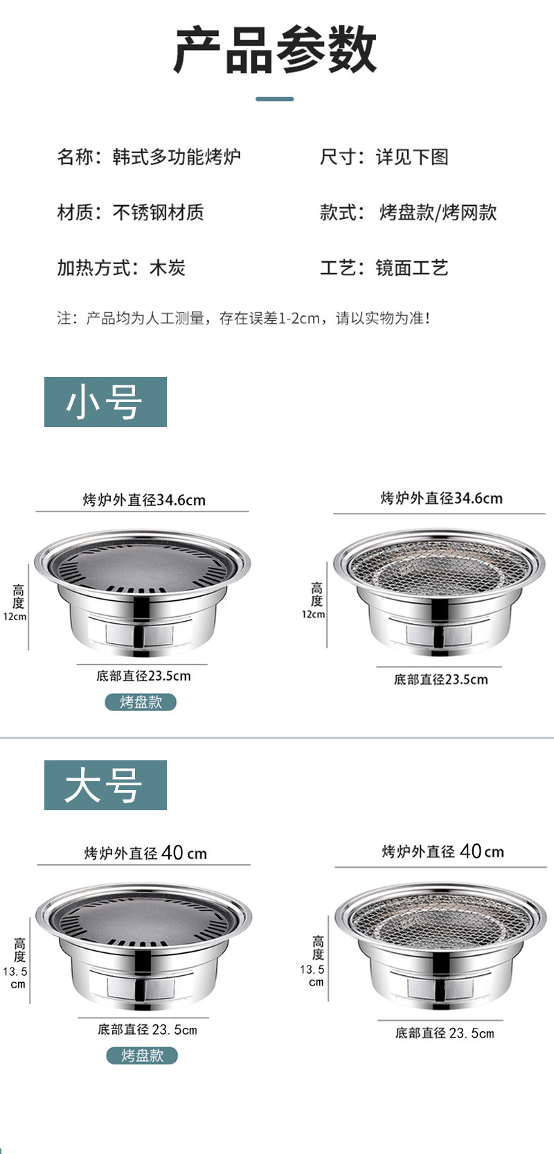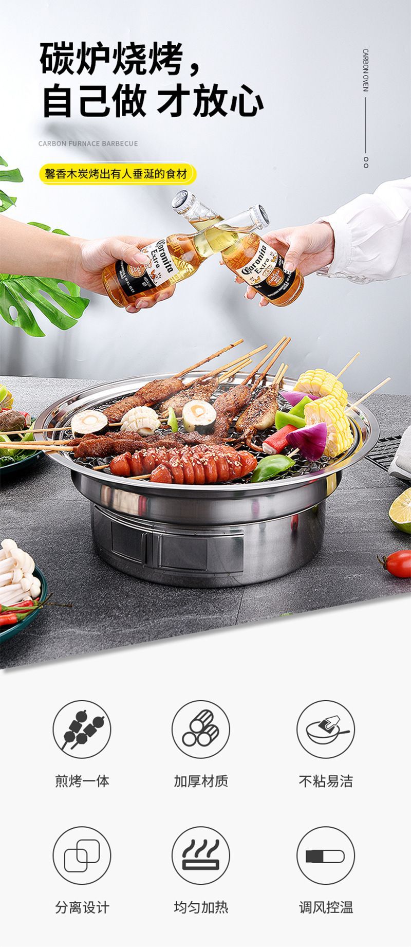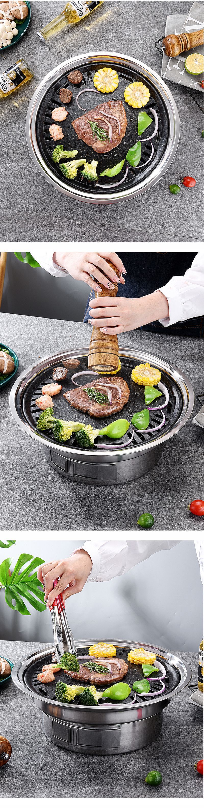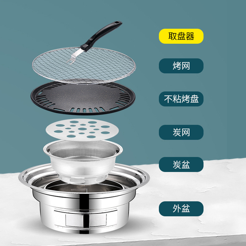 차 스테인레스 스틸 오븐 숯불 한국식 바베큐 오븐을 요리하기위한 상업 및 가정용 야외 캠핑 저녁 식사 바베큐 오븐