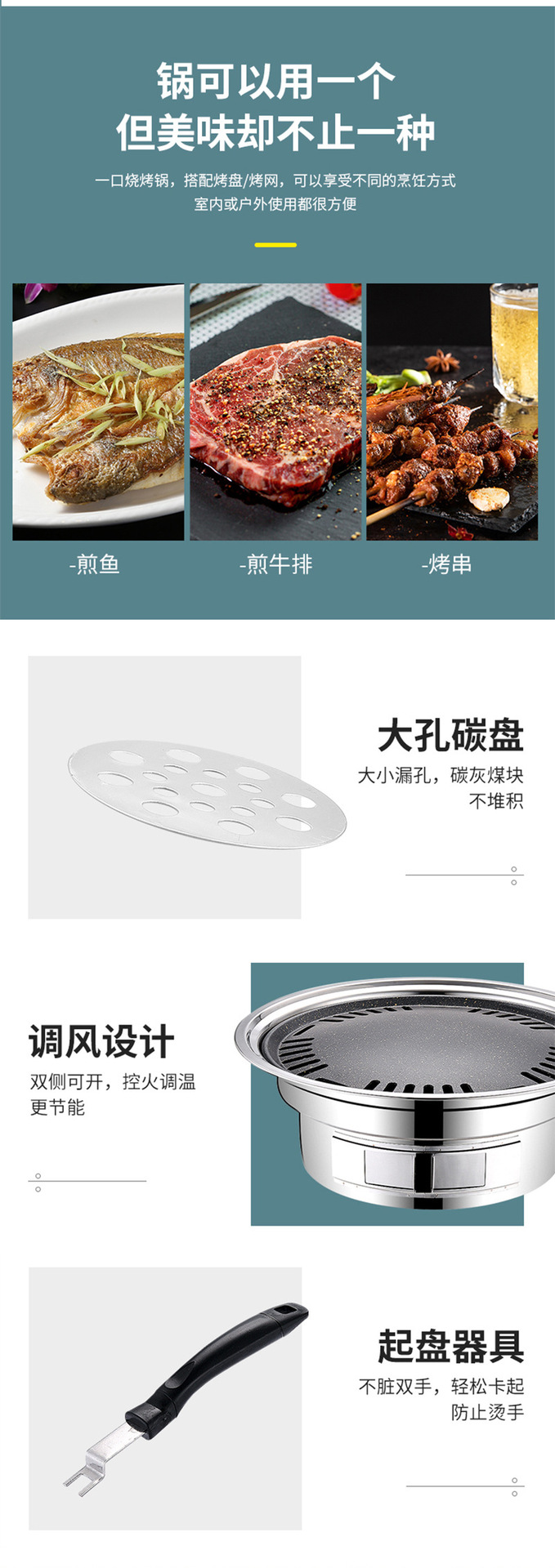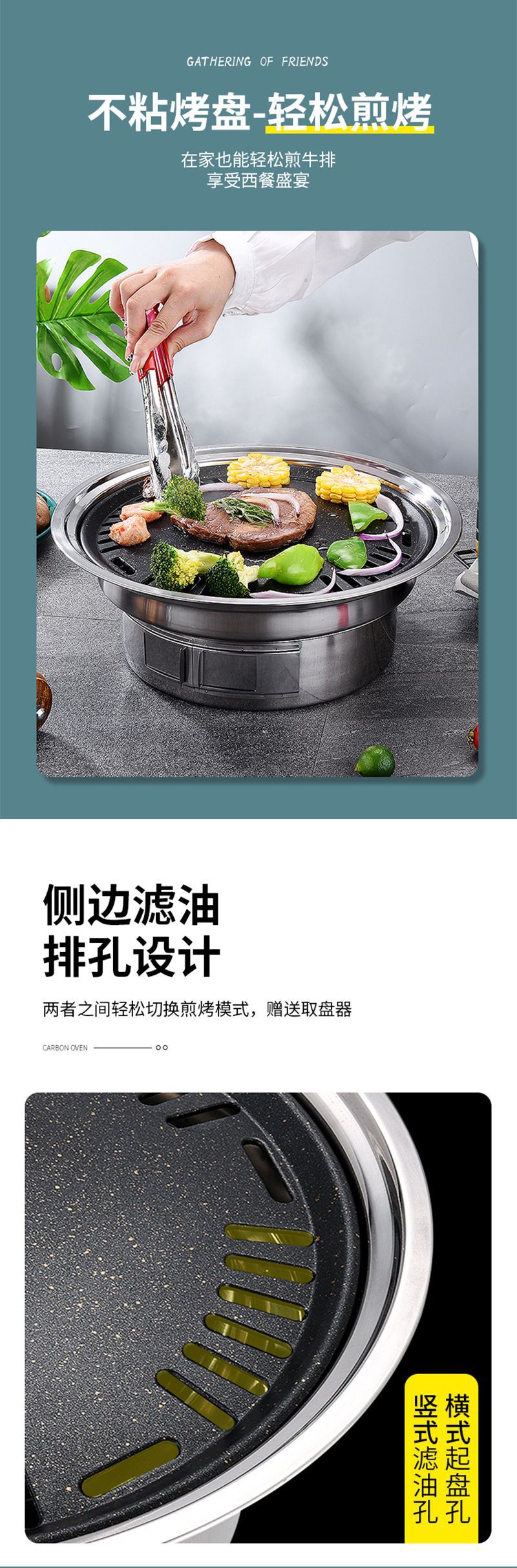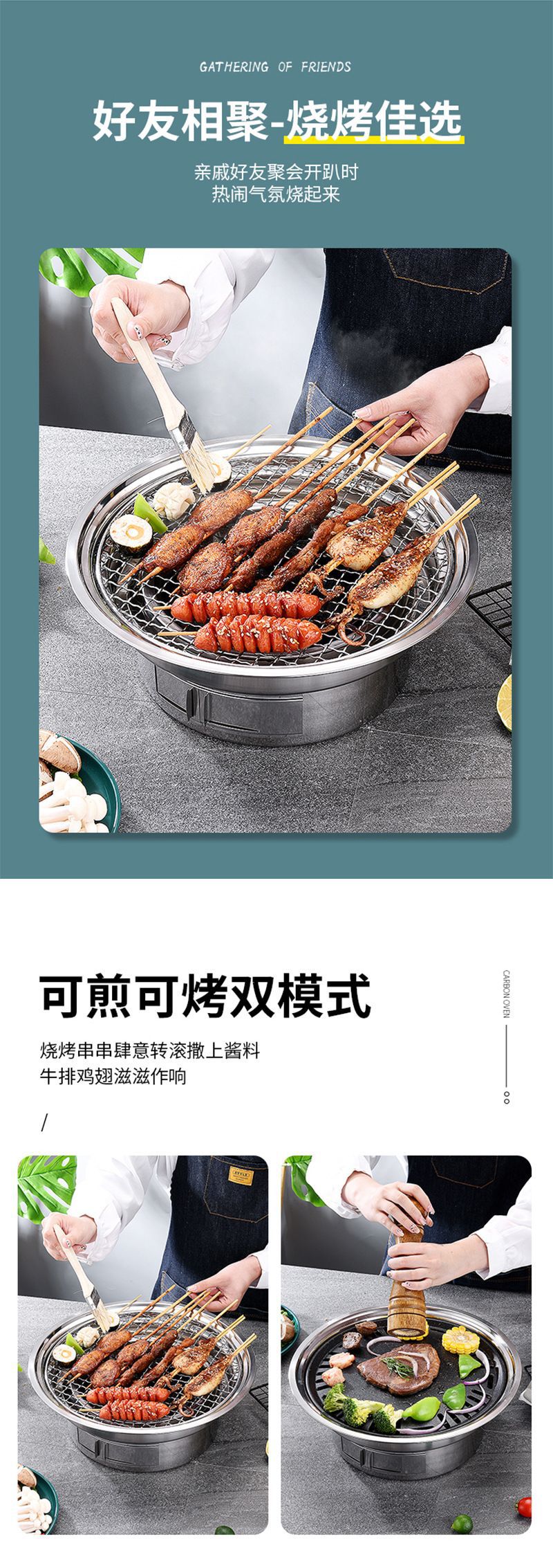 차 스테인레스 스틸 오븐 숯불 한국식 바베큐 오븐을 요리하기위한 상업 및 가정용 야외 캠핑 저녁 식사 바베큐 오븐