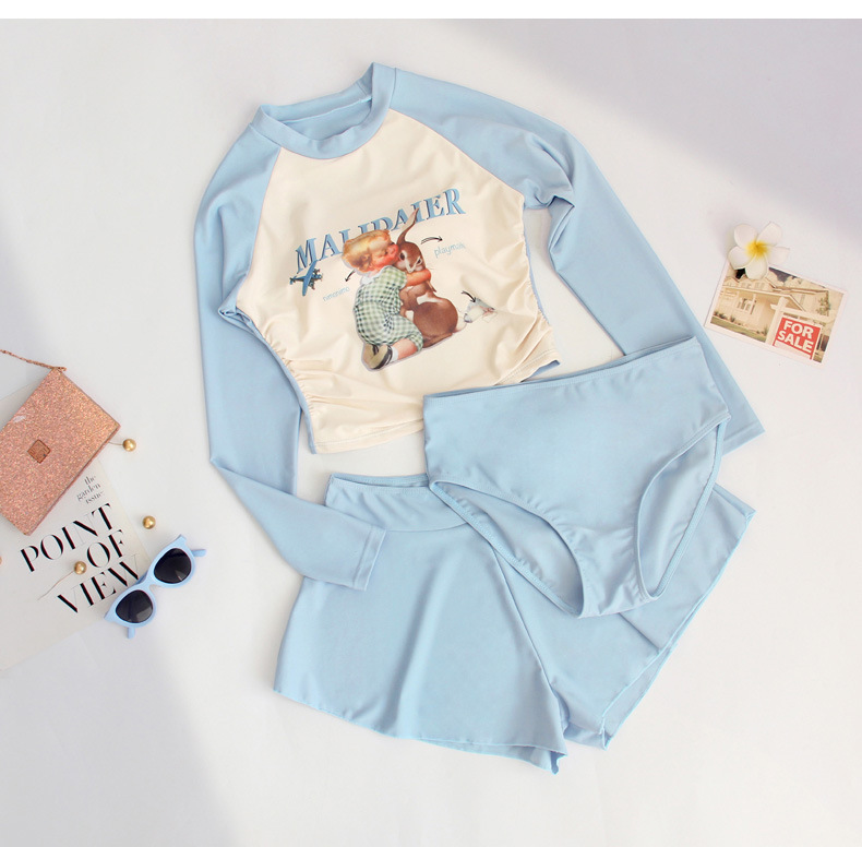 2025 새로운 수영복 여성 분할 3 피스 세트 소녀의 슬리밍 수집 작은 가슴 한국 온천스토어 가기