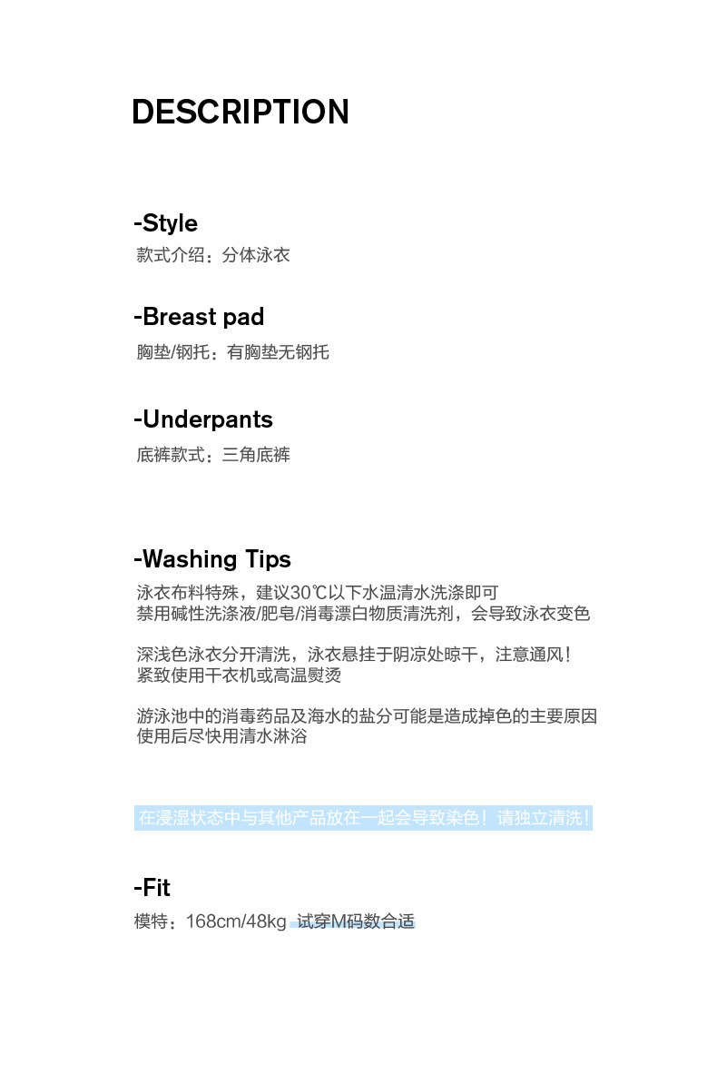 泳衣只能用清水洗不可使用洗衣液之类的 造成掉色责任自负。