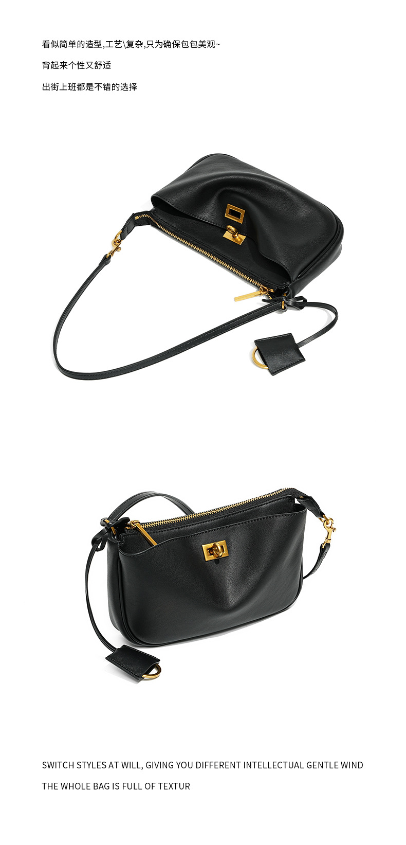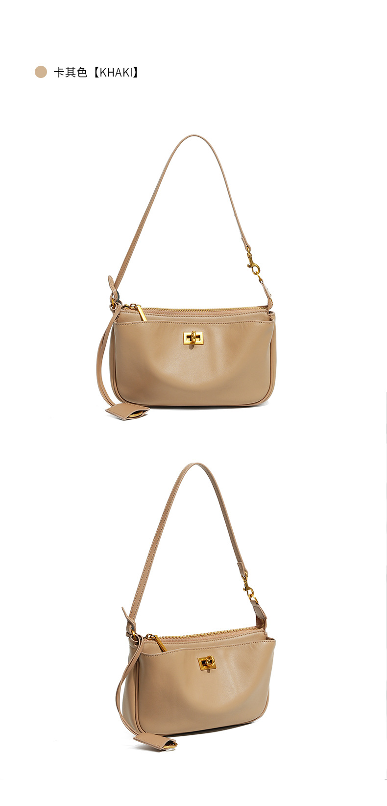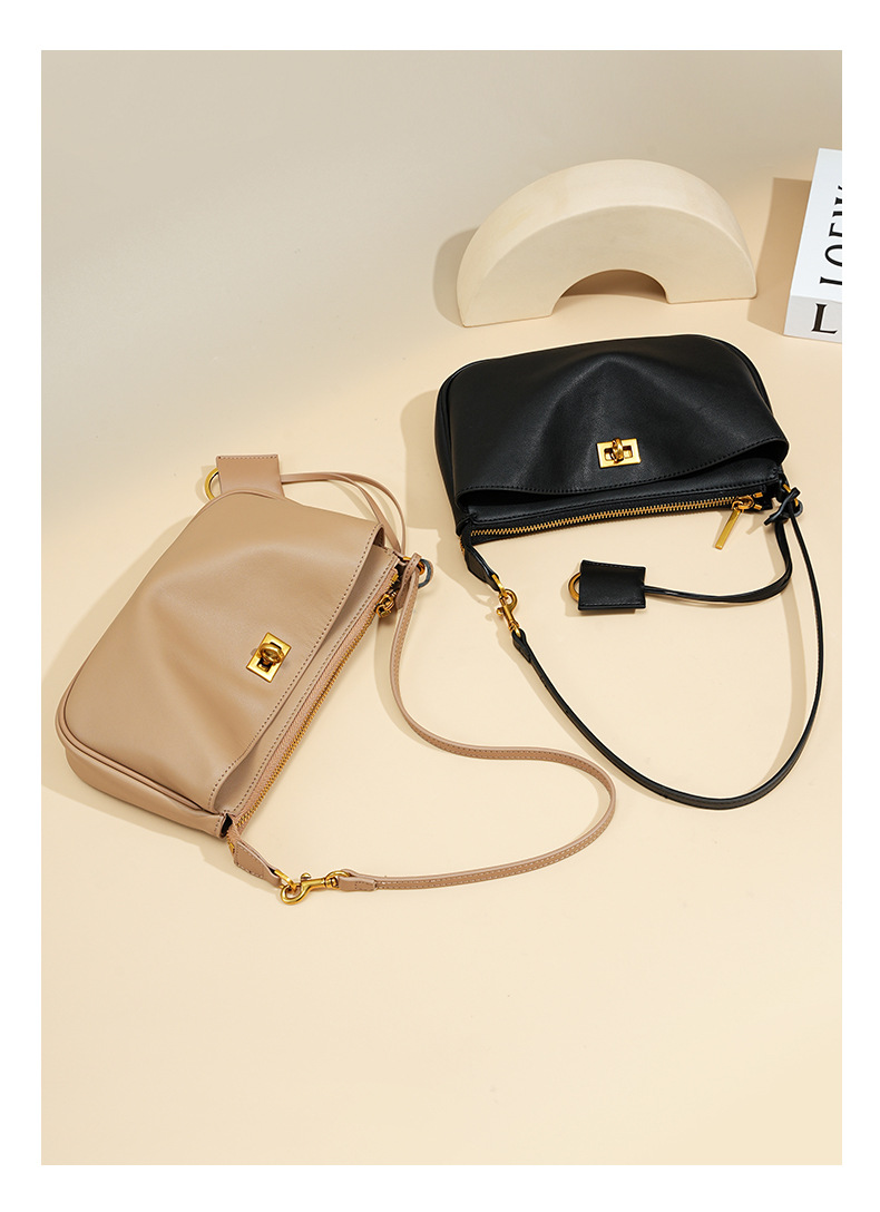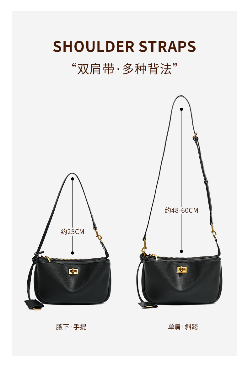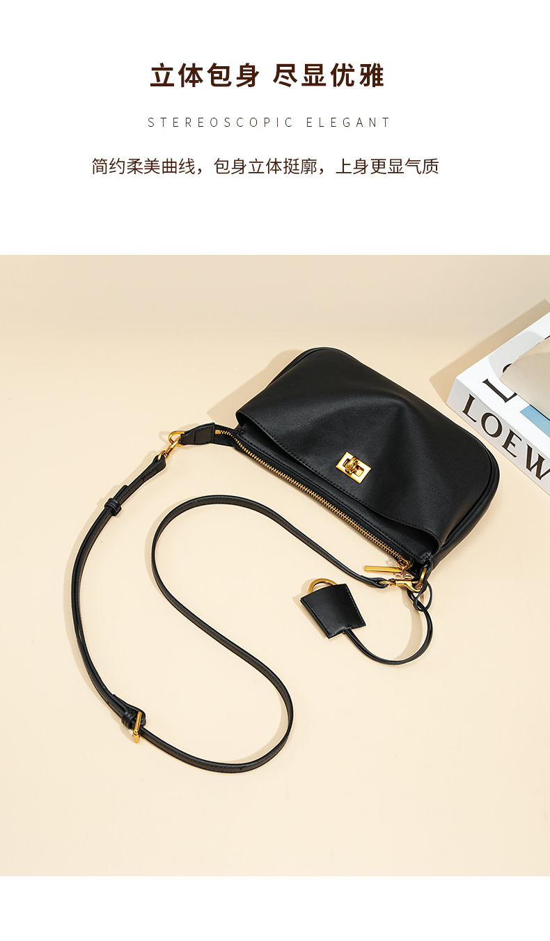 定制秋冬Rodeo凯莉法棍腋下包 高级感真皮锁扣机车单肩斜挎小方包