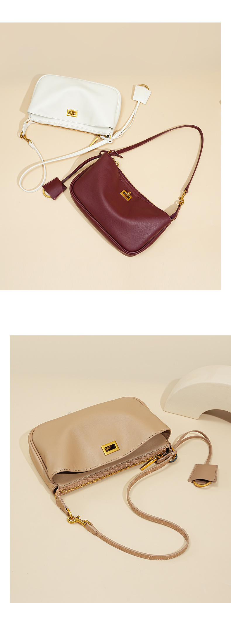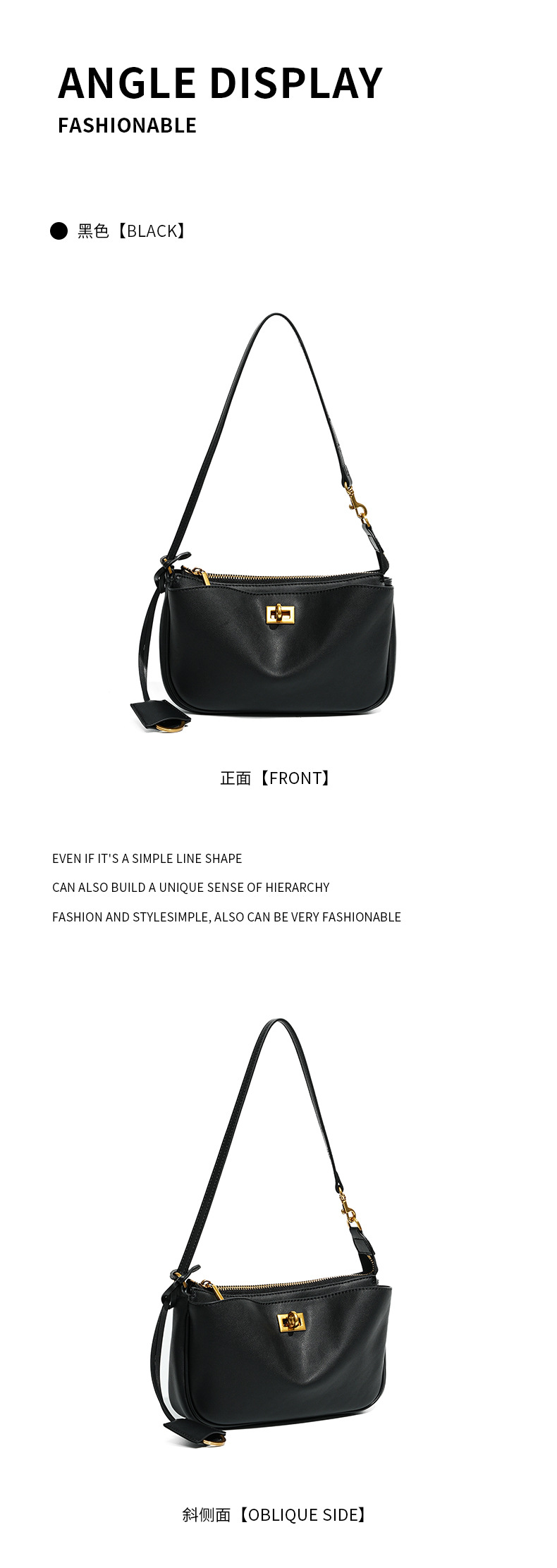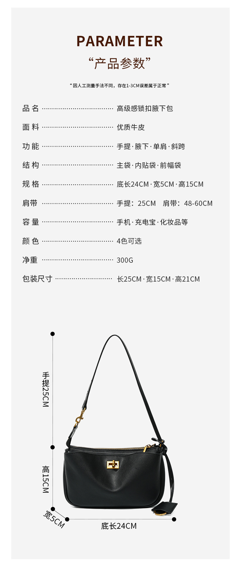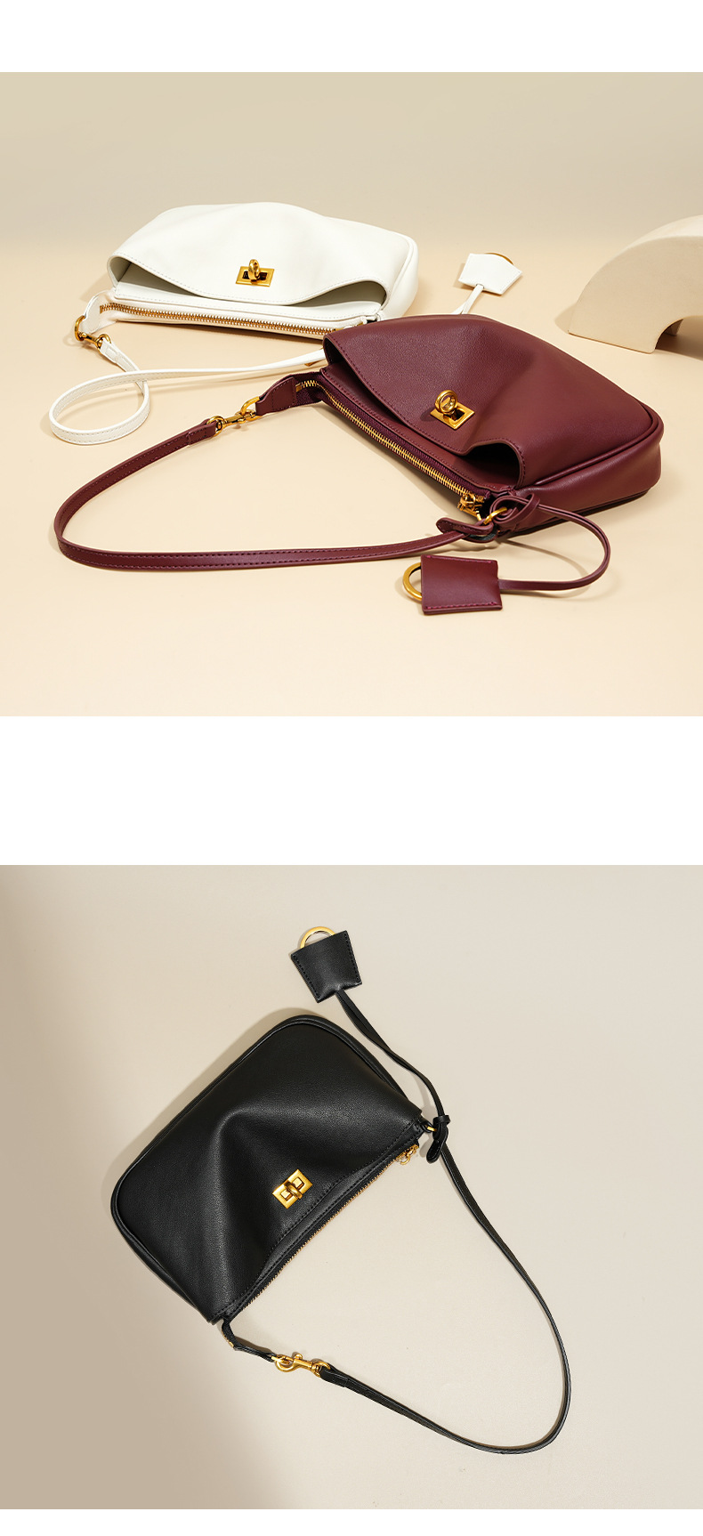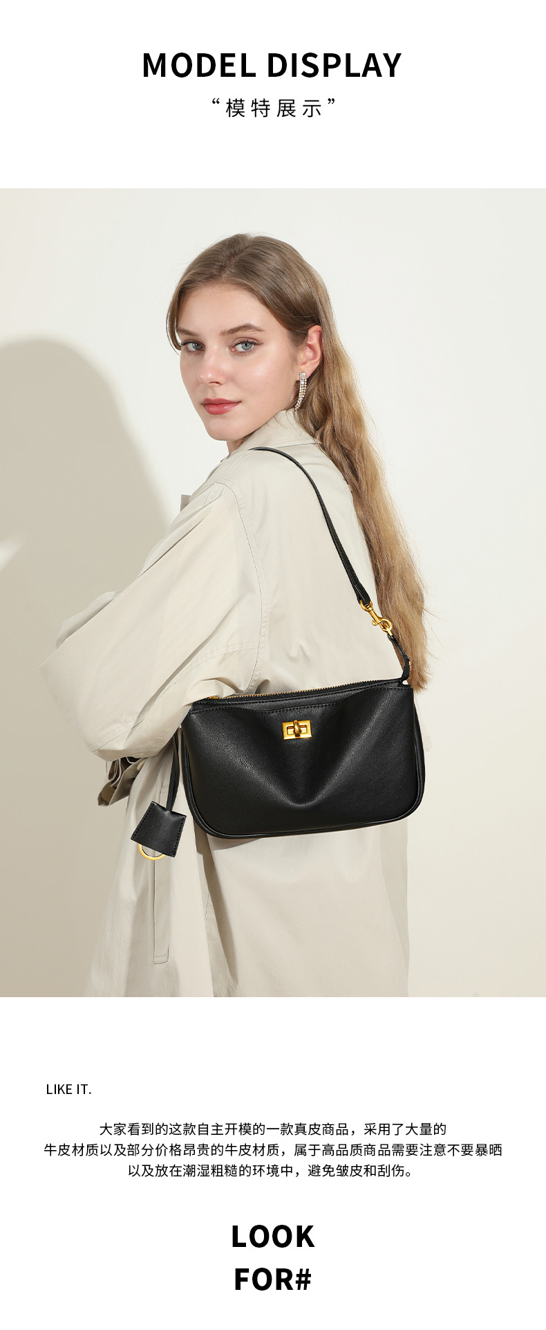 定制秋冬Rodeo凯莉法棍腋下包 高级感真皮锁扣机车单肩斜挎小方包