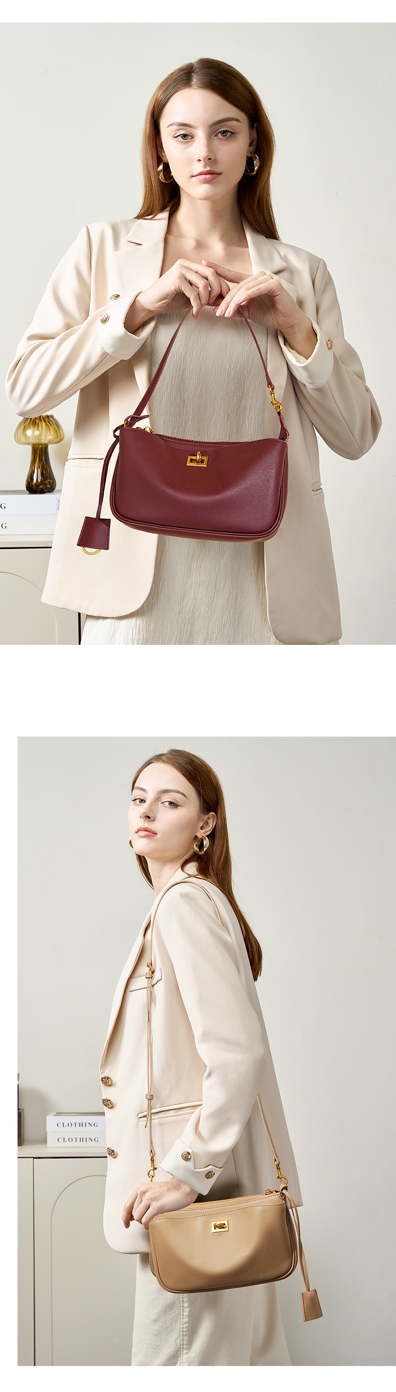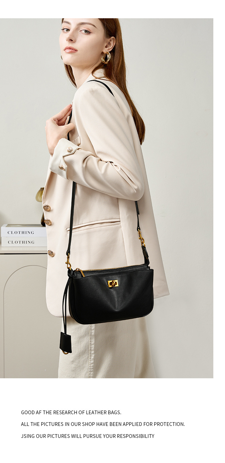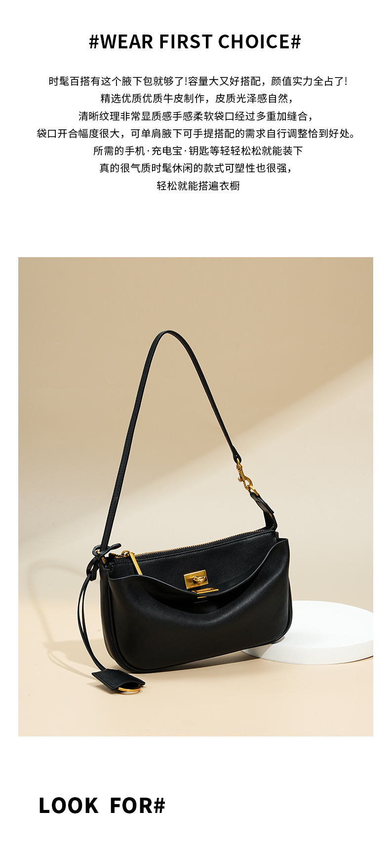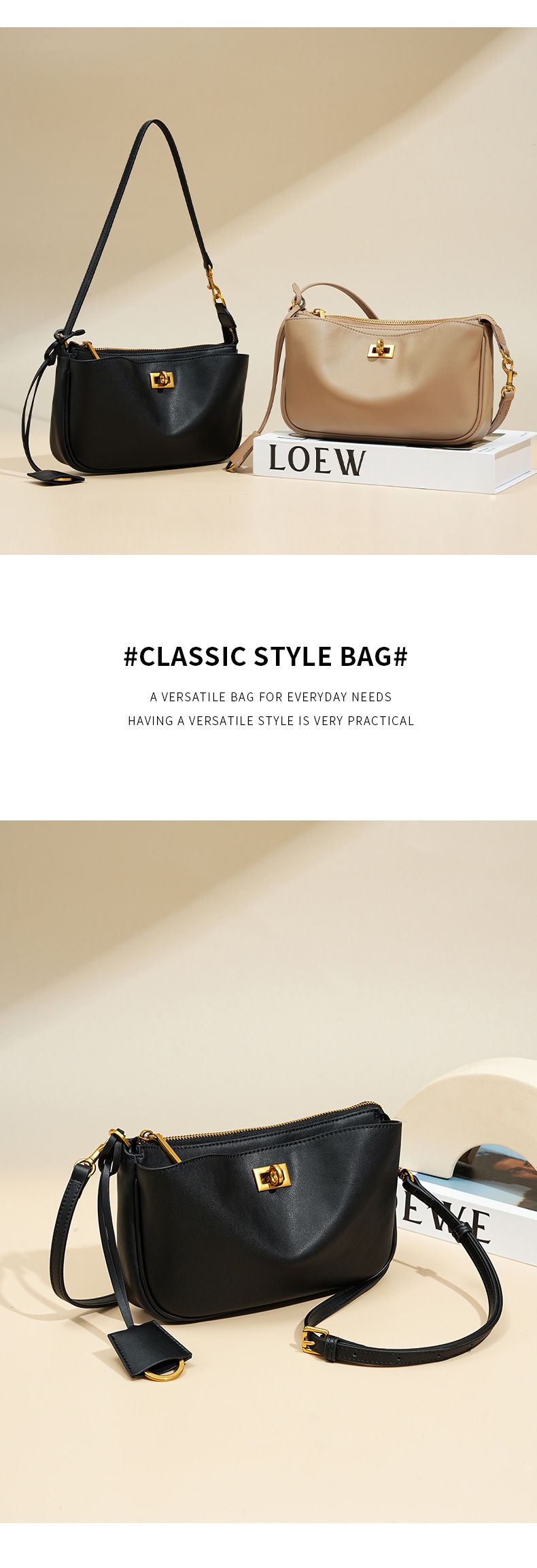 定制秋冬Rodeo凯莉法棍腋下包 高级感真皮锁扣机车单肩斜挎小方包