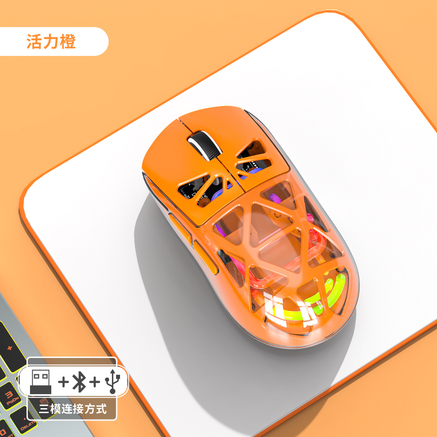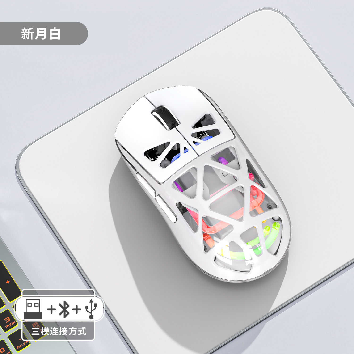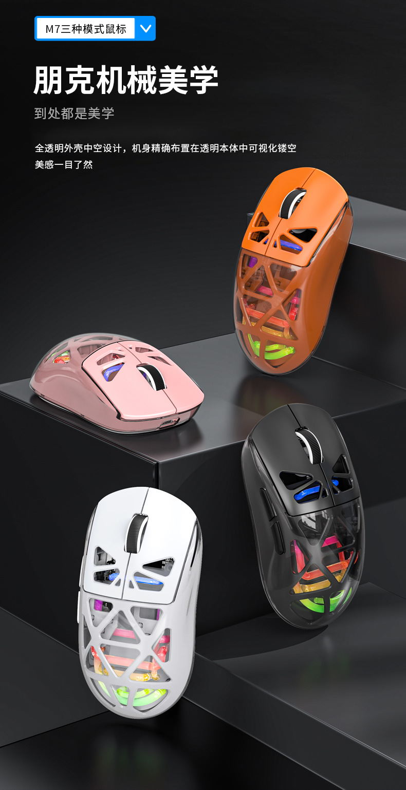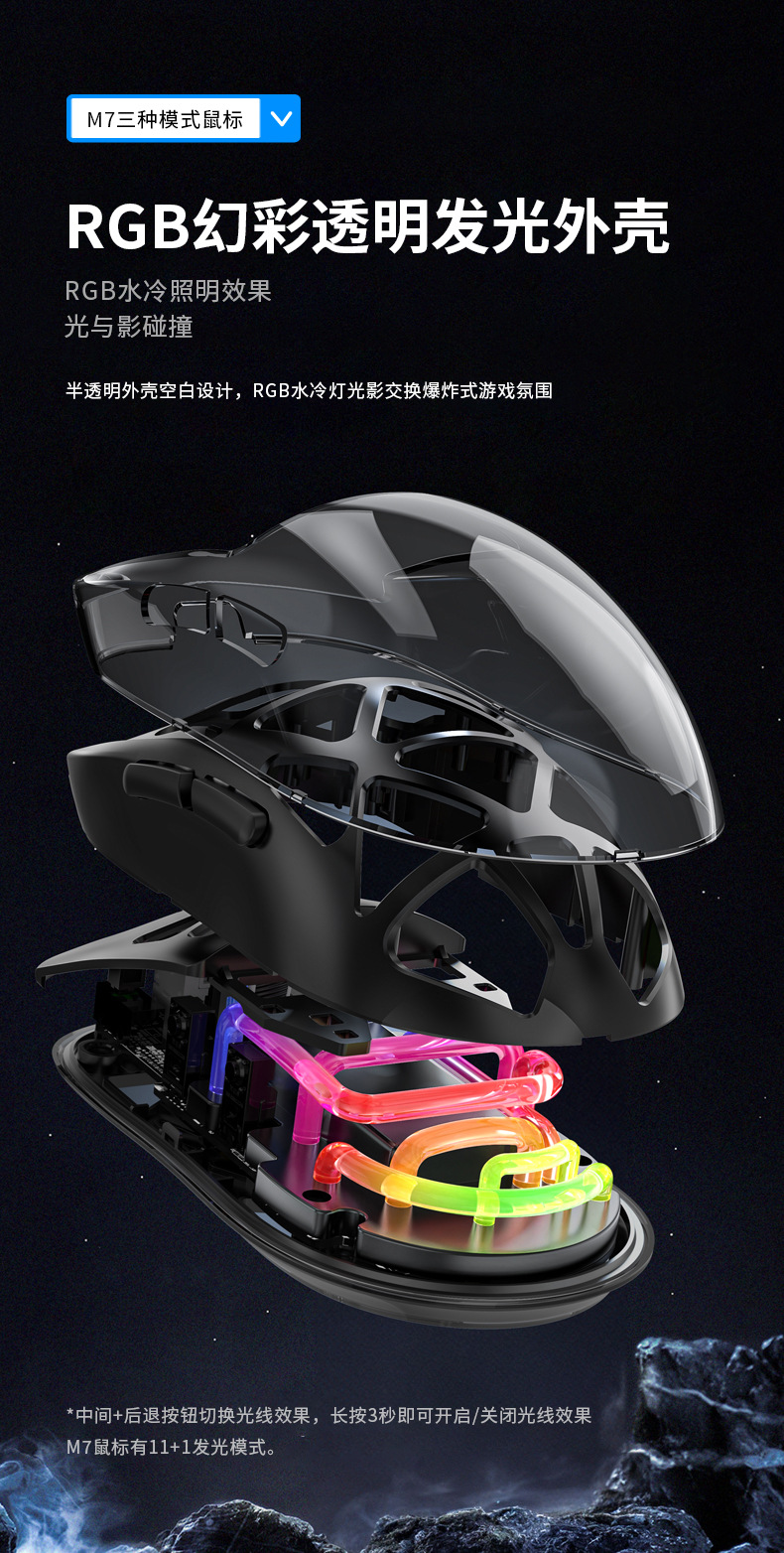 Forerunner M7 경량 3 모드 블루투스 라디오 게임 사무실 마우스 RGB 발광 투명 마우스스토어 가기