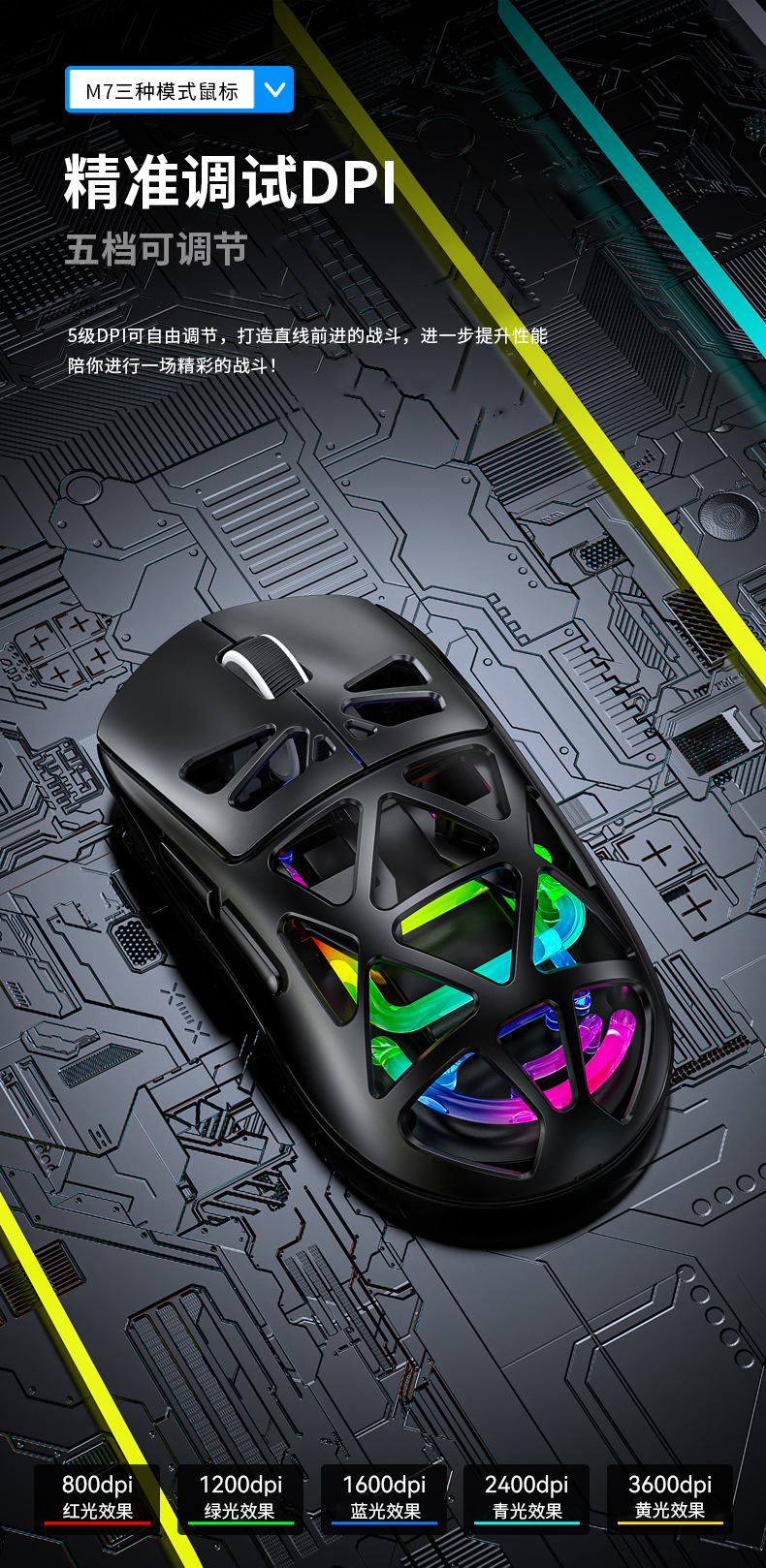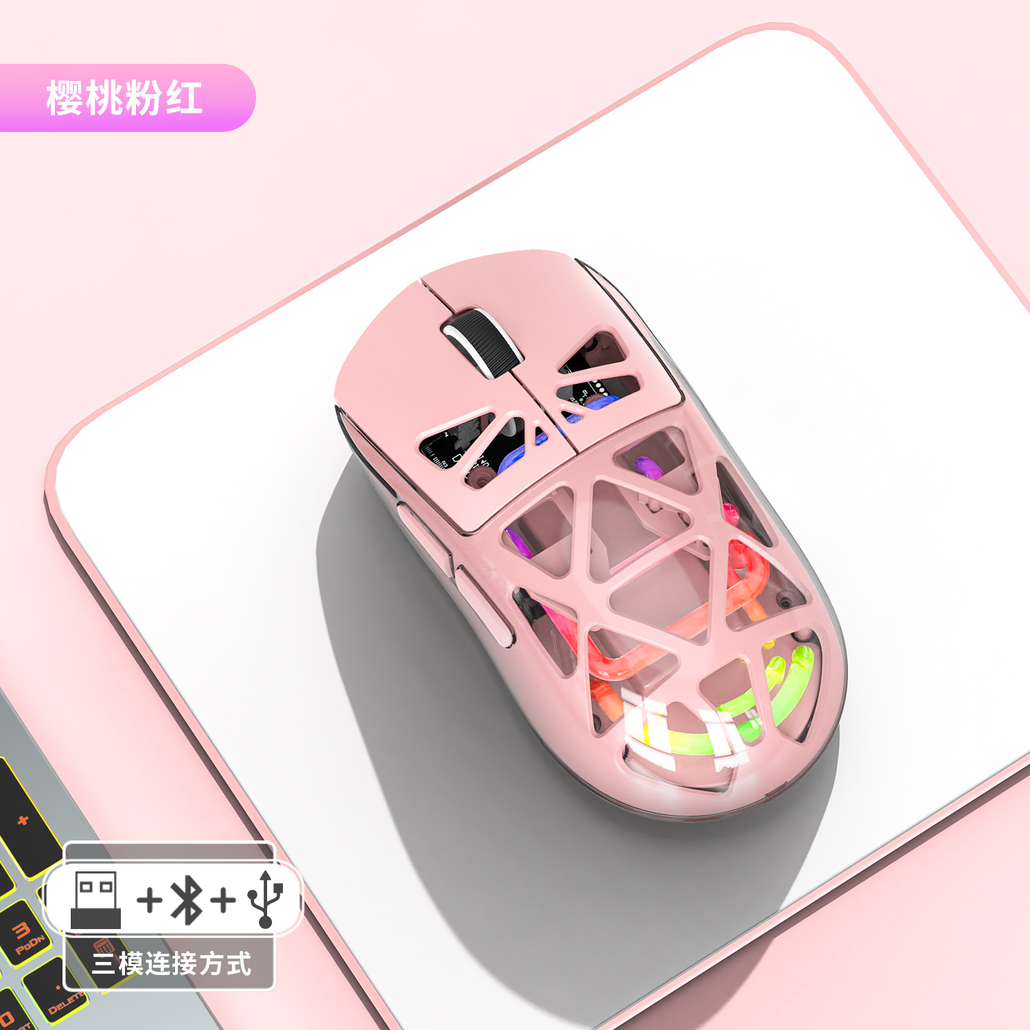 Forerunner M7 경량 3 모드 블루투스 라디오 게임 사무실 마우스 RGB 발광 투명 마우스