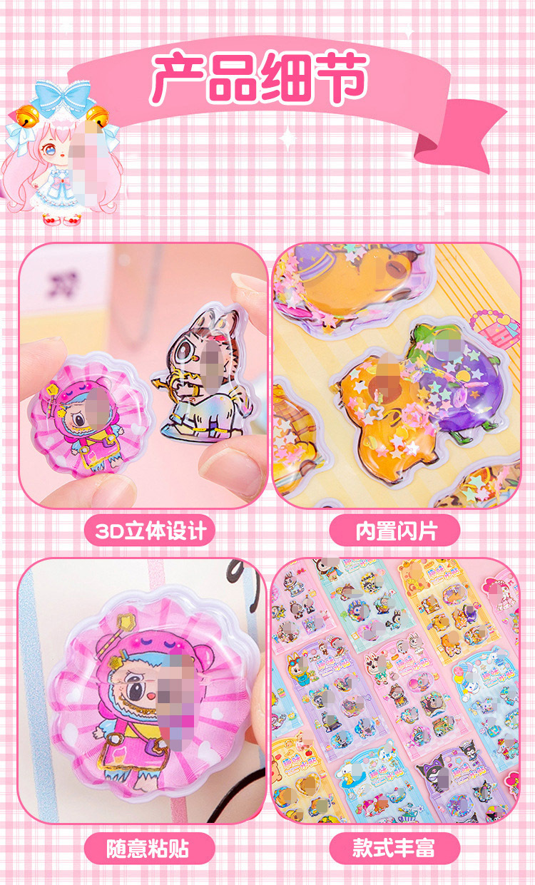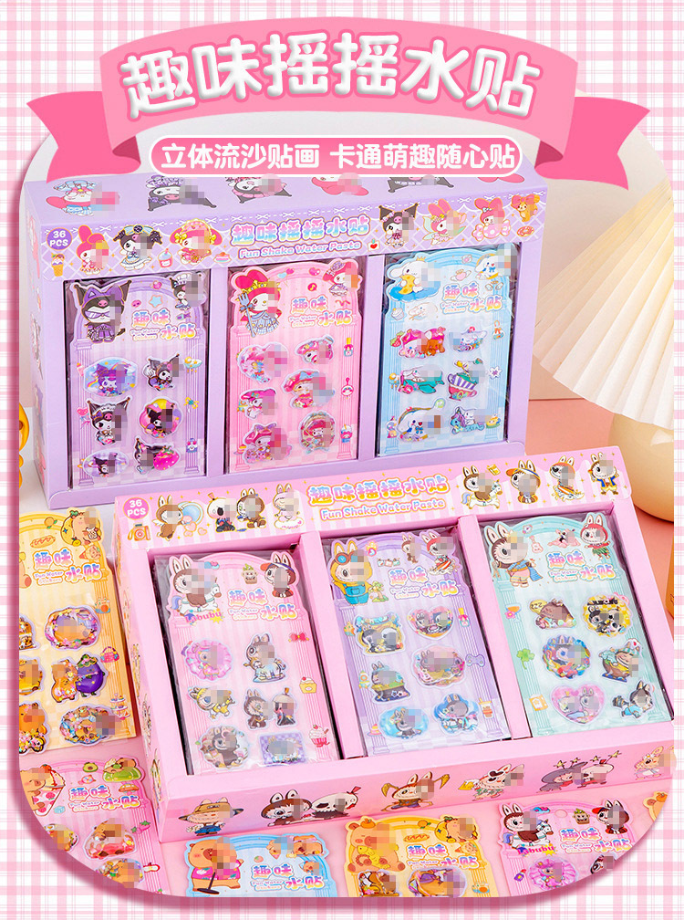 흔들리는 물 스티커 3 차원 스티커 귀여운 만화 장식 스티커 유치원 소녀 어린이 퀵 샌드 스티커 3d 스티커스토어 가기