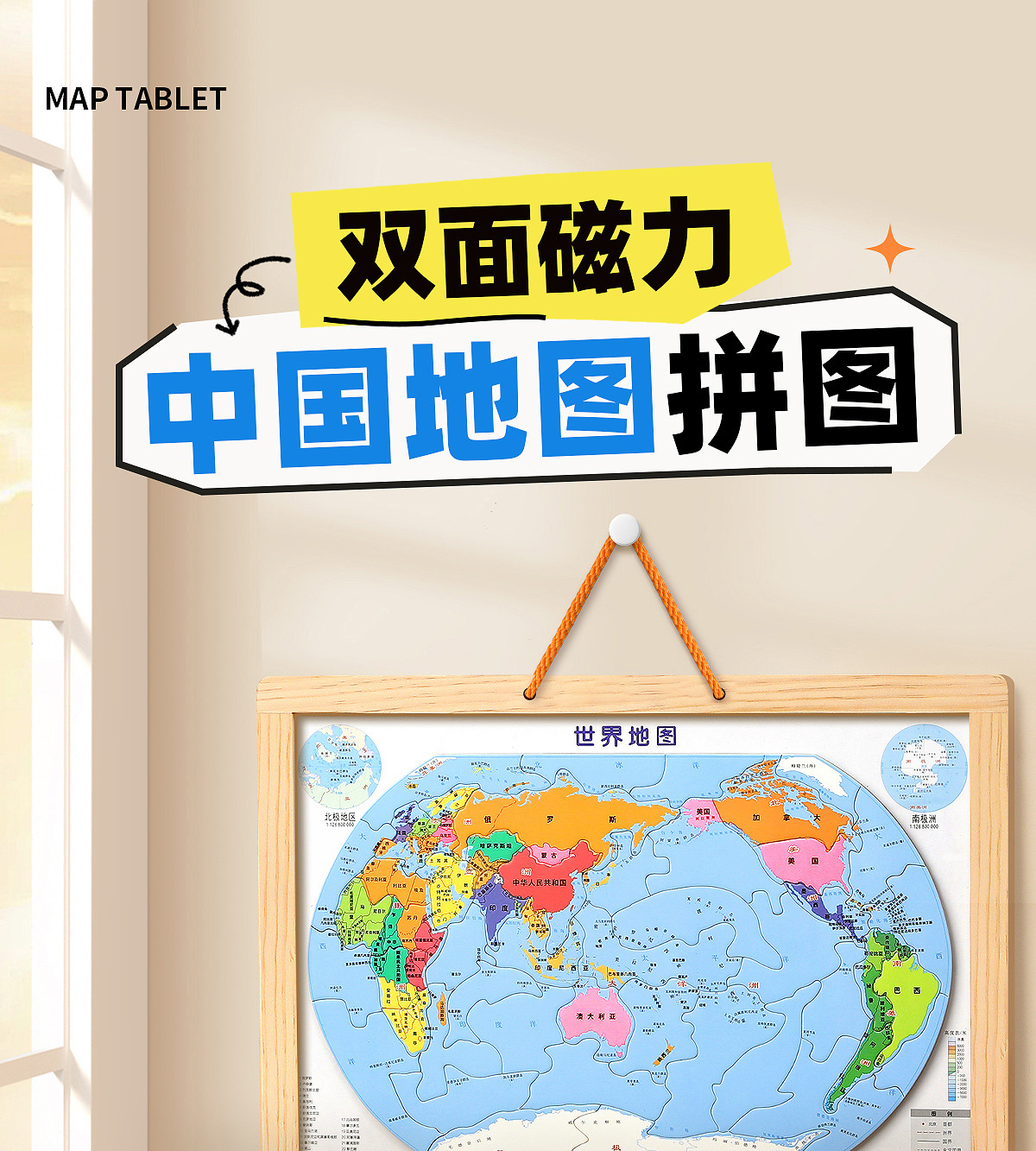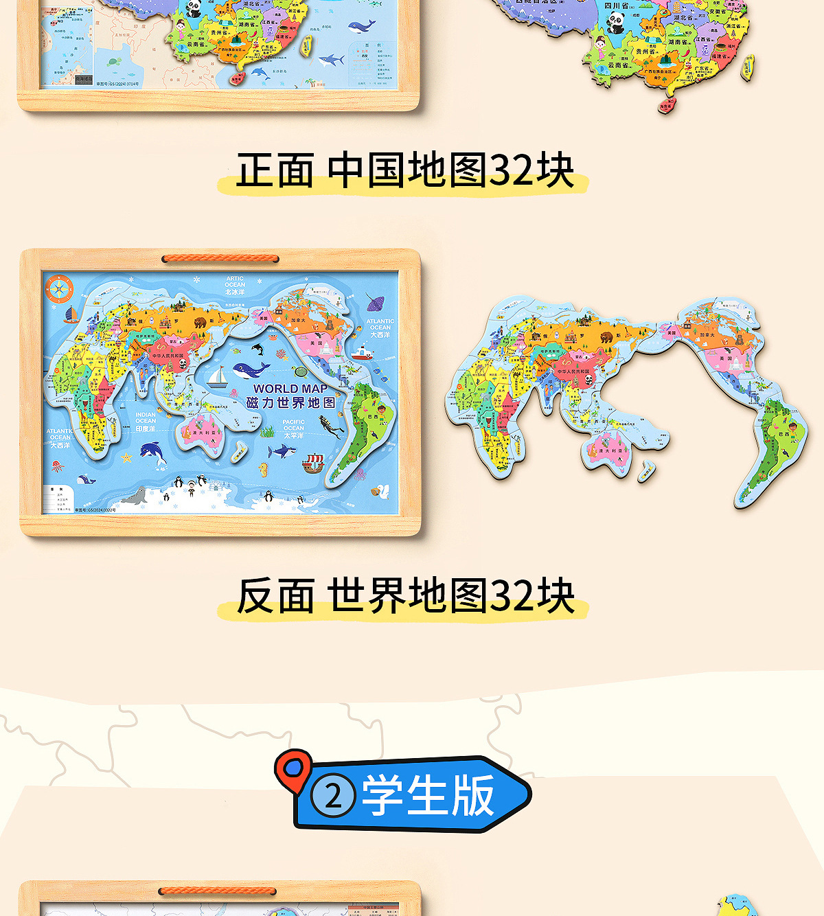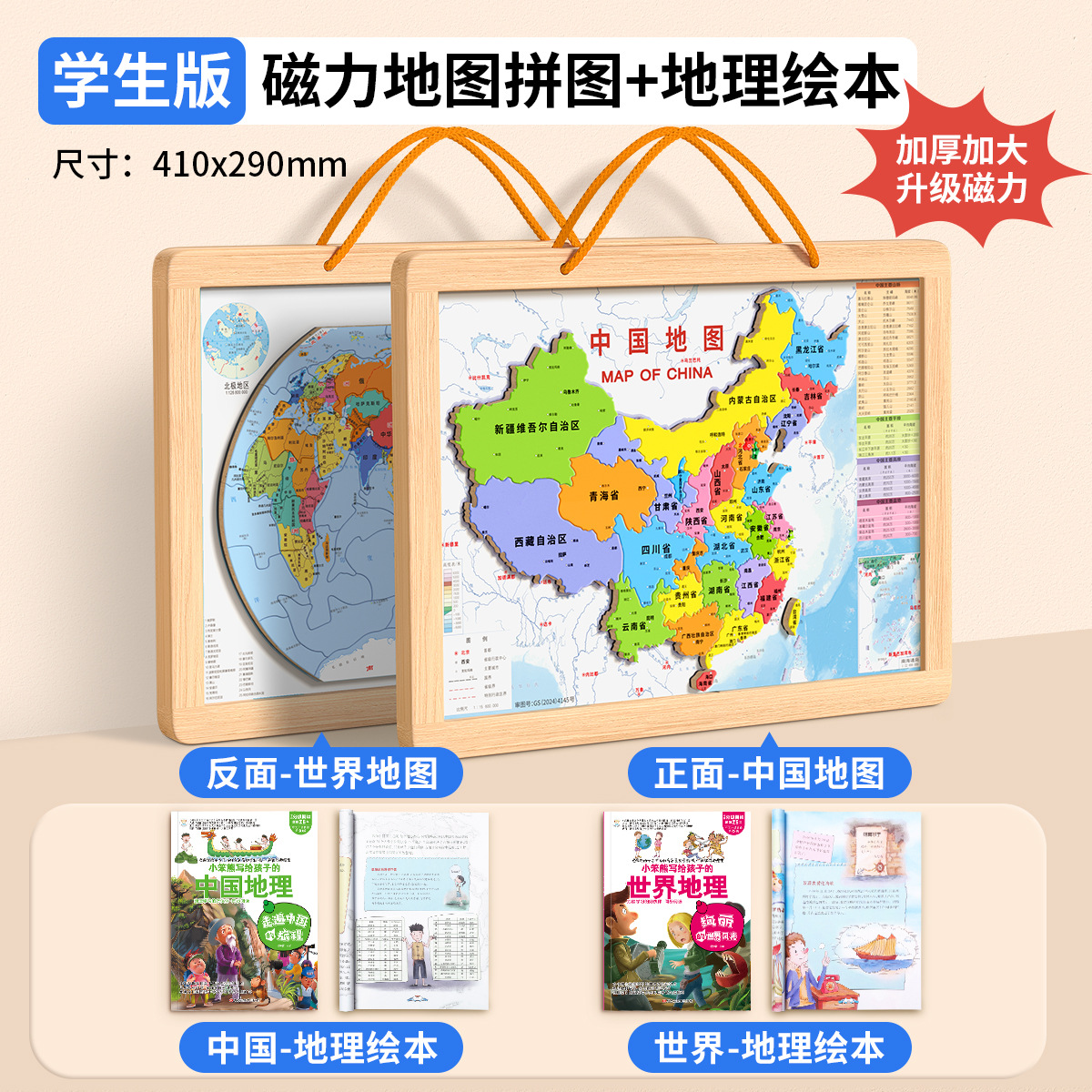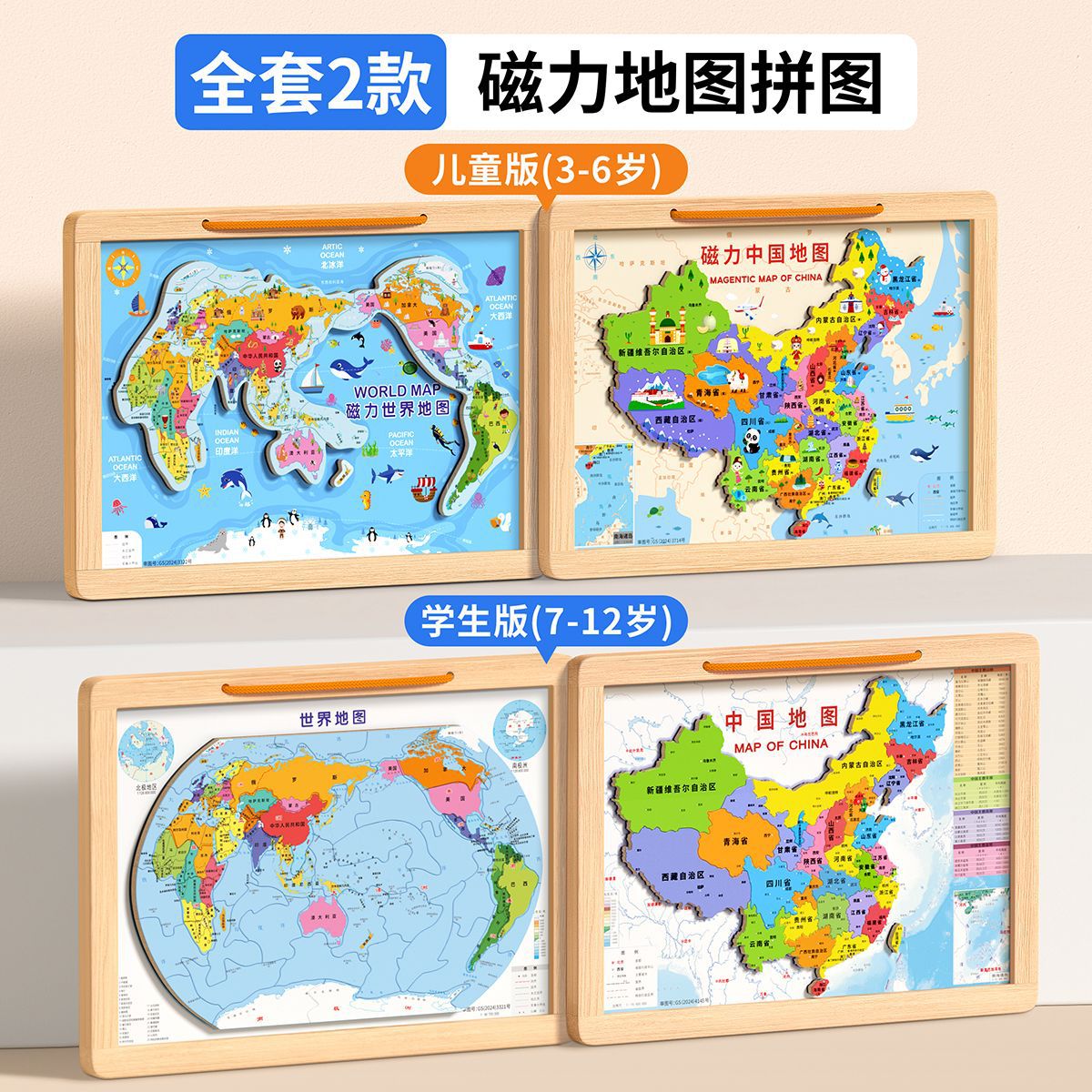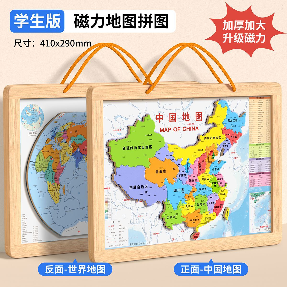 • [대형 학생판 2-in-1] 나무 자석 중국 + 세계 퍼즐