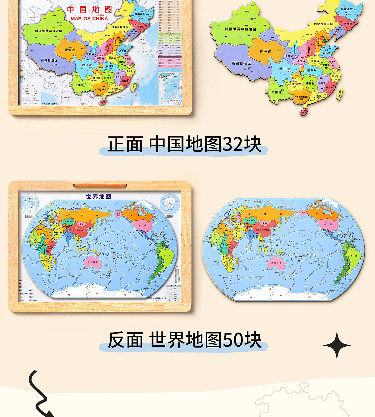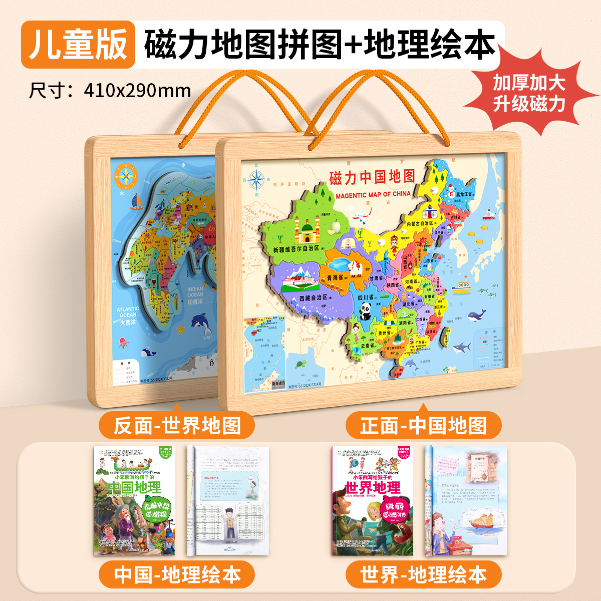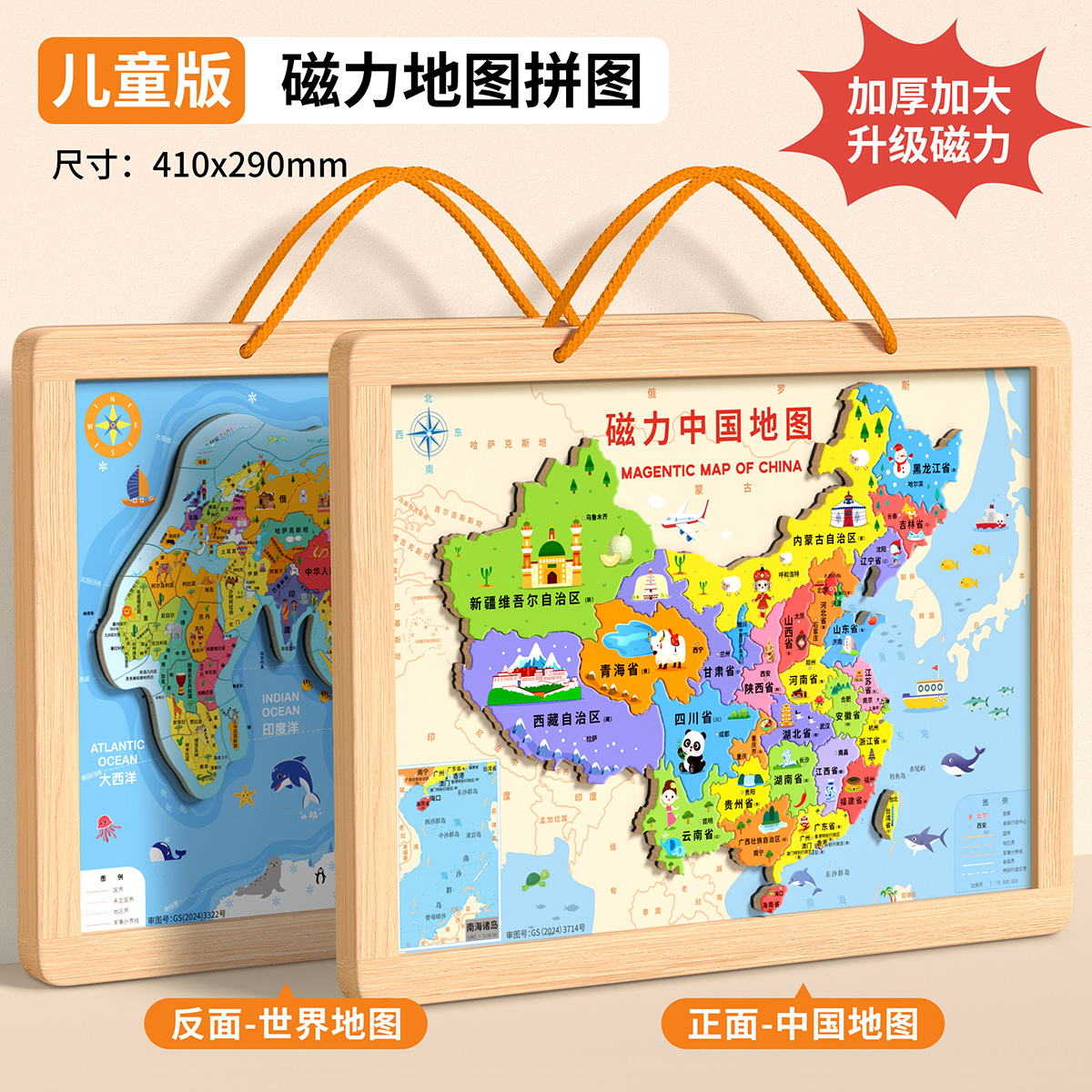 • [대형 어린이 버전 2-in-1] 나무 자석 중국 + 세계 퍼즐