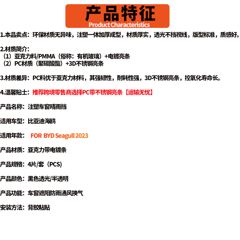 BYD 갈매기 자동차 창 비 방패 비 방패 BYD 갈매기 2023 창 바이저에 적합스토어 가기