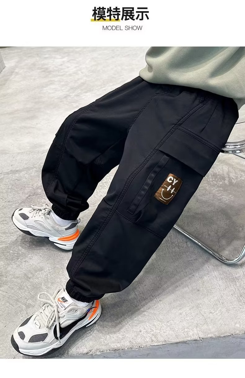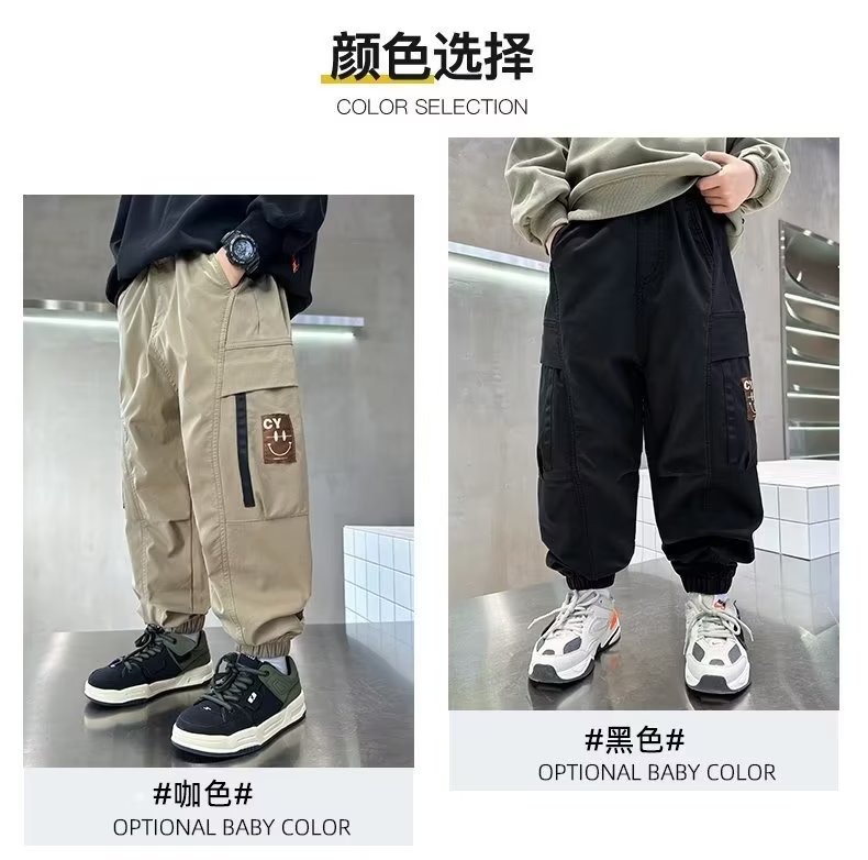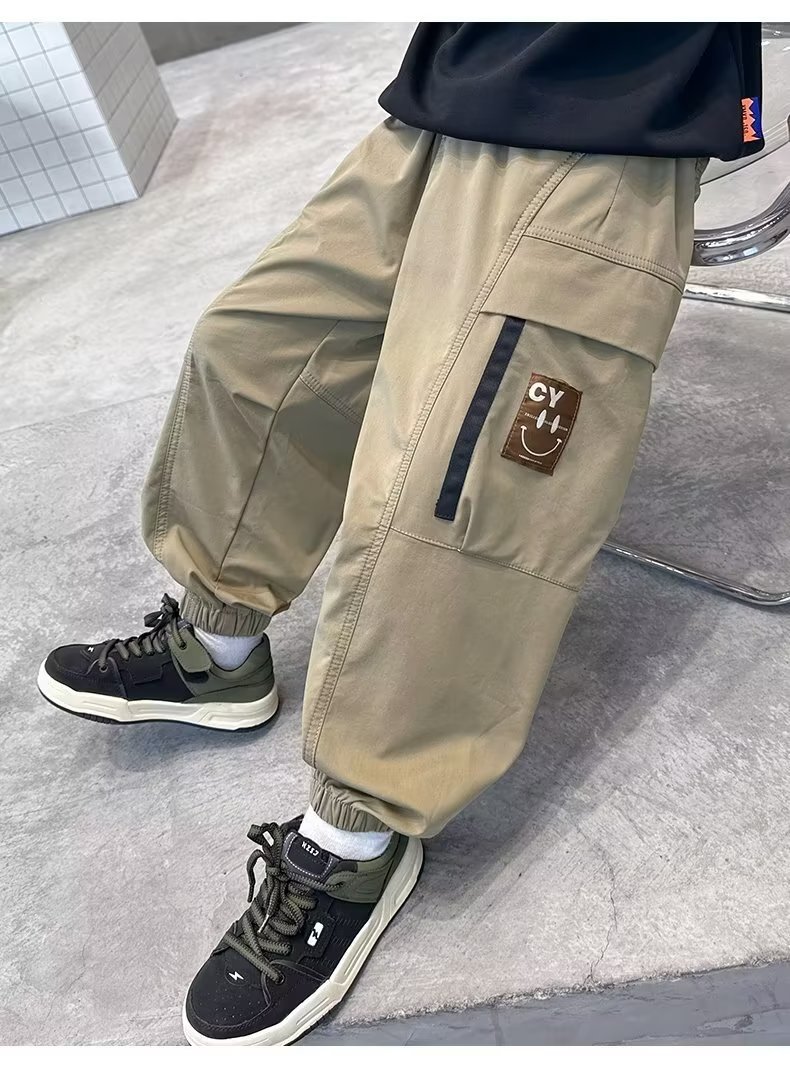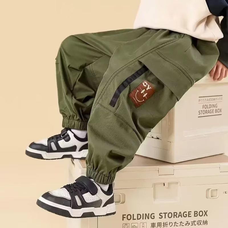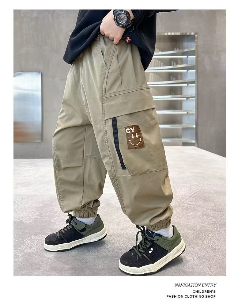 봄과 가을 작업복 스포츠 캐주얼 바지 아동 바지 2025 새로운 스타일 중대형 아동 소년 바지 아동 의류 트렌드스토어 가기