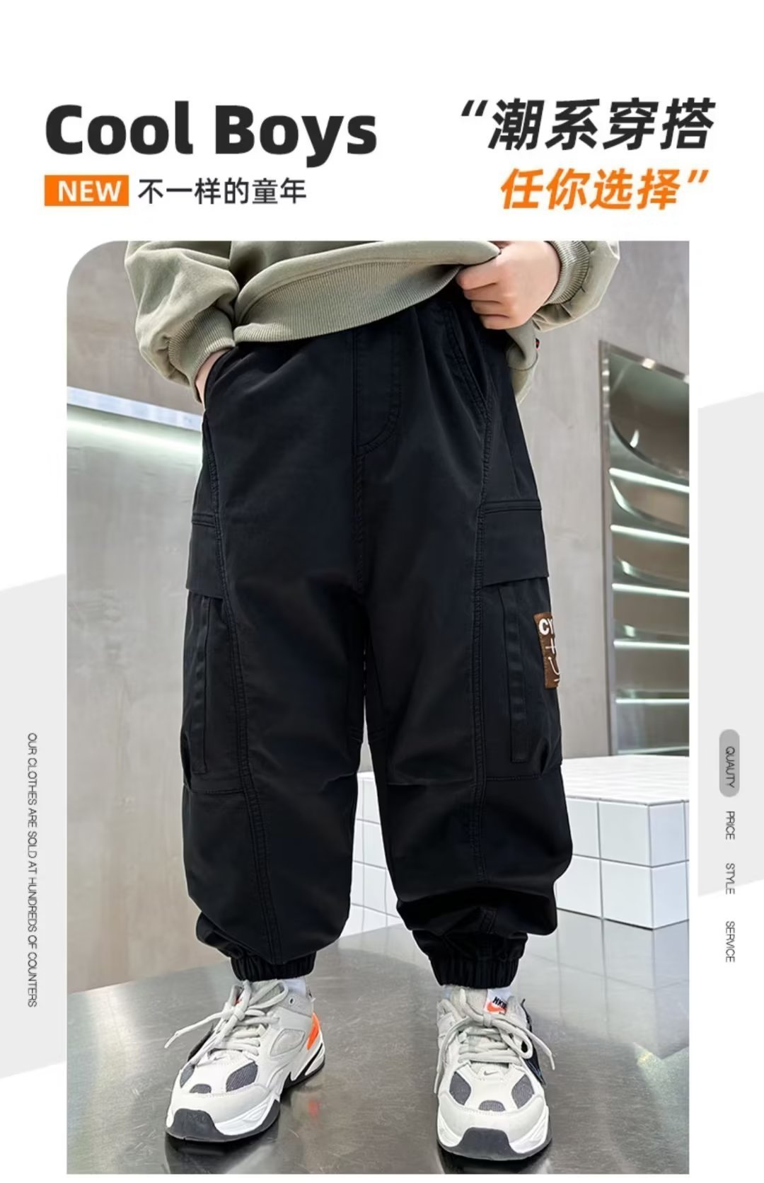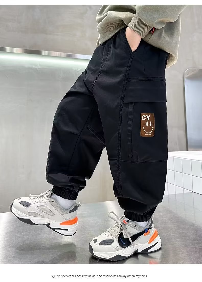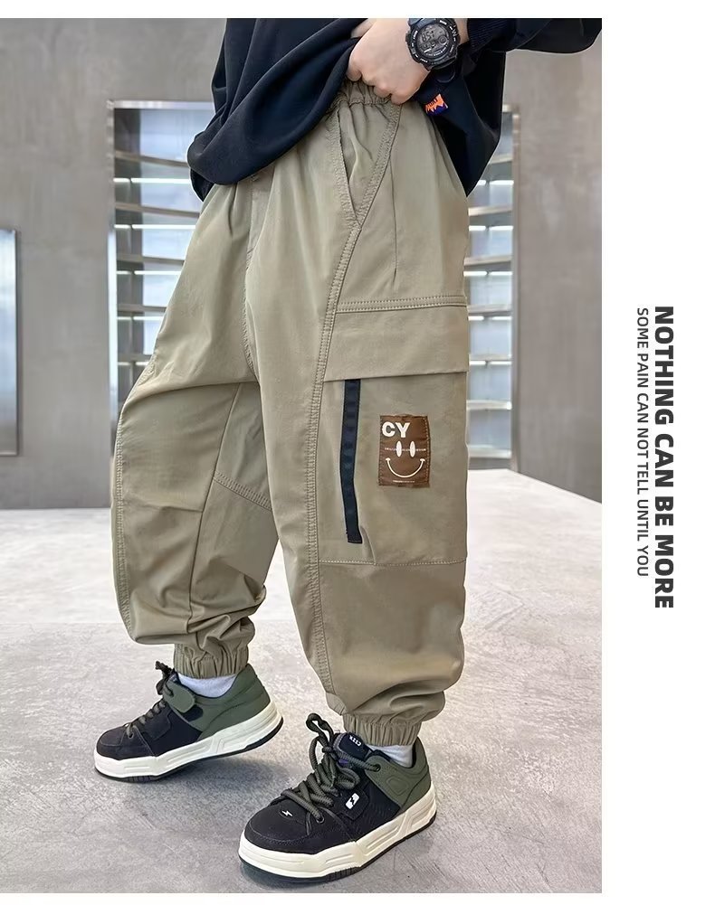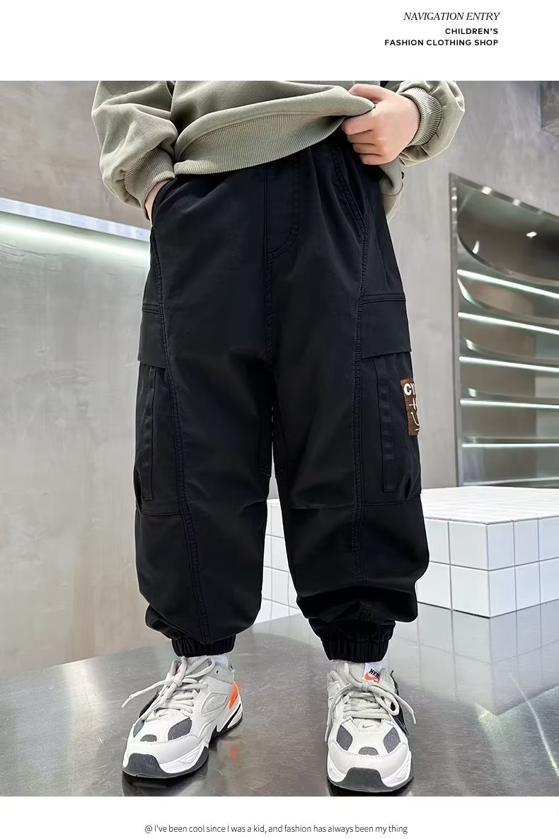 봄과 가을 작업복 스포츠 캐주얼 바지 아동 바지 2025 새로운 스타일 중대형 아동 소년 바지 아동 의류 트렌드스토어 가기