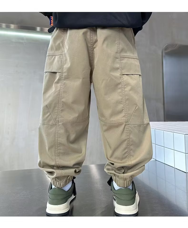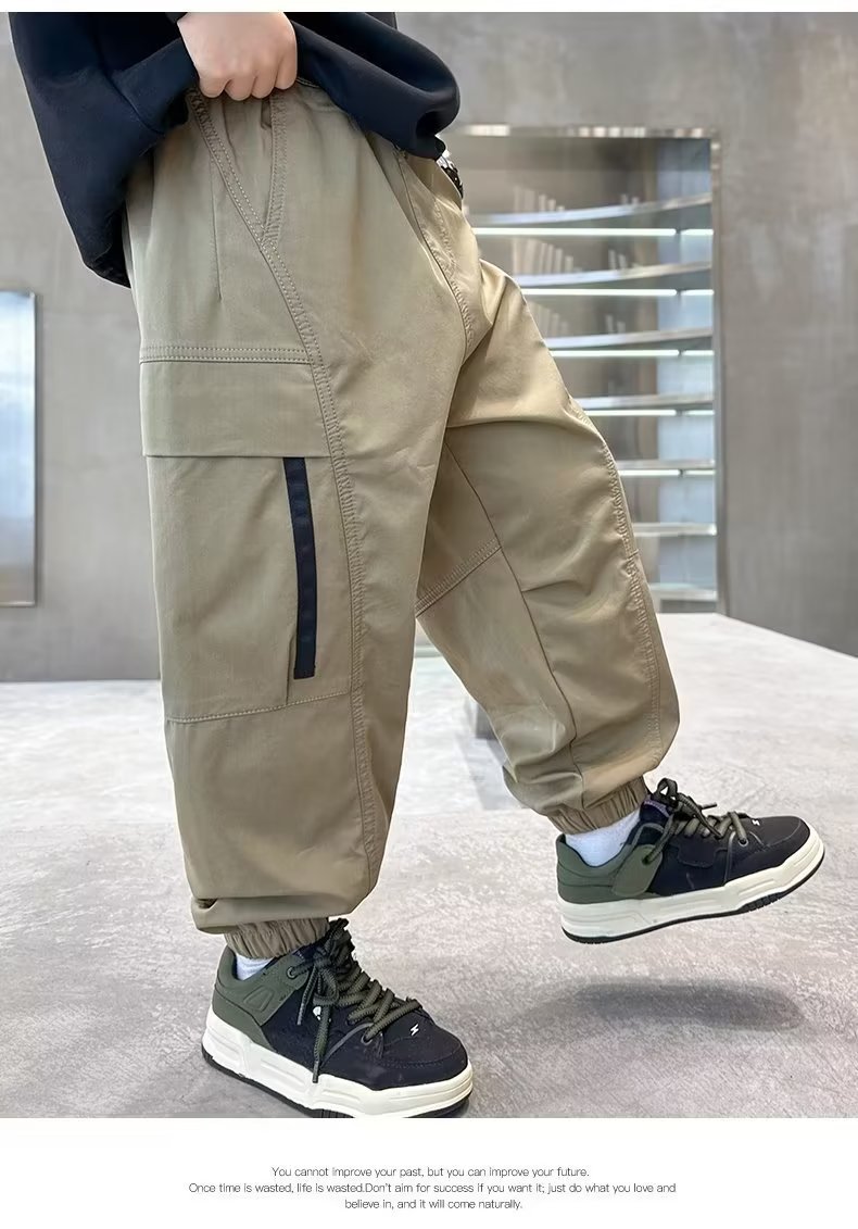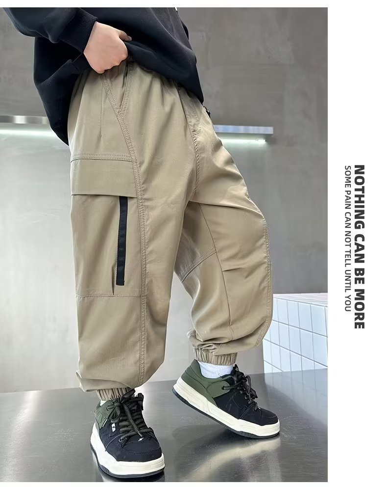 봄과 가을 작업복 스포츠 캐주얼 바지 아동 바지 2025 새로운 스타일 중대형 아동 소년 바지 아동 의류 트렌드
