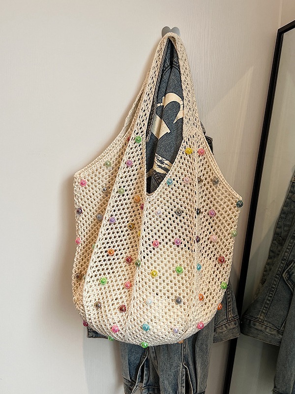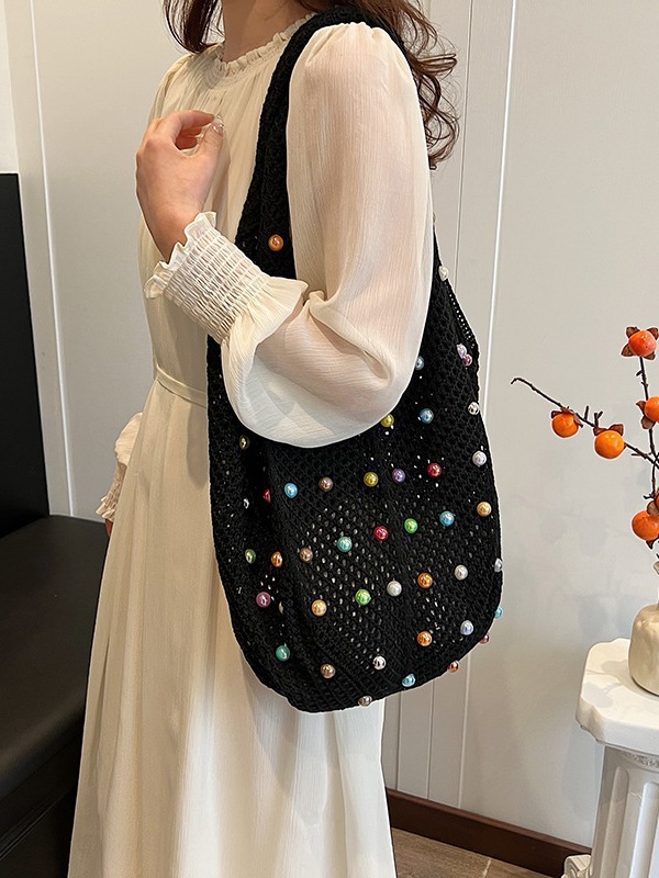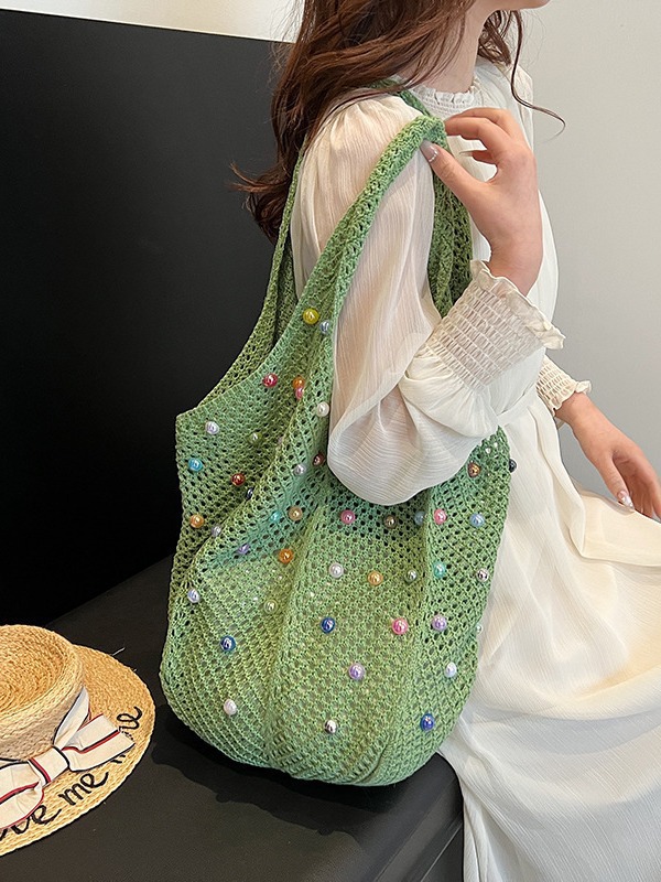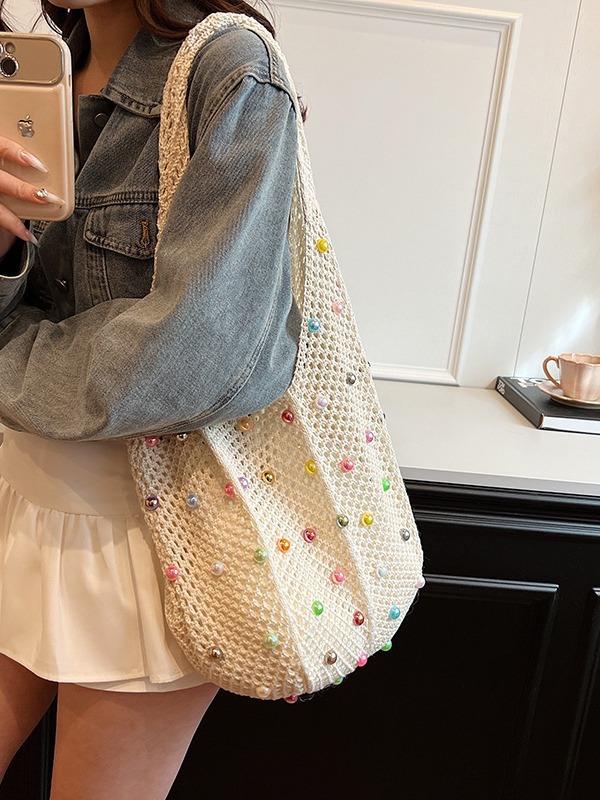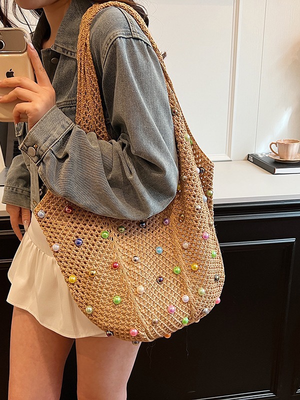 게으른 스타일 해변 통근 어깨 가방 휴가 짠 가방 여성 여름 진주 중공 속옷 가방 대용량스토어 가기