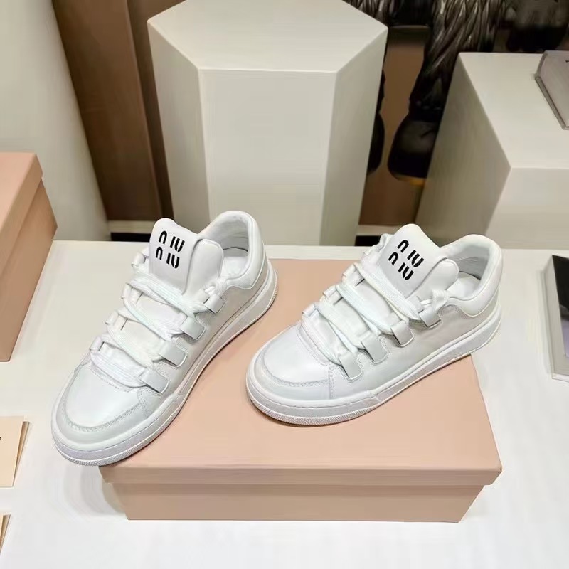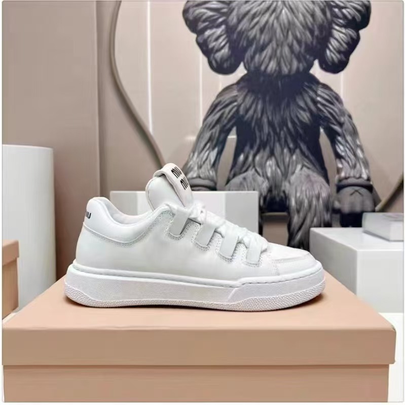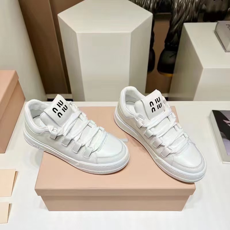 여성을위한 MIU 가죽 흰색 신발의 고급 버전 2025 이른 봄 새로운 로우 탑 캐주얼 운동화 여성용 다용도 신발