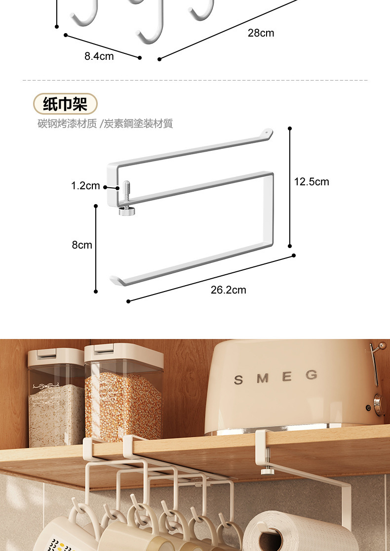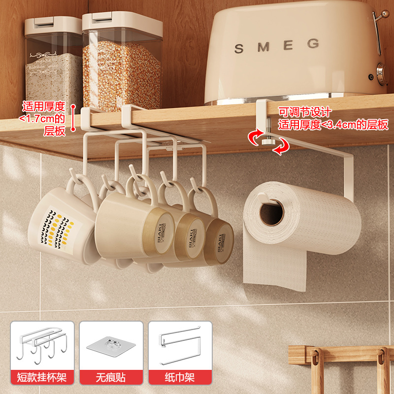 • 흰색 캐비닛 후크 짧은 스타일 + 흰색 캐비닛 종이 타월 홀더
