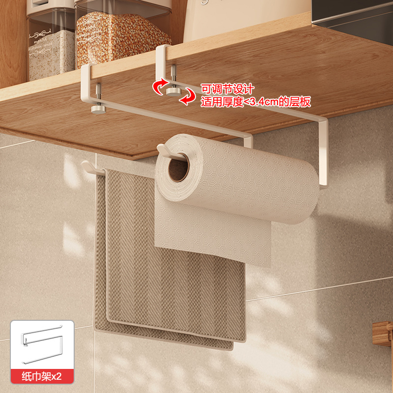 네일 프리 주방 캐비닛 티슈 랙 조정 가능한 롤 종이 저장 랙 컵 걸이 보존 필름 오일 흡수 종이 저장 랙스토어 가기