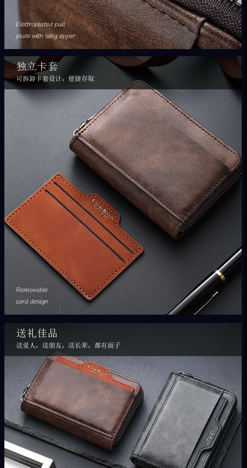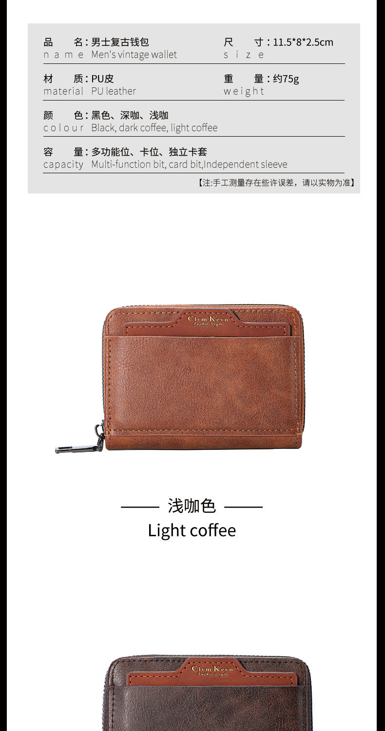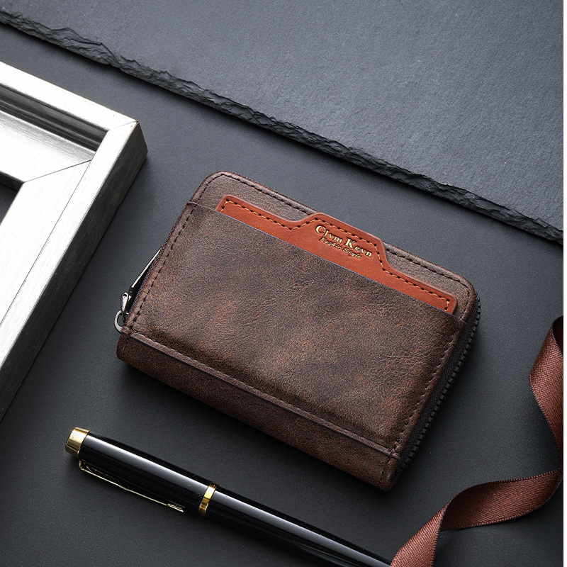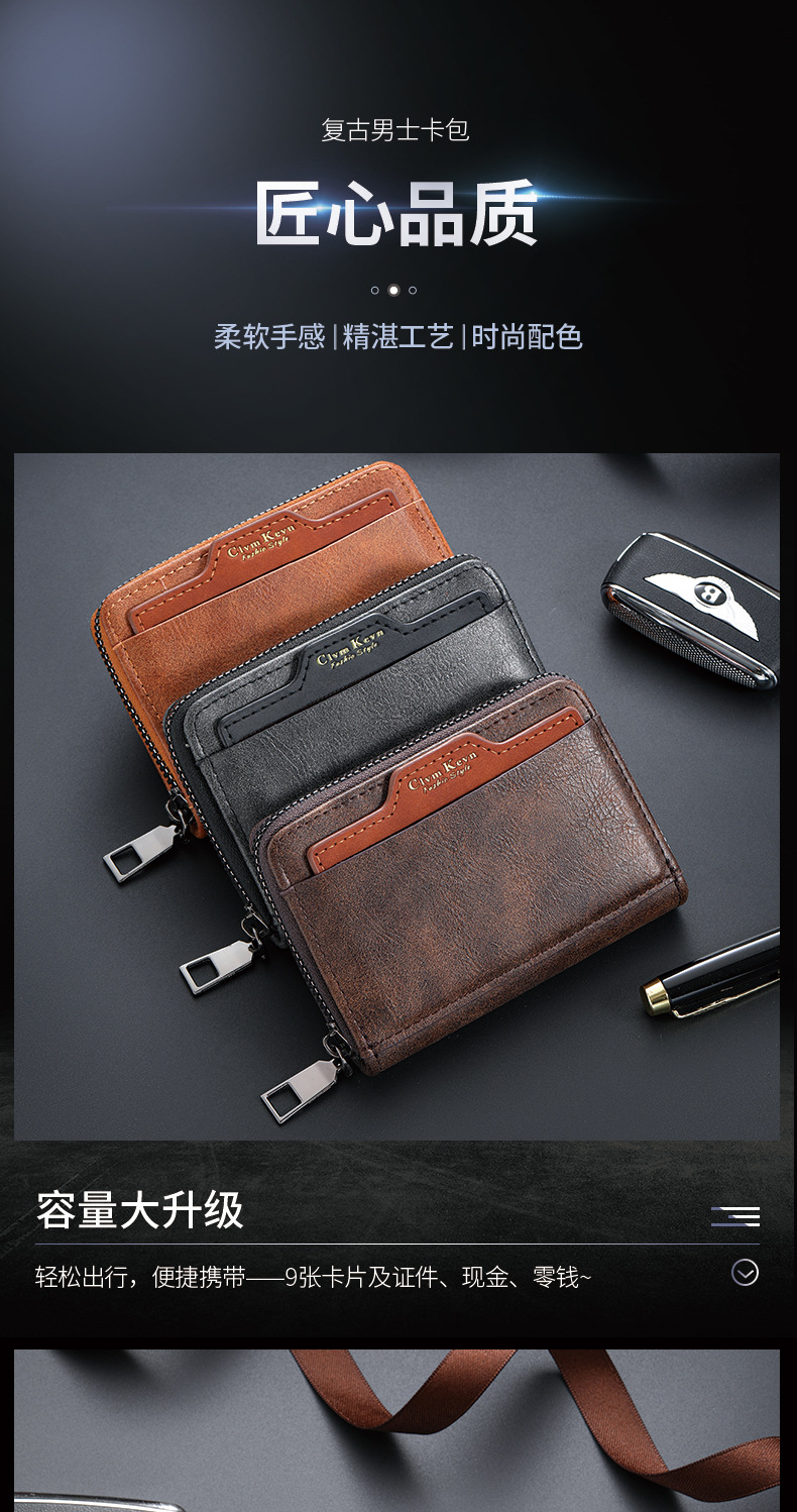 국경 간 뜨거운 판매 휴대용 남성 레트로 지갑 카드 운전 면허증 가방 대용량 지퍼 소형 지갑